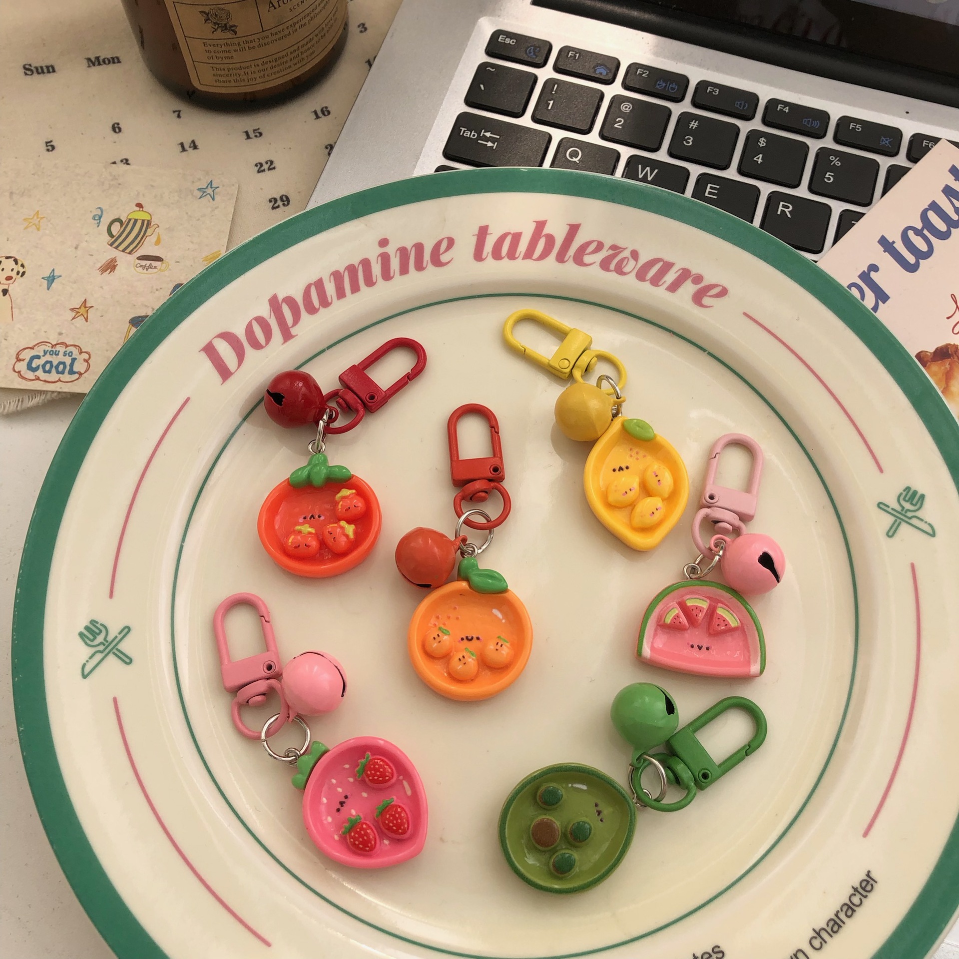 귀여운 과일 접시 벨 키 체인 시뮬레이션 음식 장난감 가방 펜던트 소녀 하트 가방 액세서리 bestie 선물스토어 가기