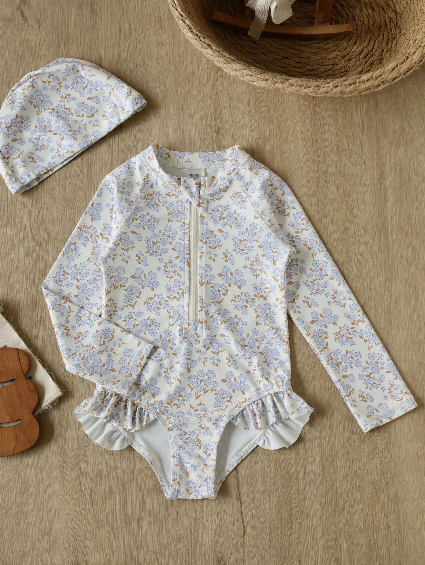 걸스 레이스 원피스 꽃 수영복 25 년 아기 소녀 안티 염소 수영복 소녀 긴팔 선 스크린 수영복