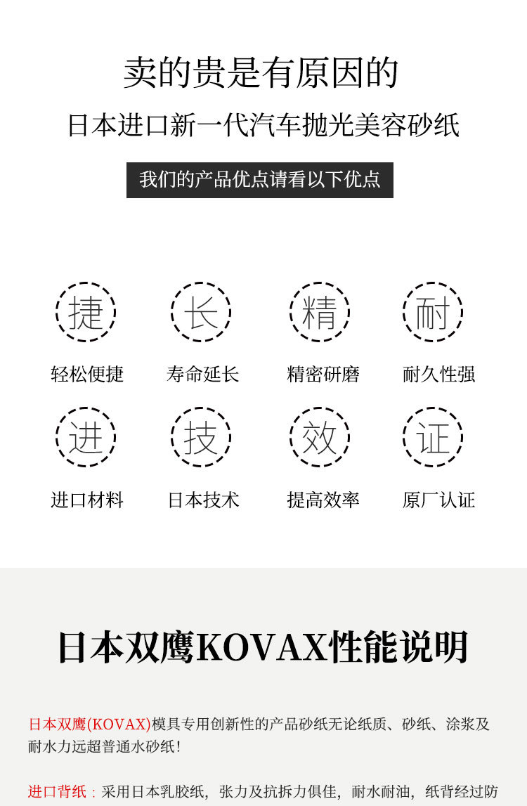 일본에서 수입된 KOVAX 건식 사포, 목공, 자동차 연마 및 연마, 작은 사각형 부드러운 천 사포 및 기타스토어 가기