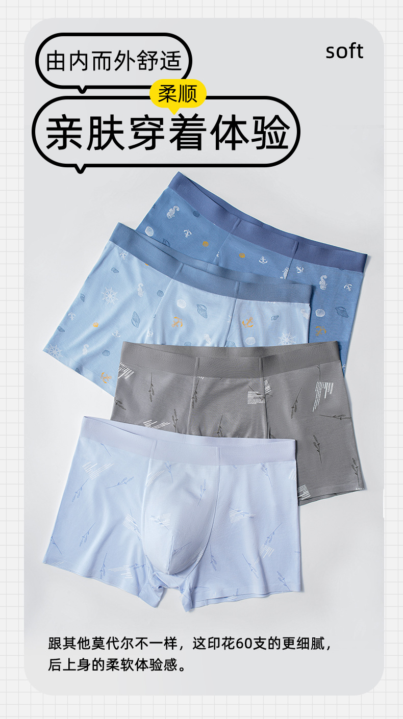 60 모달 남성 속옷 절묘한 인쇄 원활한 속옷 소년 항균 통기성 트렌드 복서 바지 도매