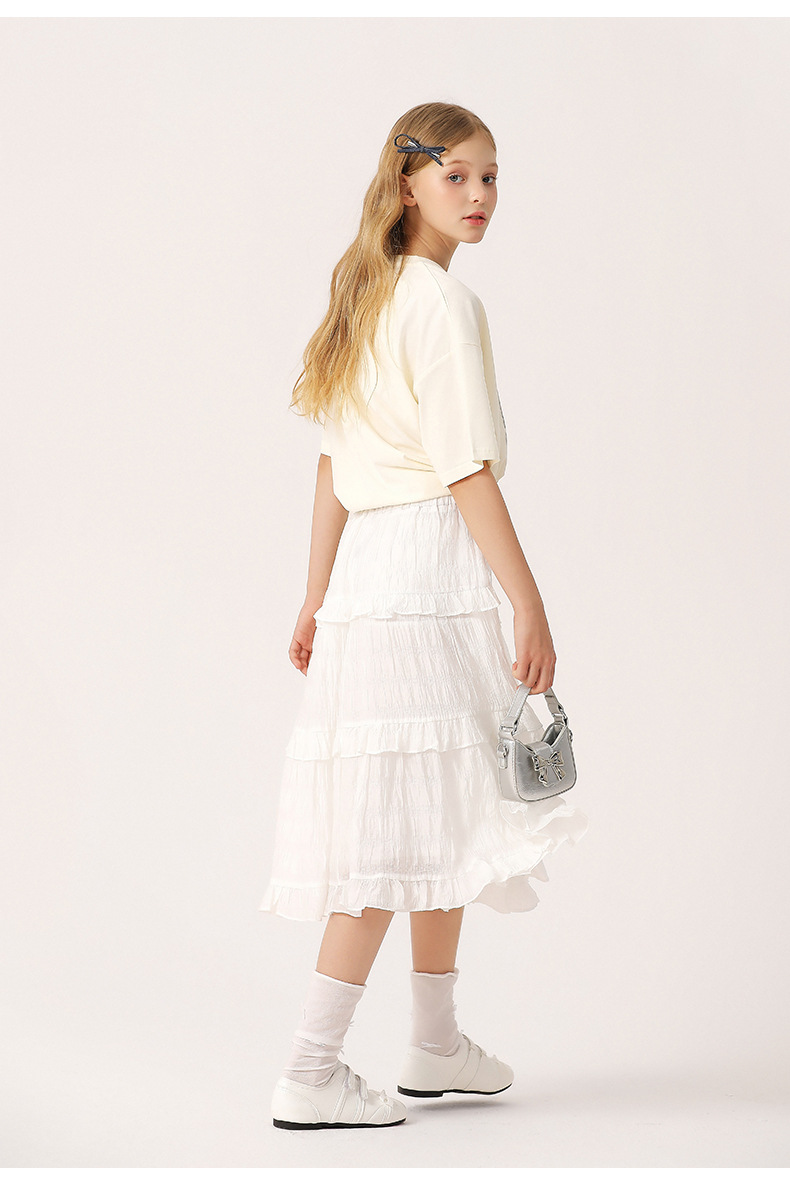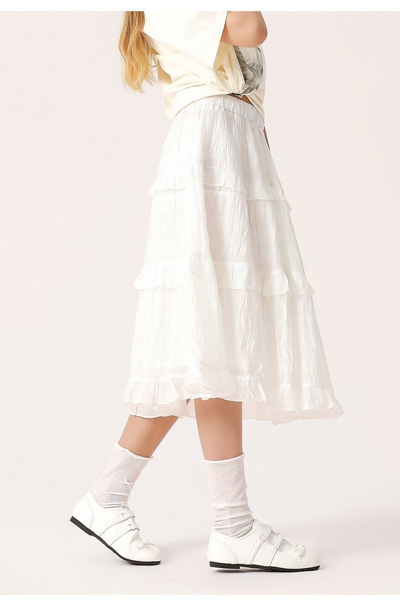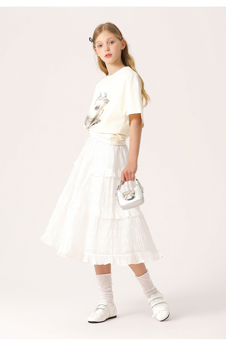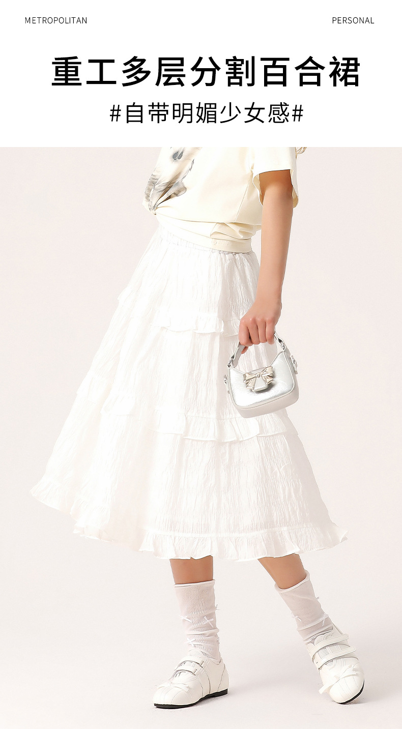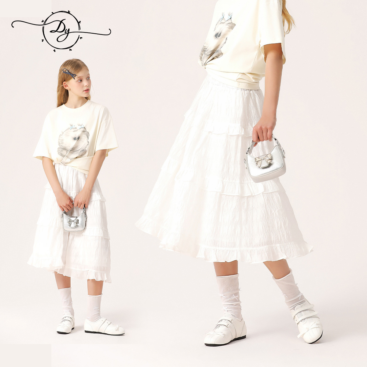 여자 스커트 2025 여름 새로운 스타일 중대형 어린이 스타일 케이크 스커트 어린이 주름 공주 스커트 A 라인 스커트