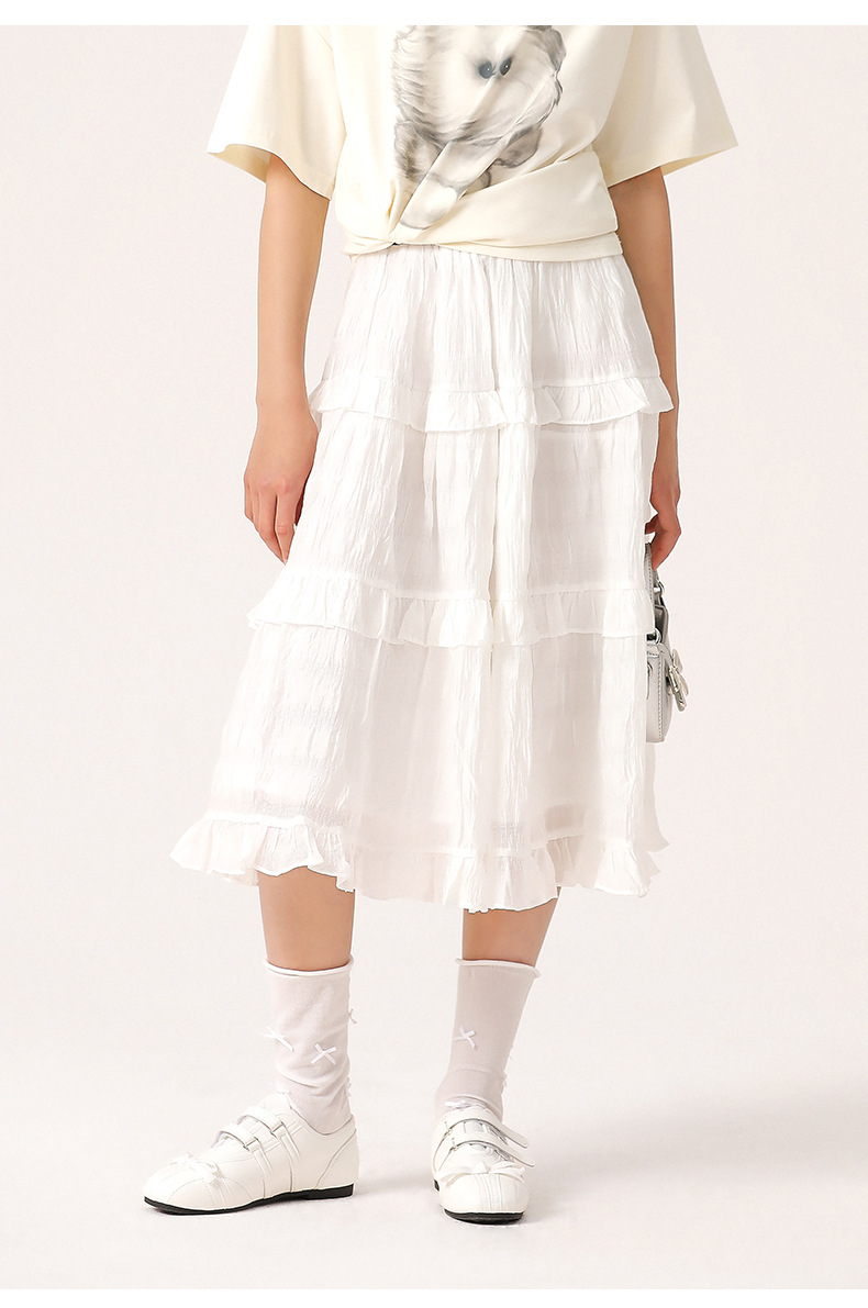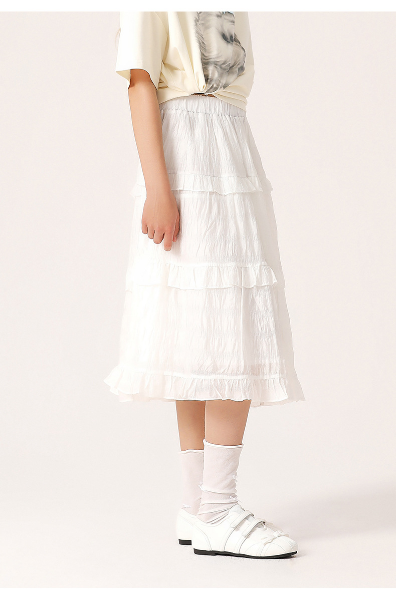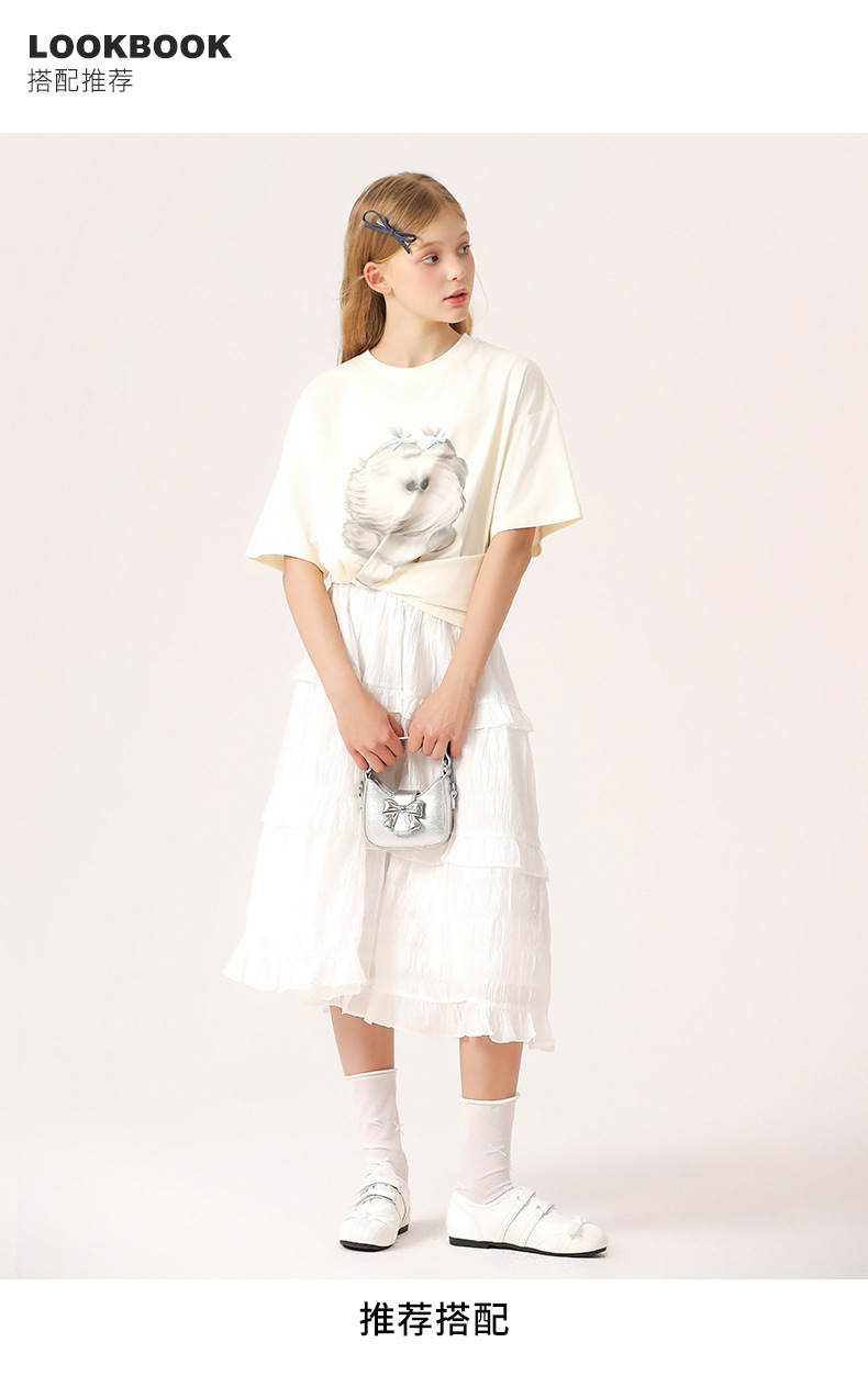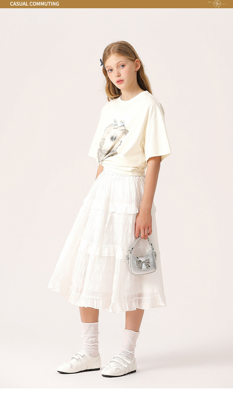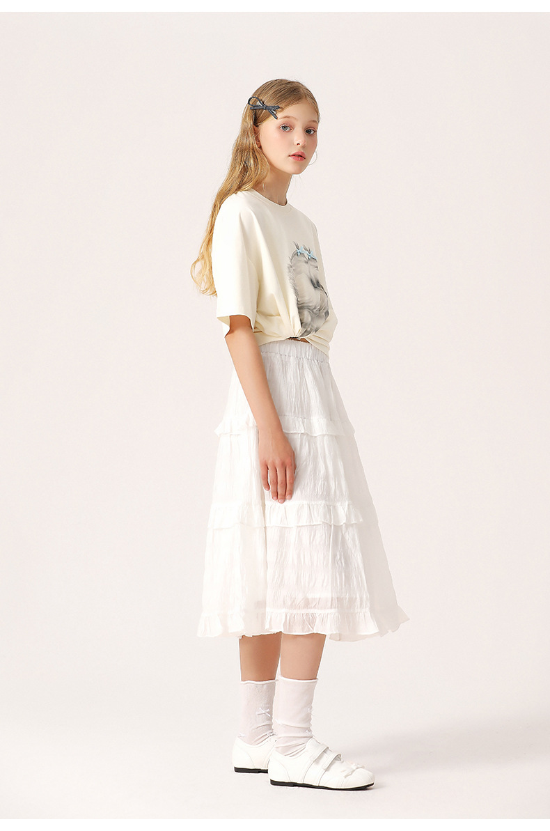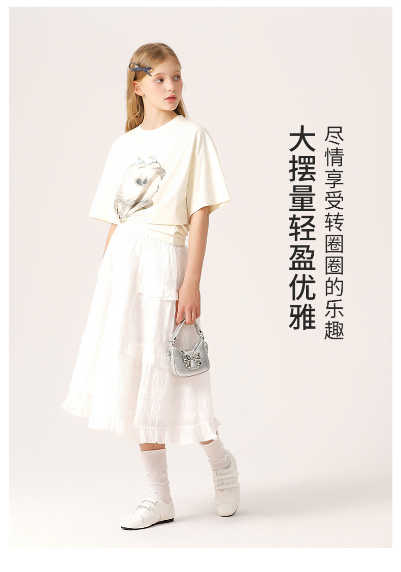 여자 스커트 2025 여름 새로운 스타일 중대형 어린이 스타일 케이크 스커트 어린이 주름 공주 스커트 A 라인 스커트
