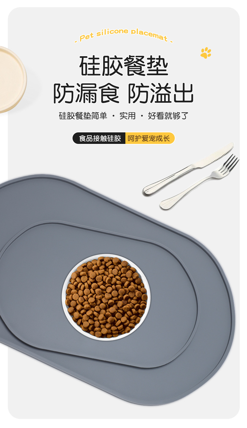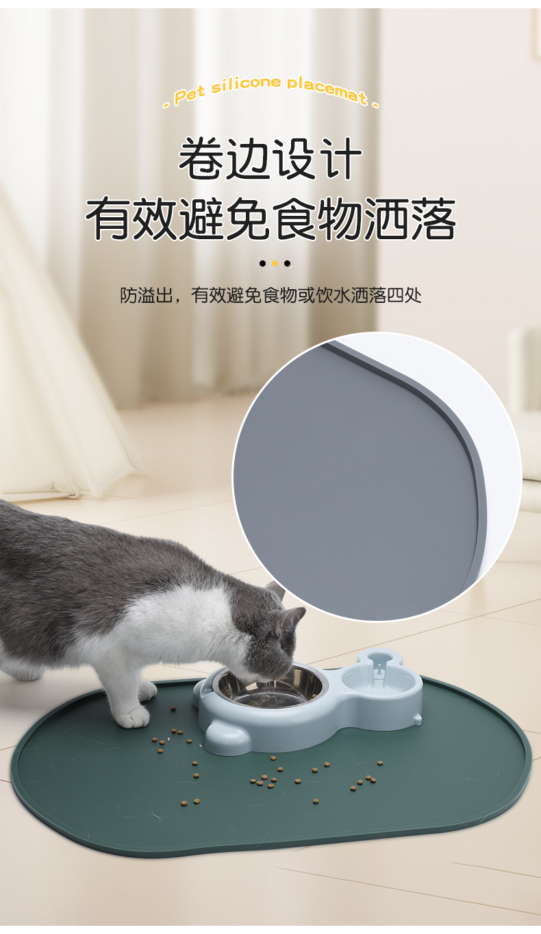 새로운 타원형 실리콘 애완견 매트, 유출 방지 및 미끄럼 방지 매트, 새끼 고양이 및 강아지 실리콘 애완 동물 플레이스 매트, 청소가 용이함스토어 가기