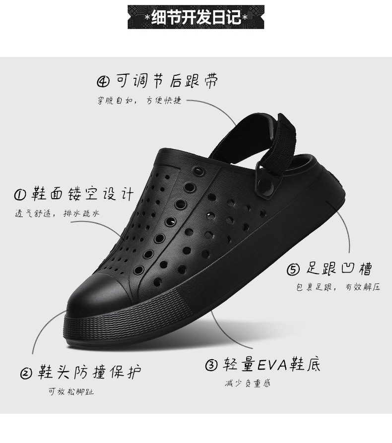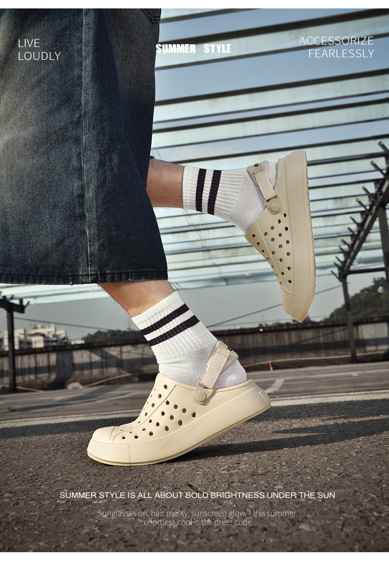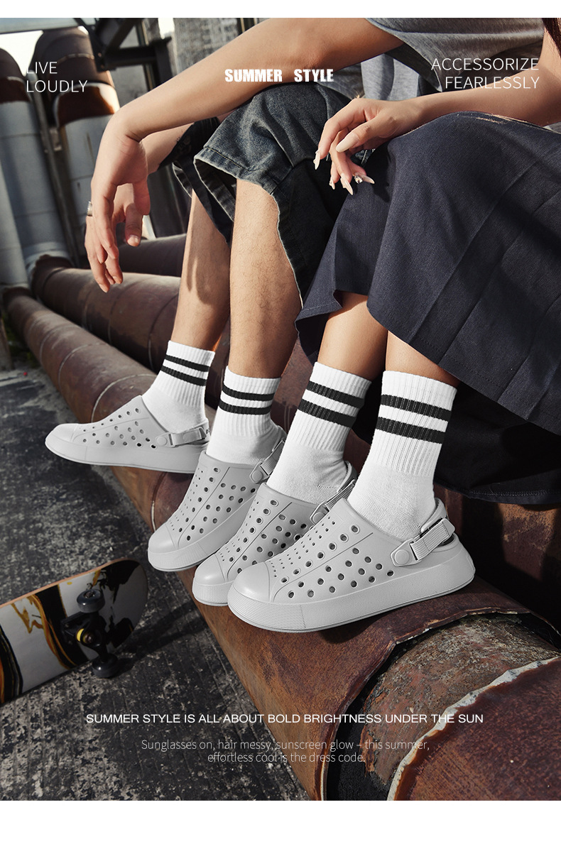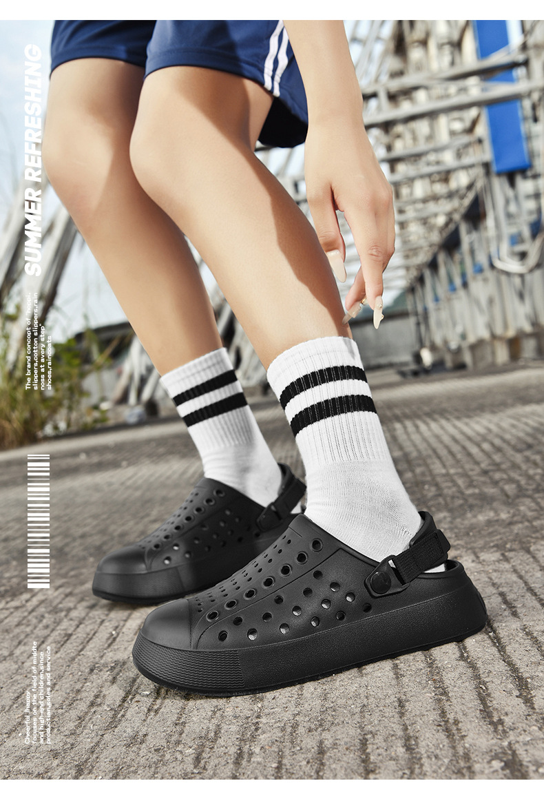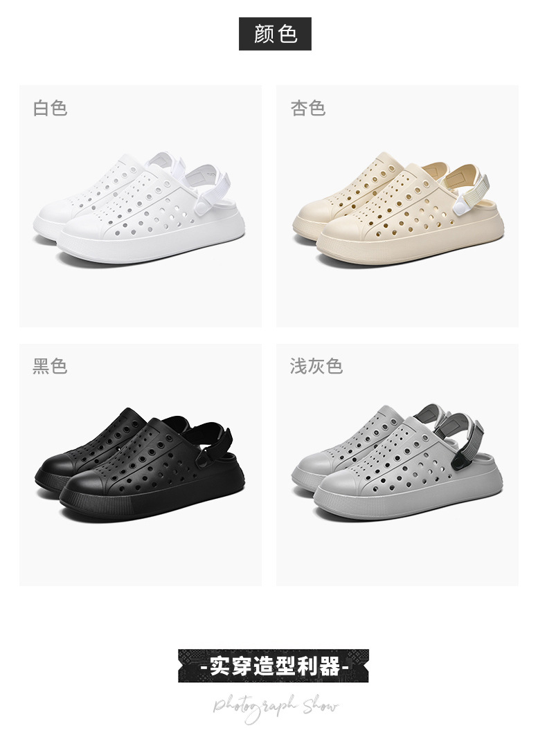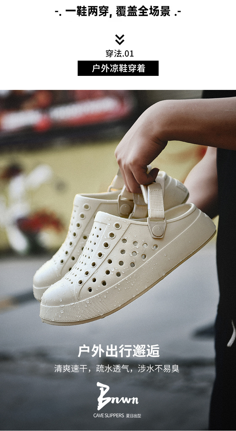 대형 구멍 두꺼운 바닥 구멍 신발 남성과 여성의 속이 빈 미끄럼 방지 여름 커플 Baotou 겉옷 샌들과 슬리퍼 비치 슈즈 도매