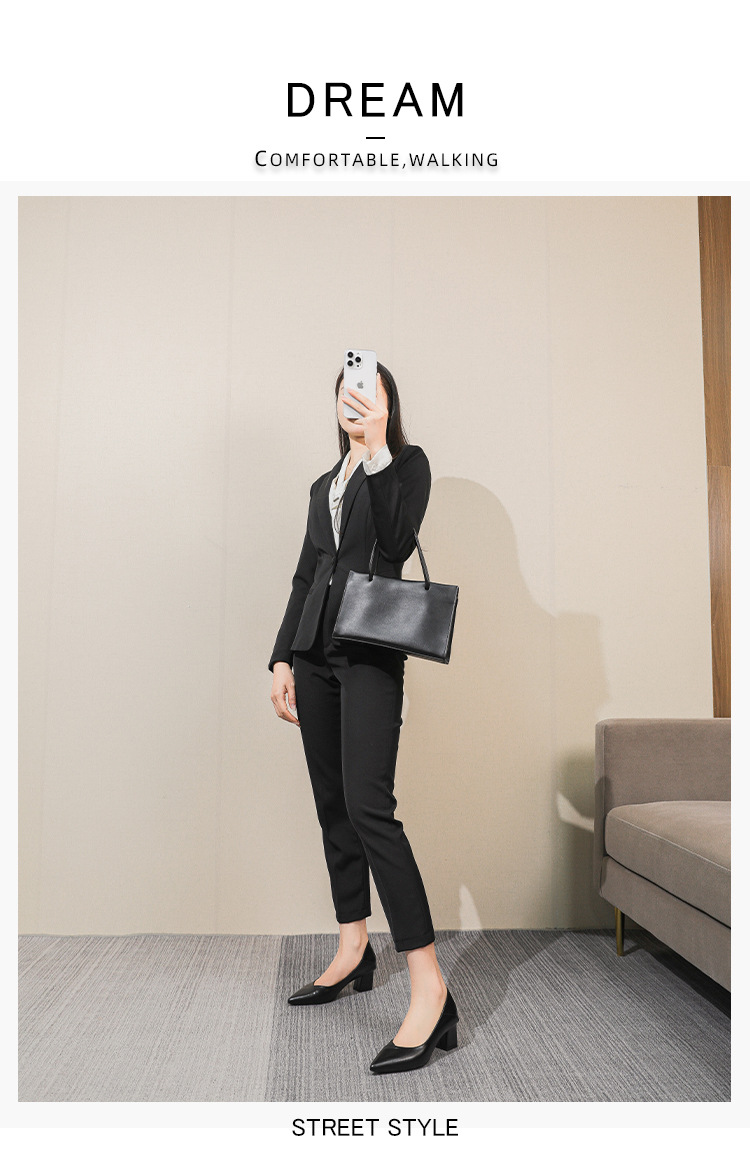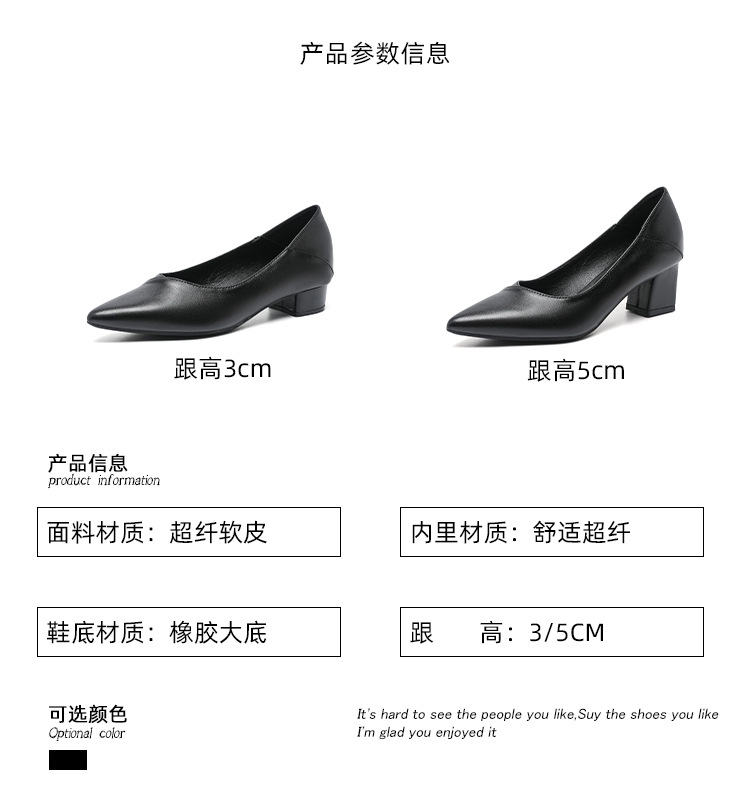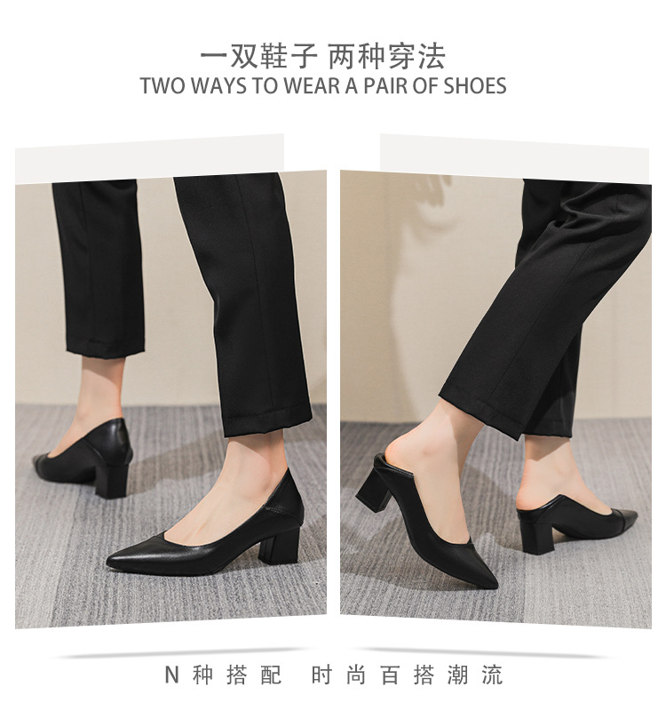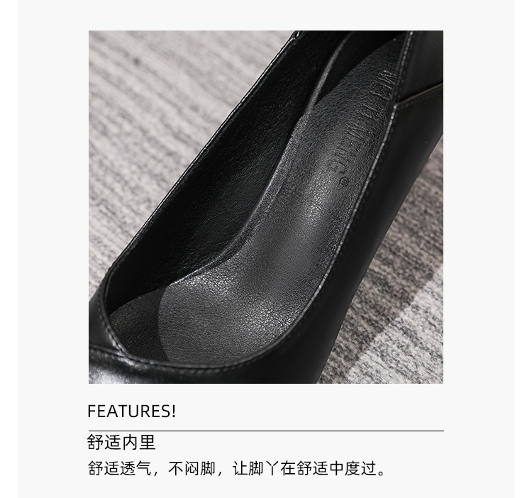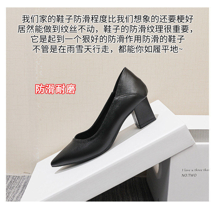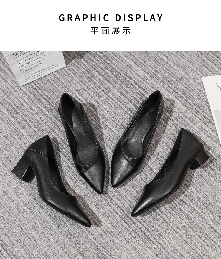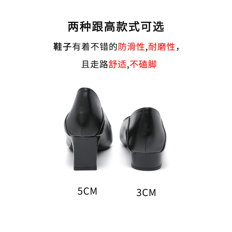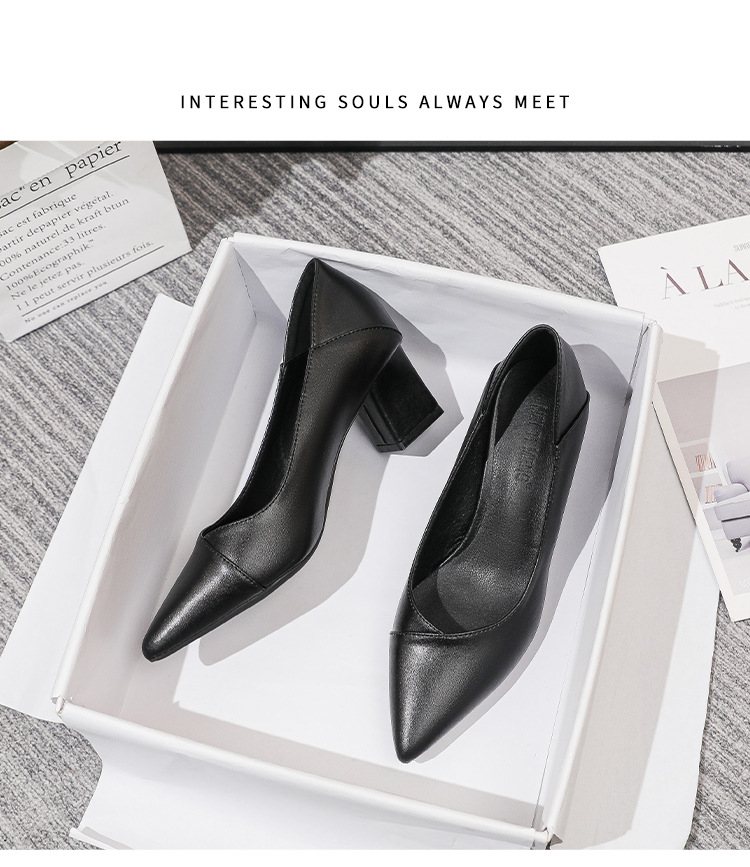 기질 부드러운 가죽 신발 두꺼운 힐 단일 레이어 신발 여성용 미들 힐 2025 블랙 원피스 하이힐 전문 스튜어디스 작업 신발 얕은 입스토어 가기