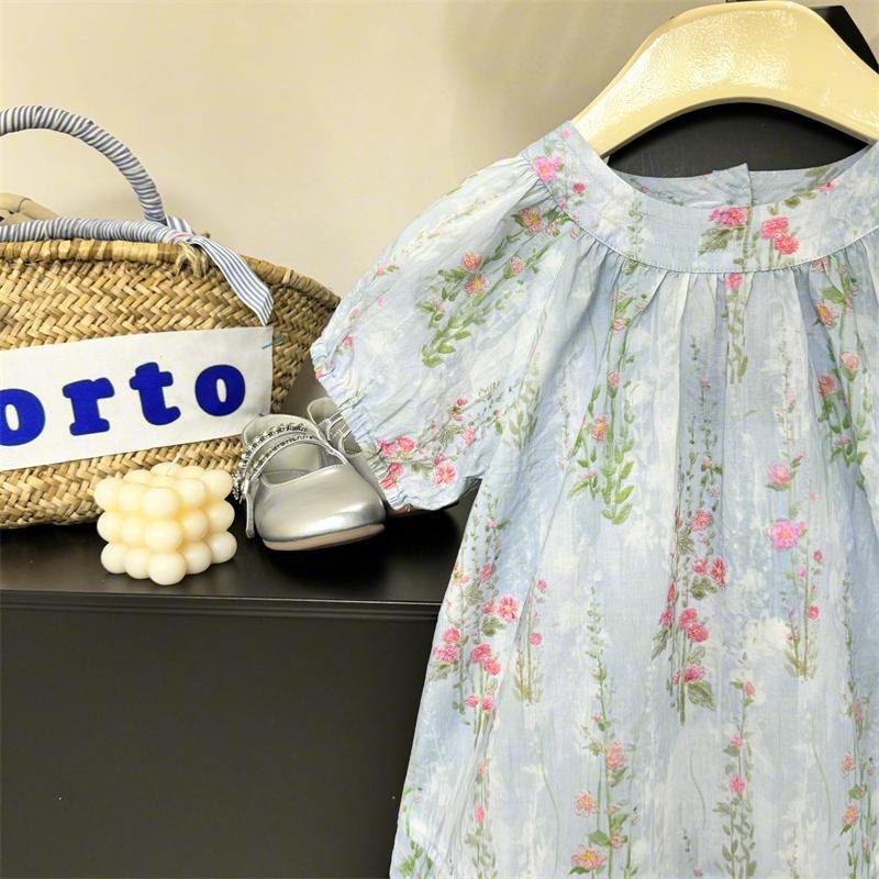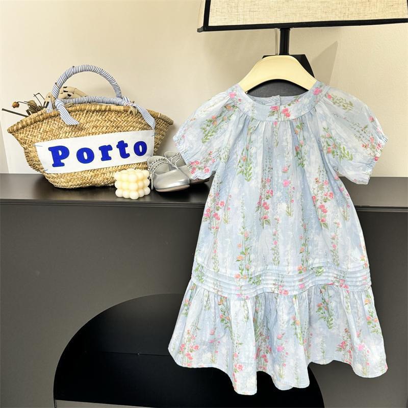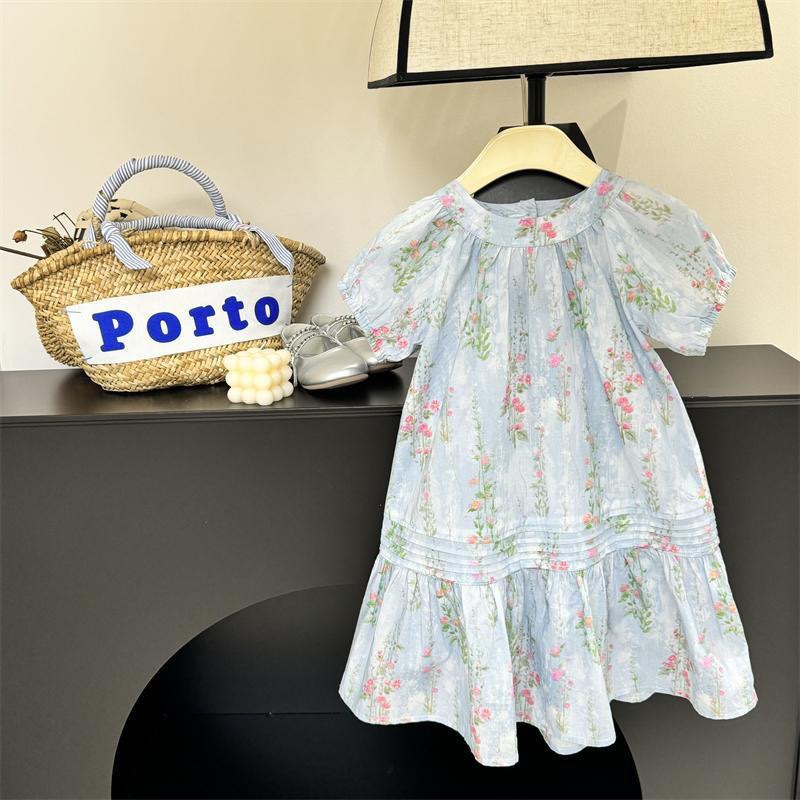 어린이 의류 소녀 여름 2025 새로운 아기 서양식 꽃 원피스 큰 어린이 한국 짧은 소매 공주 치마스토어 가기