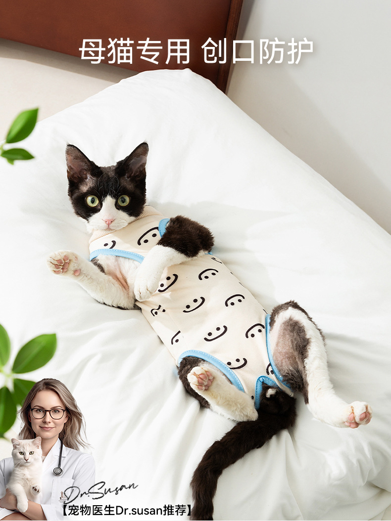 수술 후 고양이 면제복, 핥음 방지, 탈모 방지, 통기성 이유식 생리복, 암컷 고양이 사계절 애완동물복스토어 가기