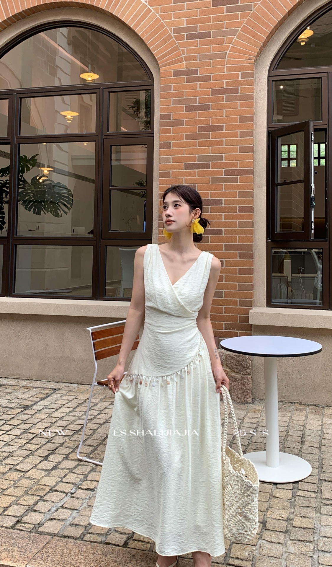 LS 프렌치 브이넥 민소매 허리라인 원피스 여성용 2025 여름 우아하고 로맨틱한 신상 롱드레스 22262 #스토어 가기