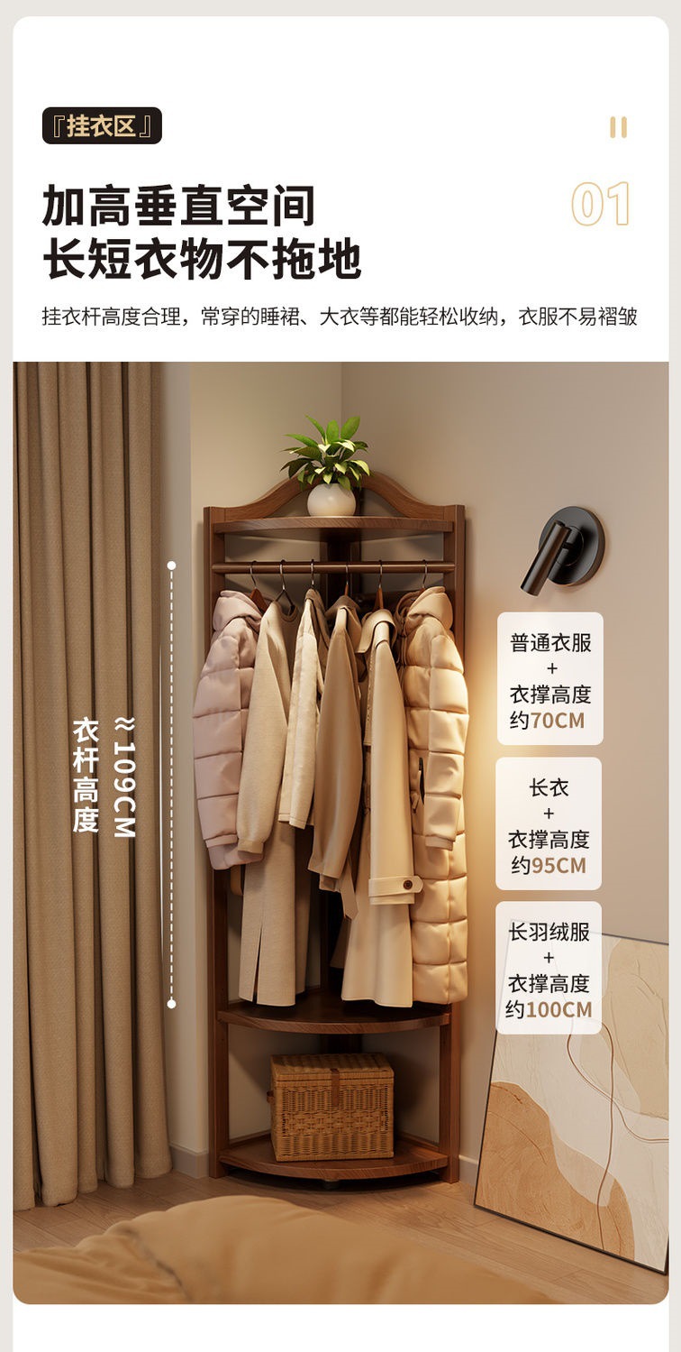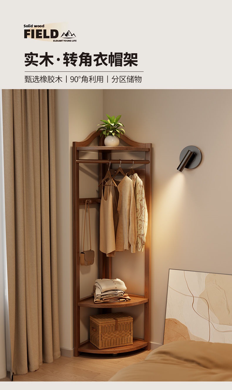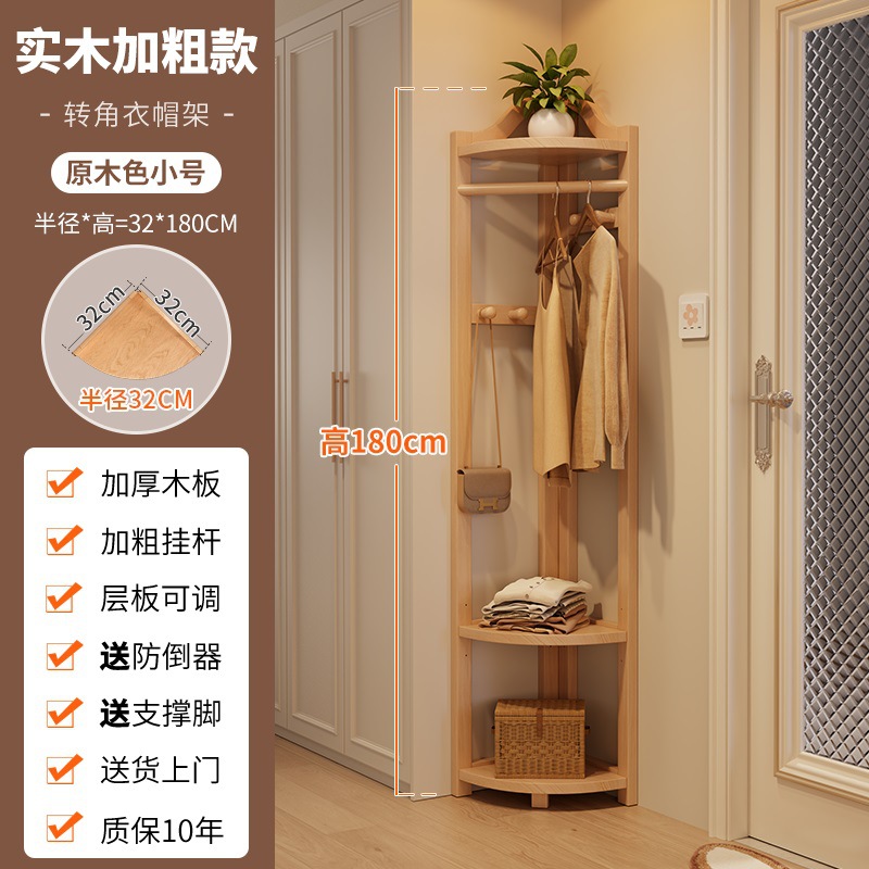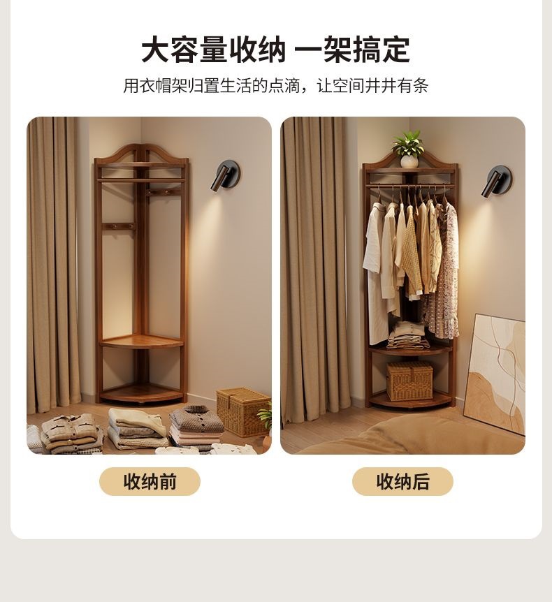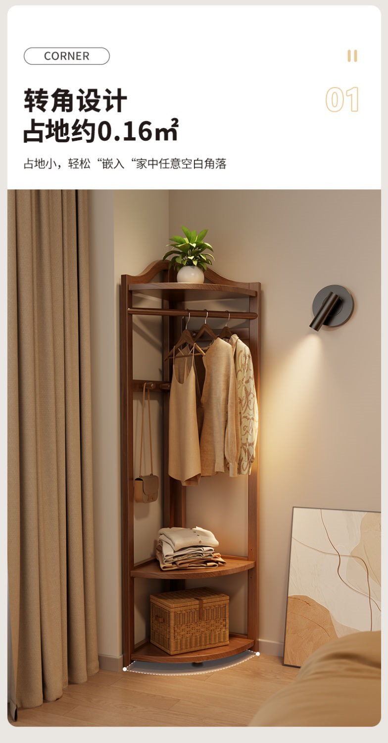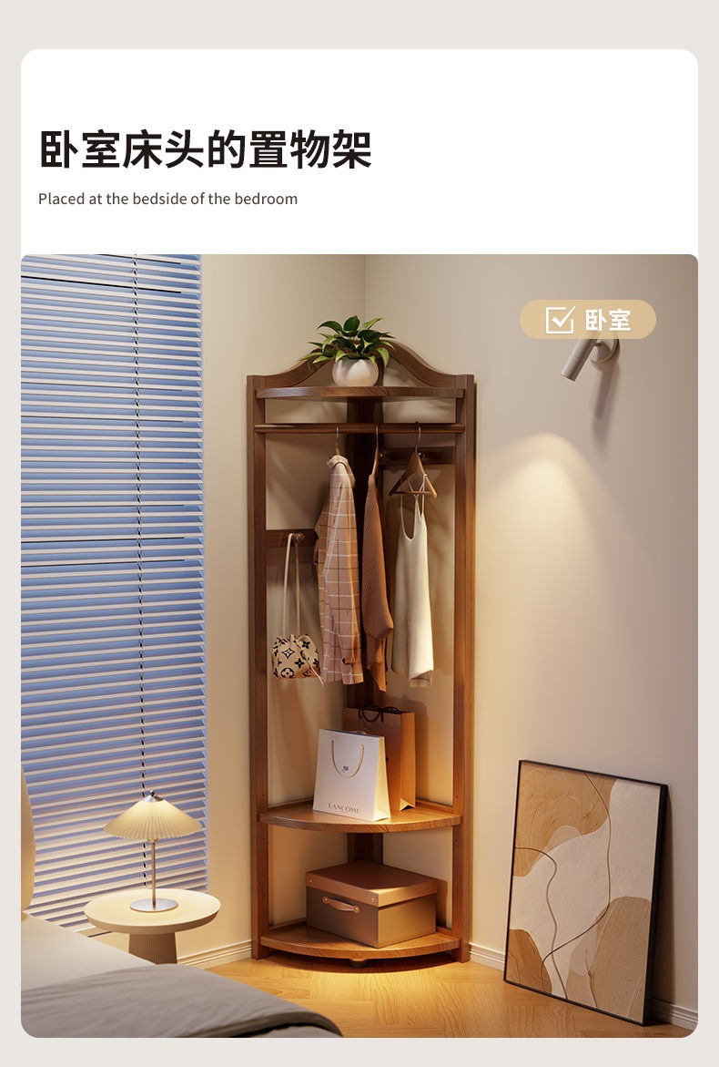 단단한 나무 코너 옷걸이 옷걸이 바닥 침실 가정용 옷 다기능 옷걸이 보관 간단한 보관 랙