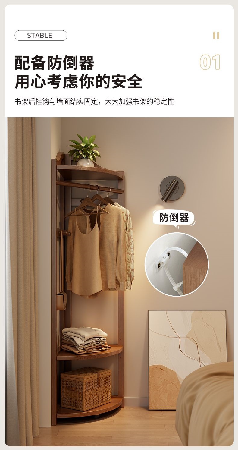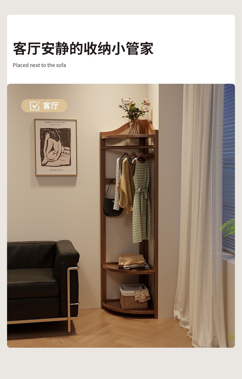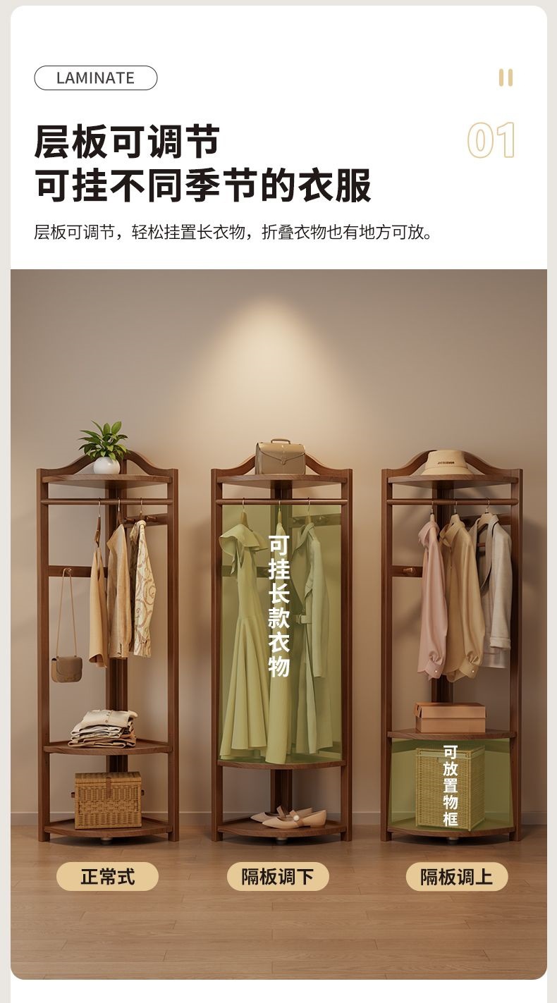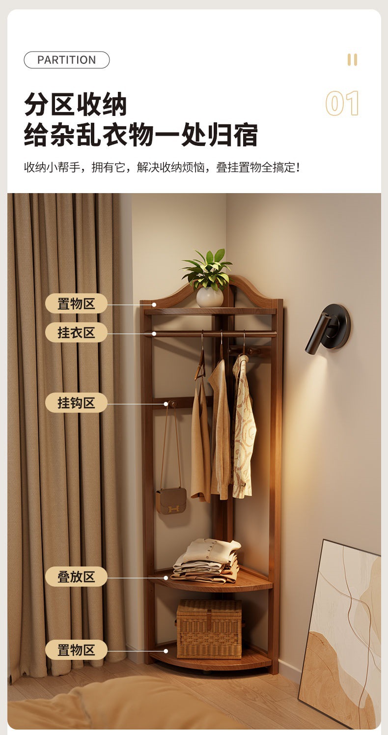 단단한 나무 코너 옷걸이 옷걸이 바닥 침실 가정용 옷 다기능 옷걸이 보관 간단한 보관 랙