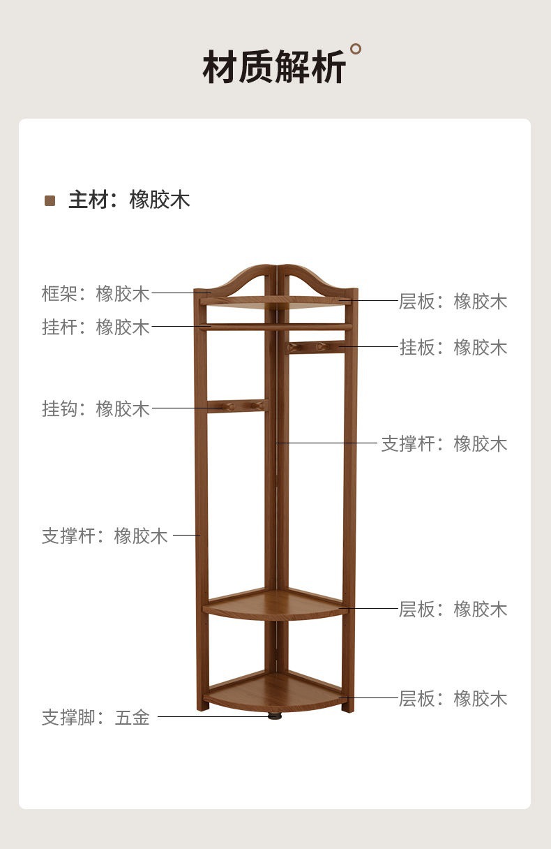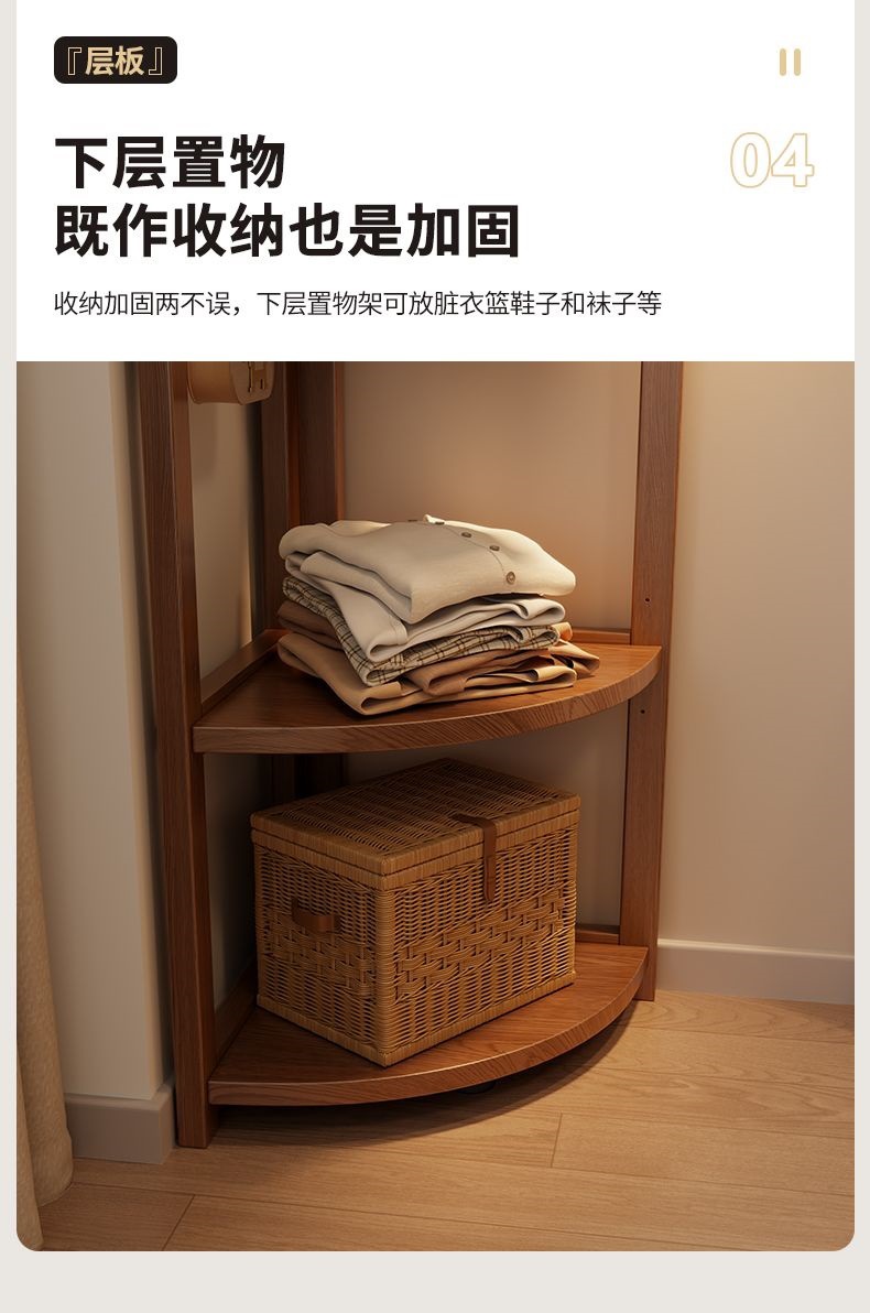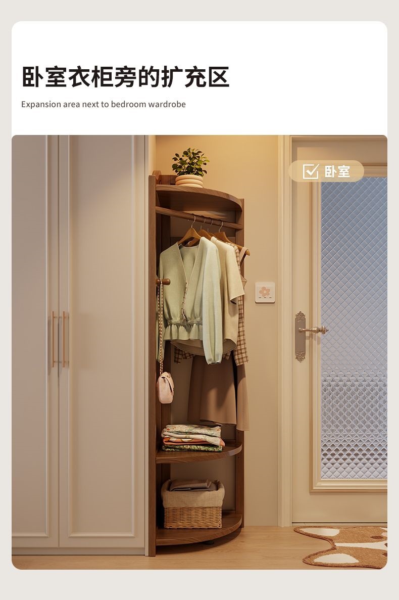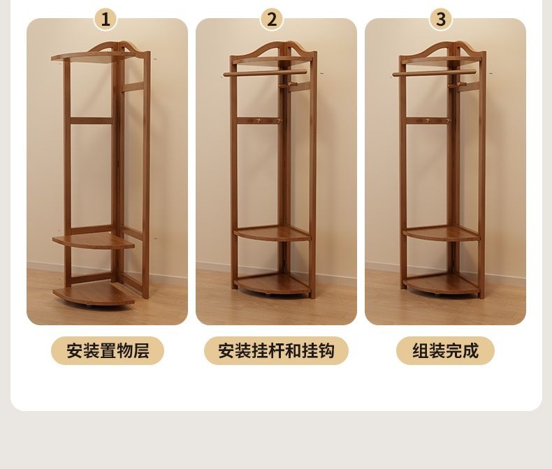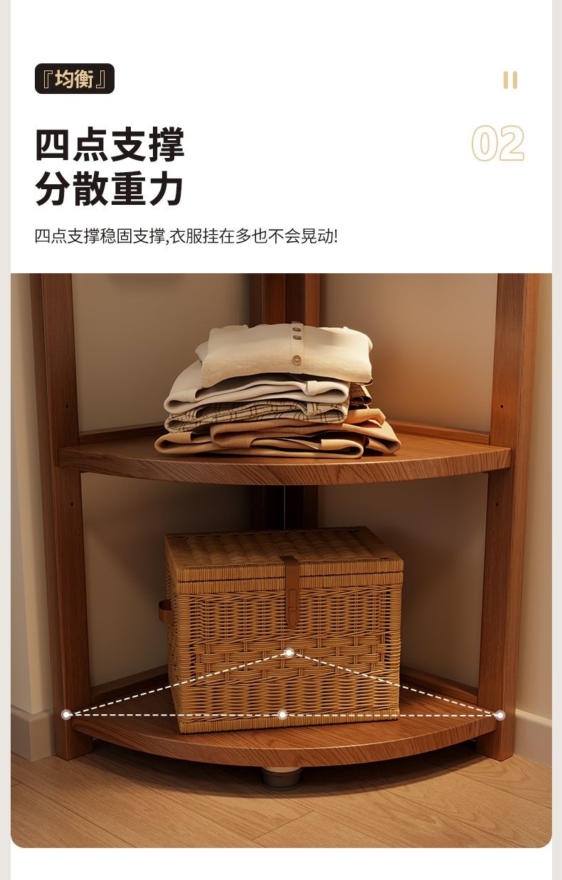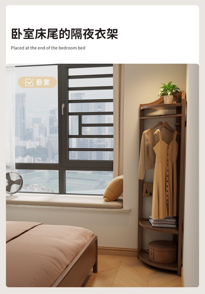 단단한 나무 코너 옷걸이 옷걸이 바닥 침실 가정용 옷 다기능 옷걸이 보관 간단한 보관 랙