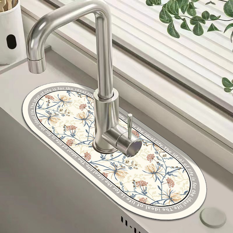 북유럽 스타일 식물 플라워 디아톰 머드 수도꼭지 흡수성 매트 카운터 탑 워시 데스크 싱크 스플래쉬 방지 배수 매트