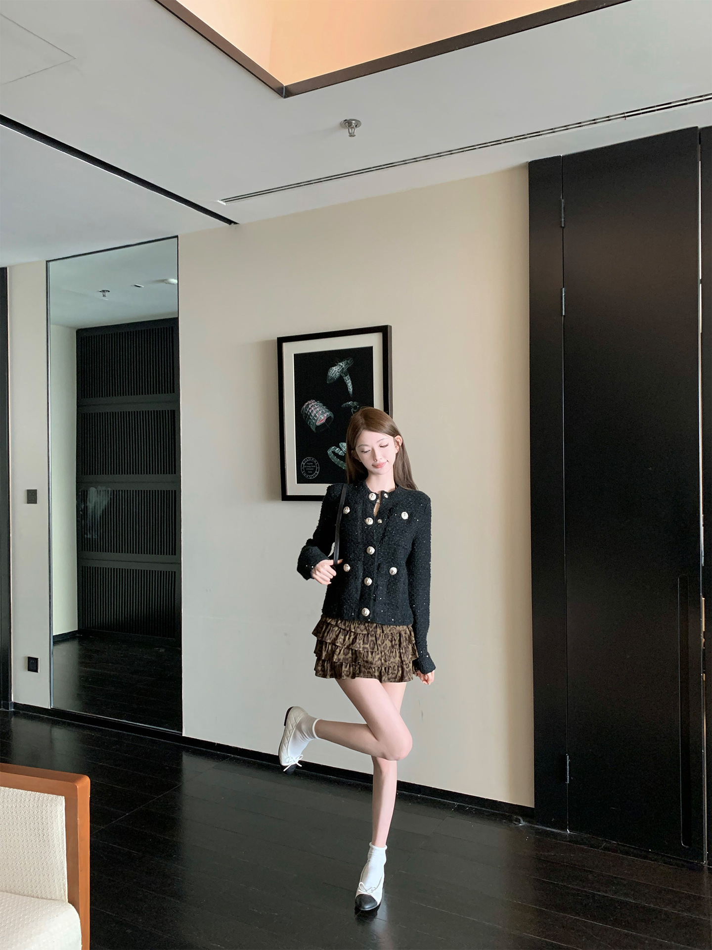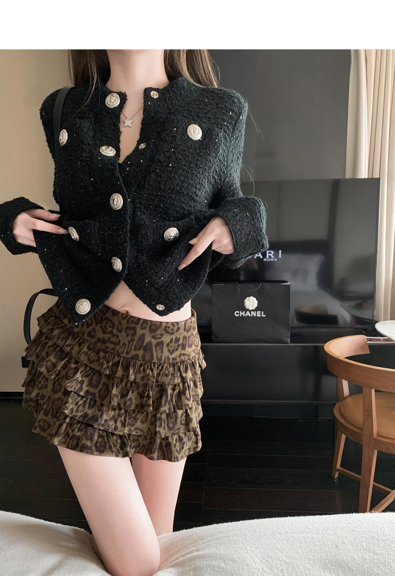 치킨 "오래 된 초기 스파이스 소녀" 귀여운 소녀 레오파드 무늬 스커트 올매치 슬리밍 캐주얼 케이크 짧은 치마스토어 가기