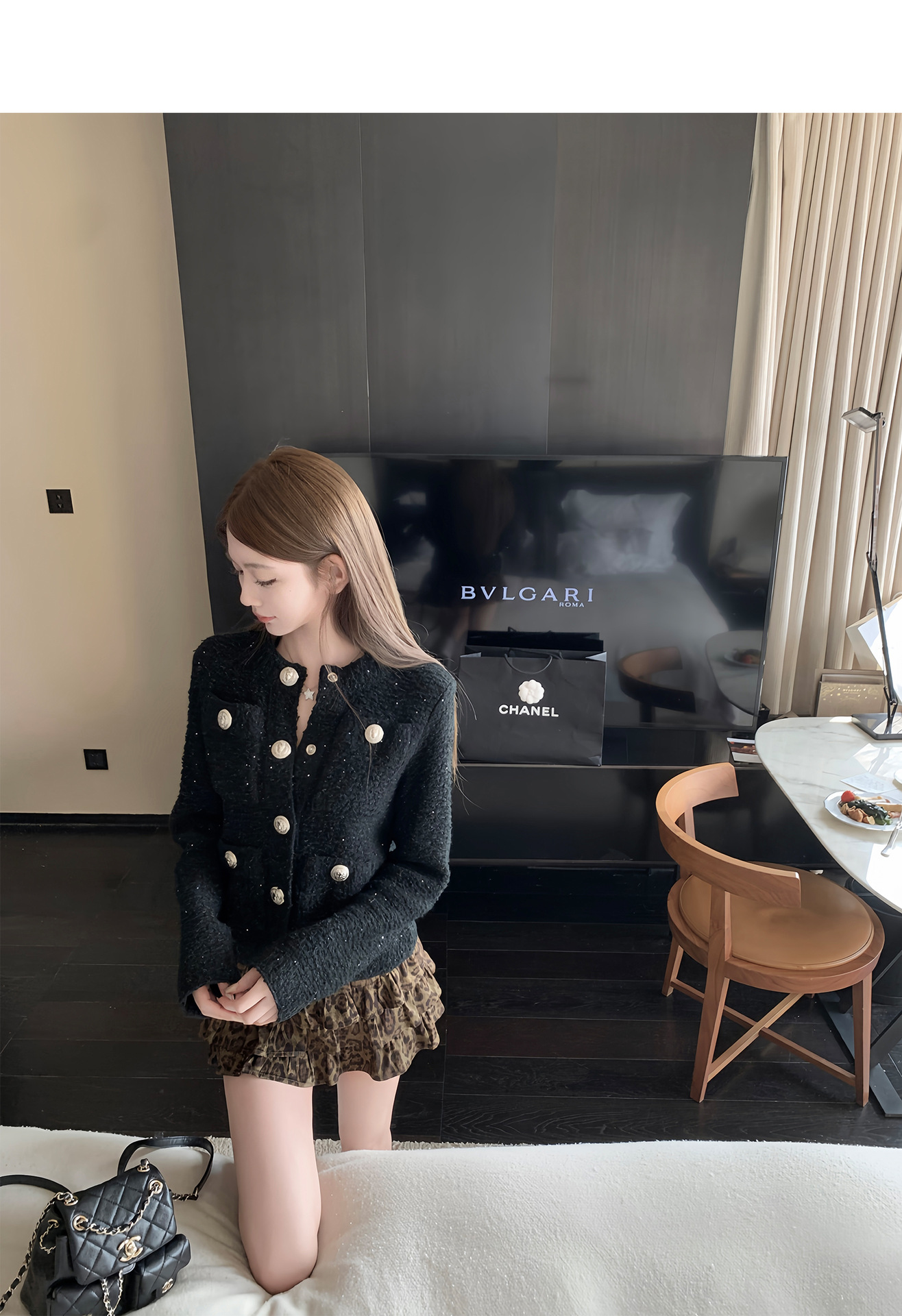 치킨 "오래 된 초기 스파이스 소녀" 귀여운 소녀 레오파드 무늬 스커트 올매치 슬리밍 캐주얼 케이크 짧은 치마