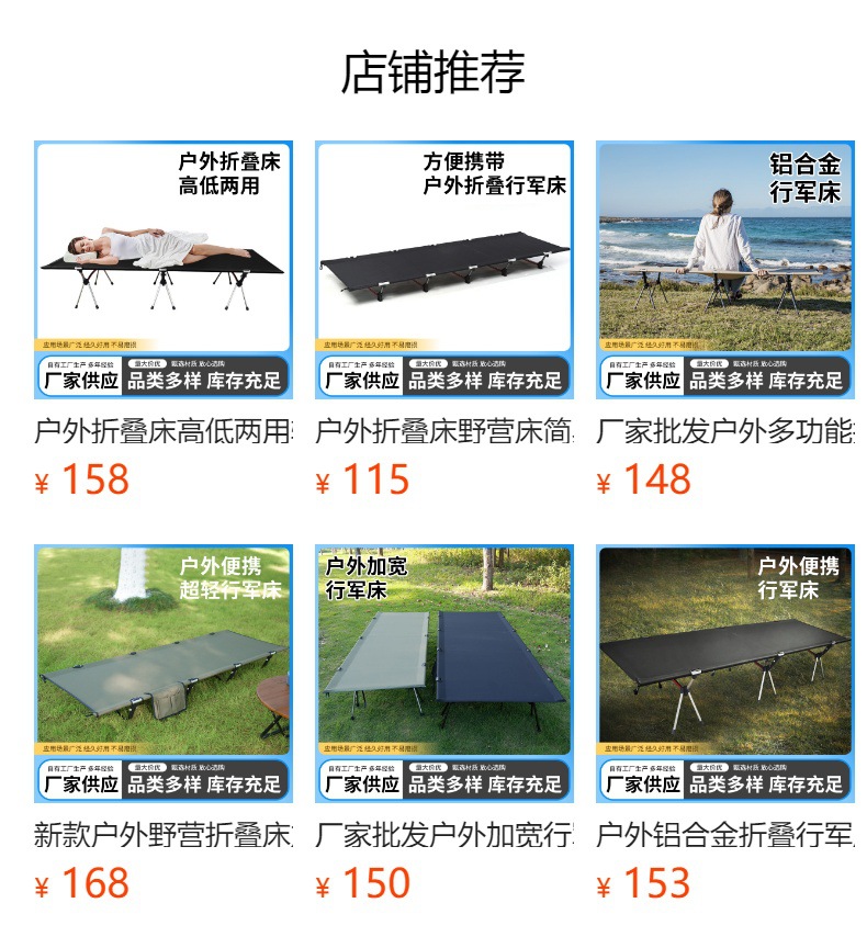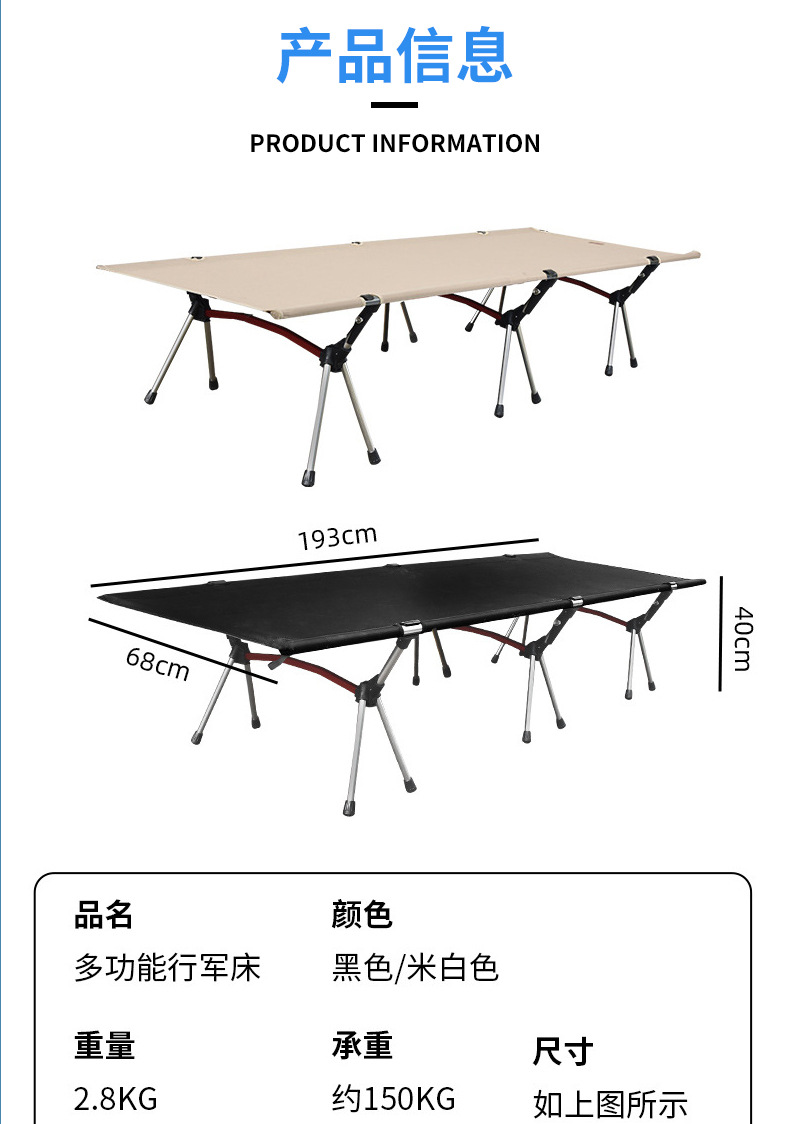 야외 접이식 침대 높낮이 이중 용도 경량 조절 가능 간단한 두꺼운 캠핑 점심 침대 제조 업체 도매스토어 가기