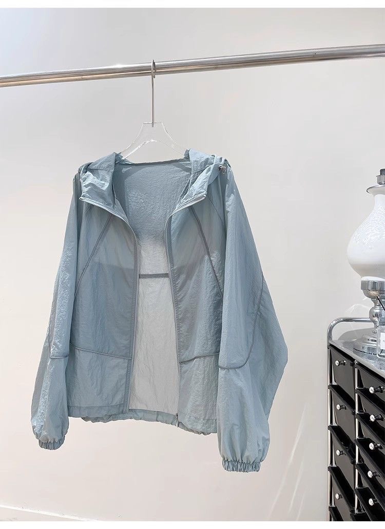 통기성 태양 보호 의류 여성의 여름 얇은 코트 2024 새로운 느슨한 올 매치 태양 보호 의류 에어컨 카디건 재킷스토어 가기