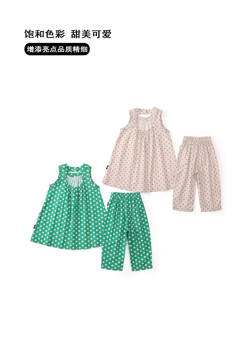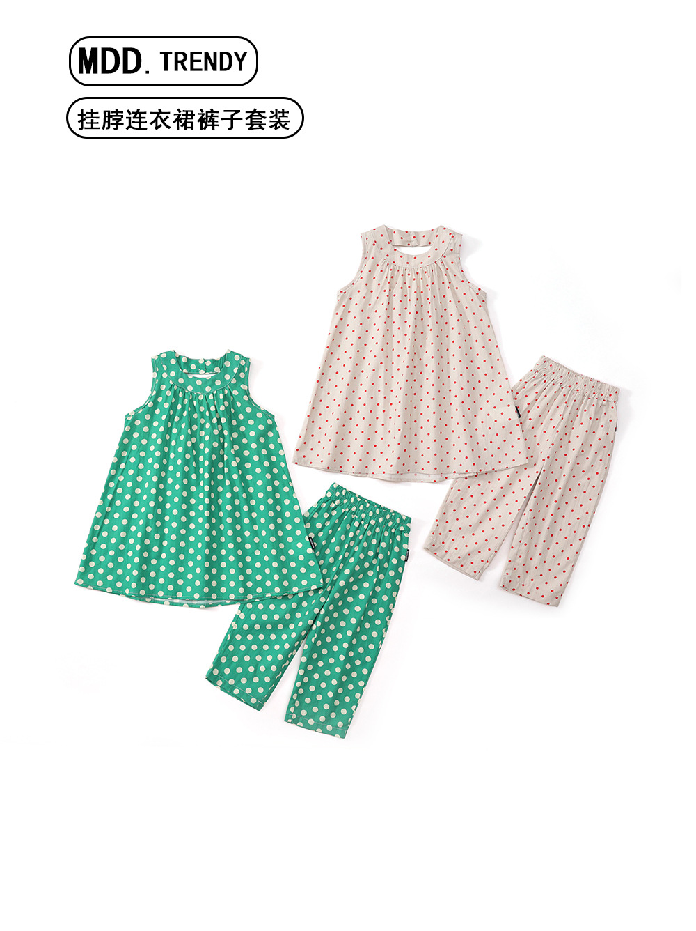 MDD 어린이 세트 2025 여름 새 민소매 원피스 자른 바지 한국 폴로도트 세트 외국식 국경스토어 가기