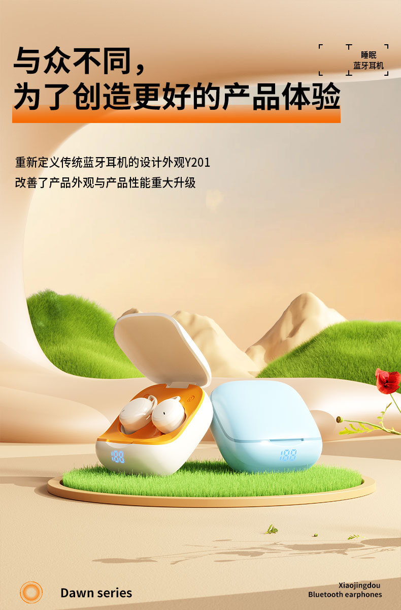 새로운 개인 모델 Y201 무선 블루투스 헤드셋 이어폰 형 수면 헤드셋 소음 감소 미니 슈퍼 긴 배터리 수명 도매
