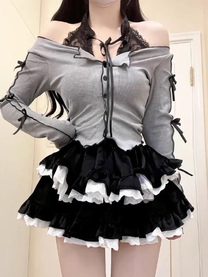 달콤한 소녀 발레 디자인 레이스 바느질 푹신한 케이크 여름 새로운 연꽃 잎 높은 허리 슬리밍 스커트