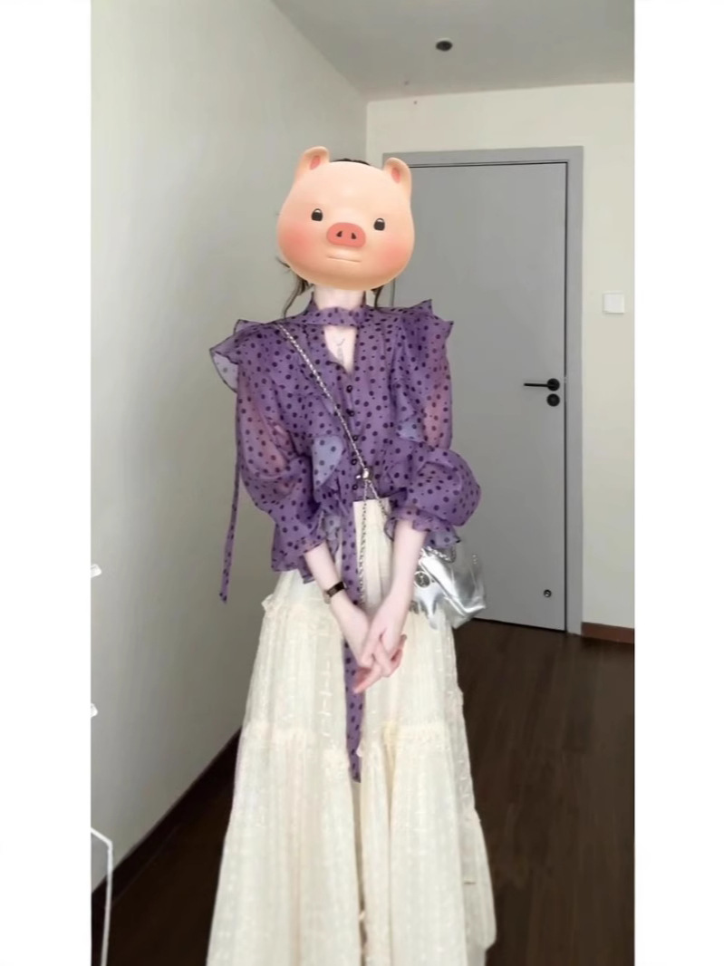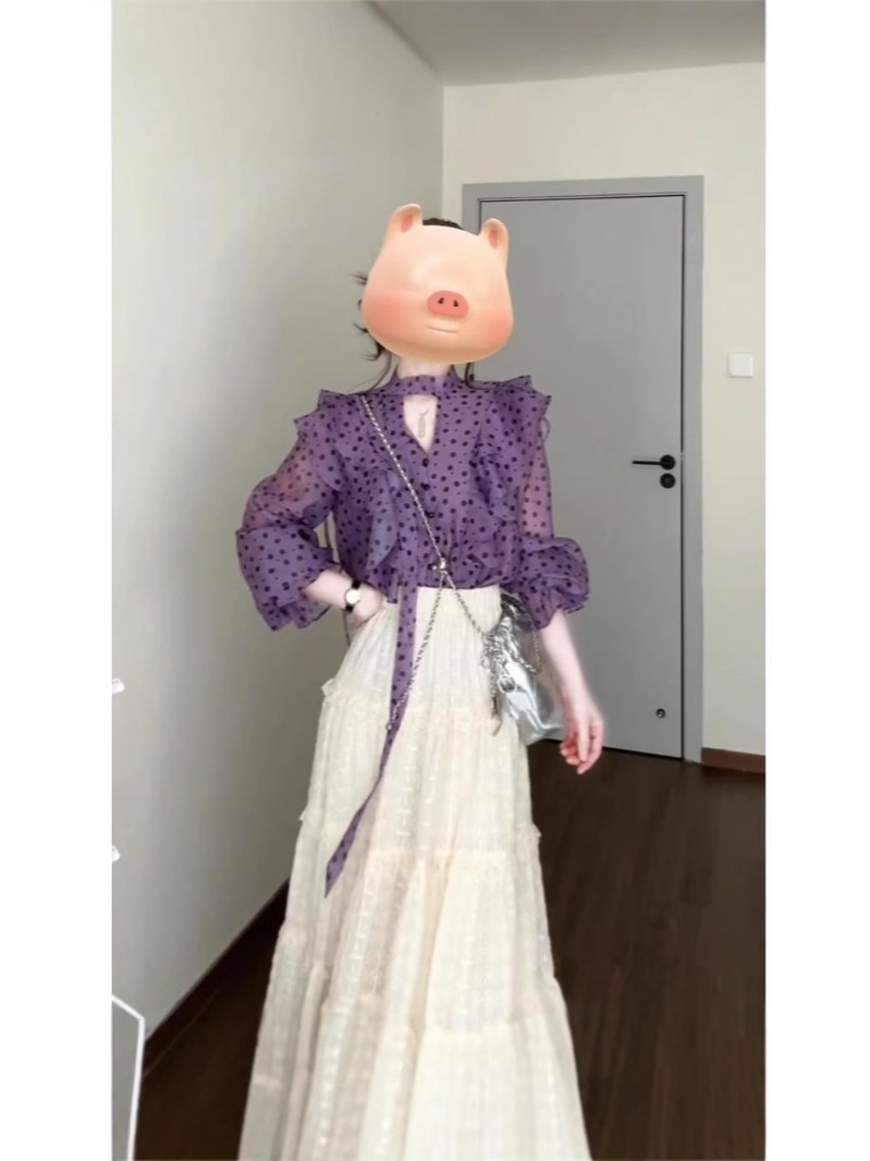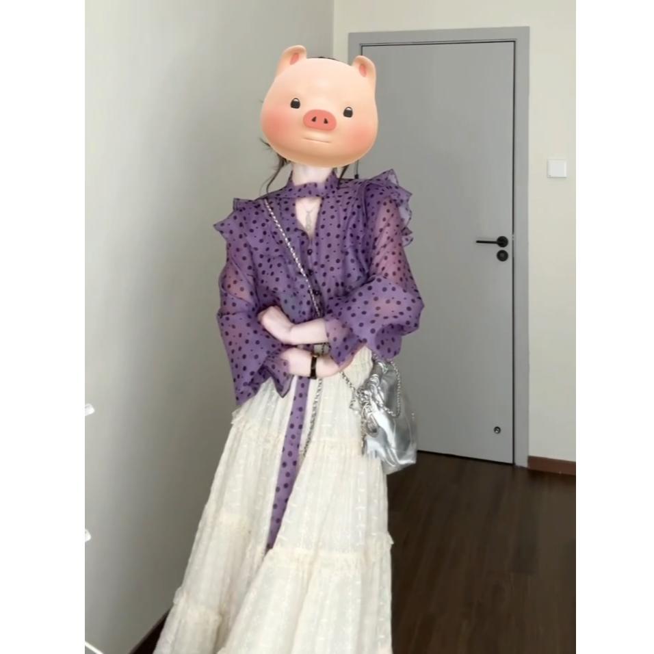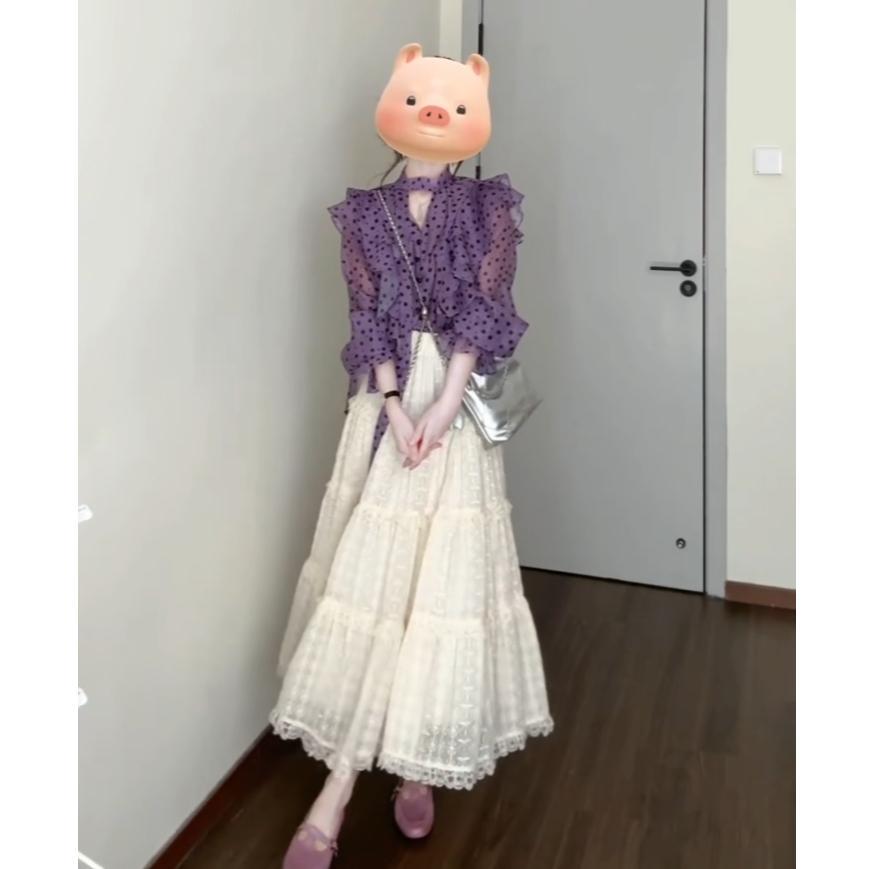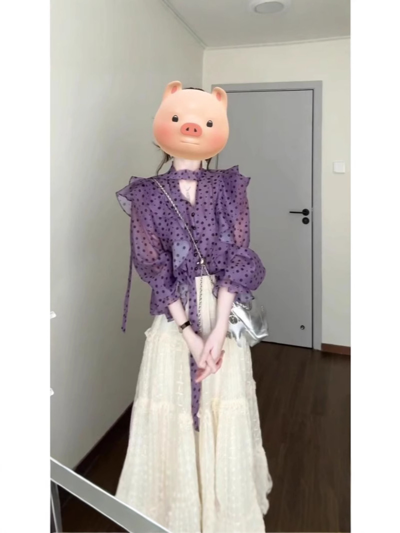 우아한 달콤한 V 넥 러플 호른 슬리브 셔츠 여성 디자인 센스 니쉬 올 매치 스커트 슬림 세트
