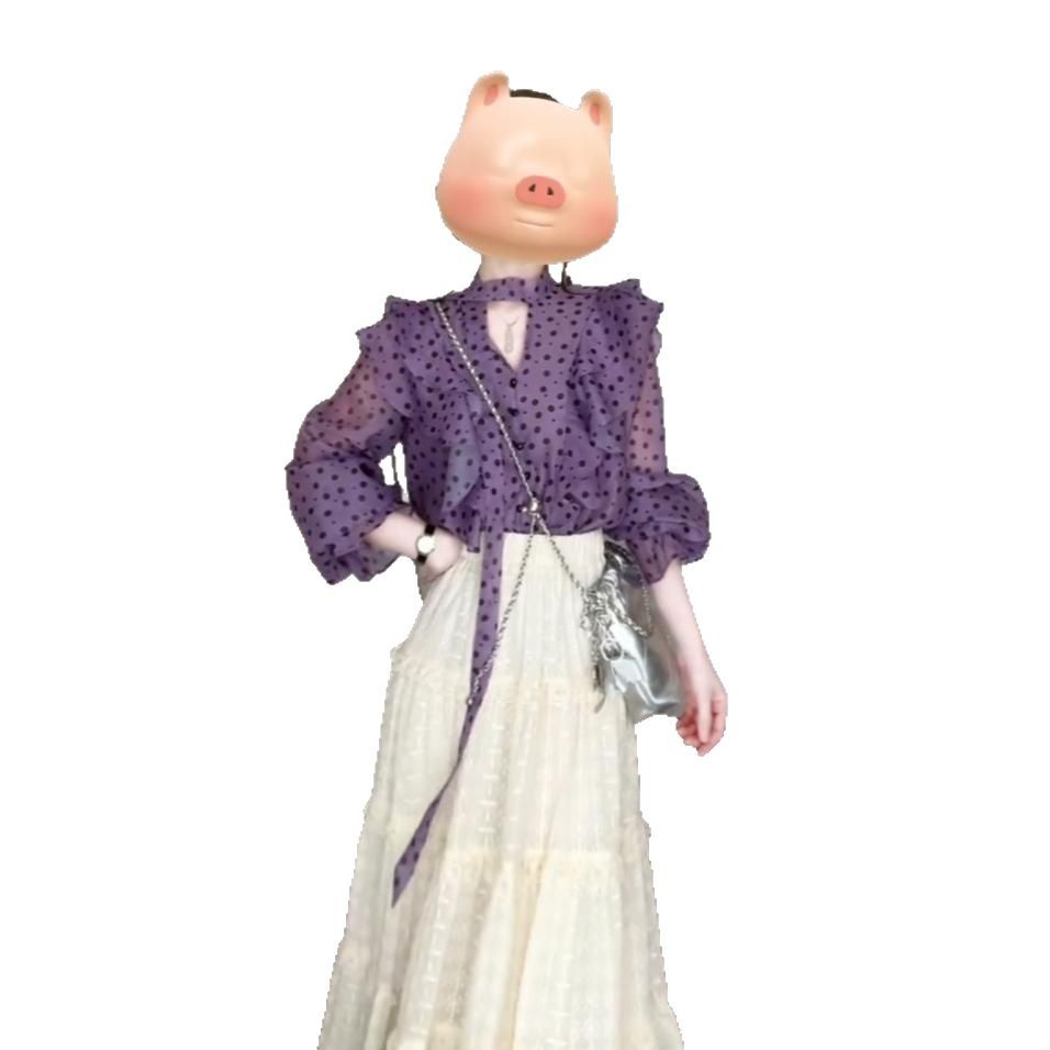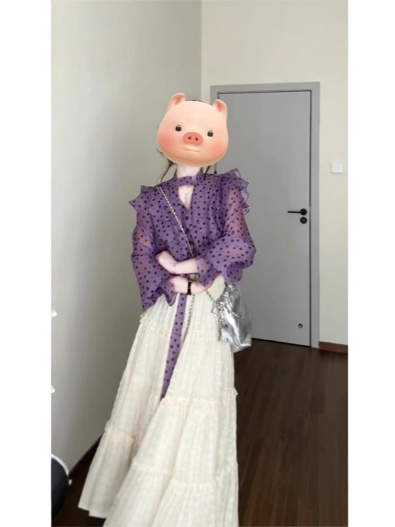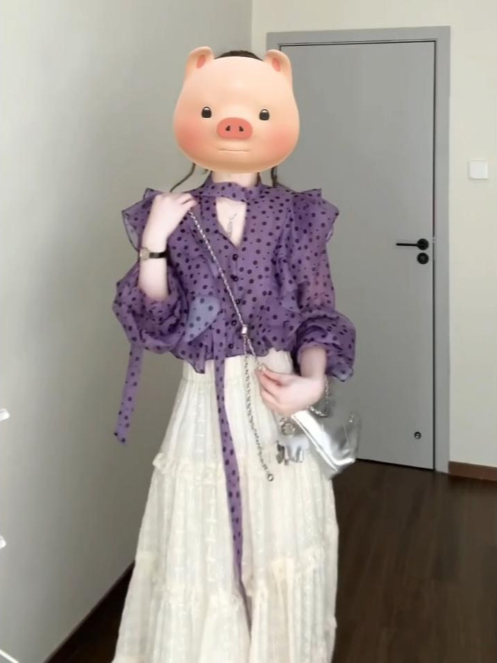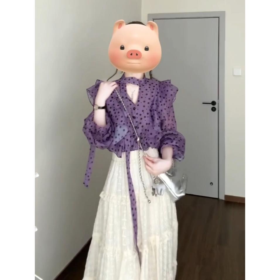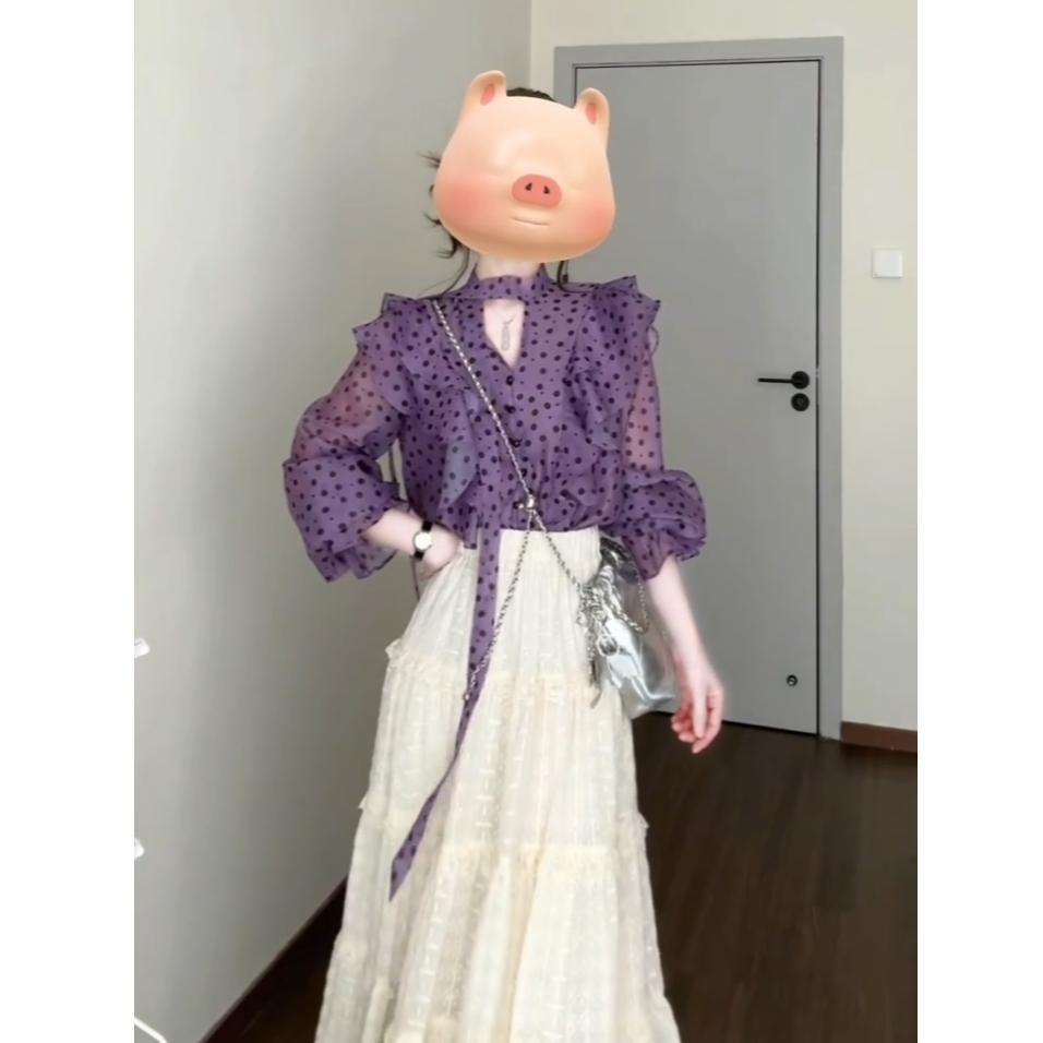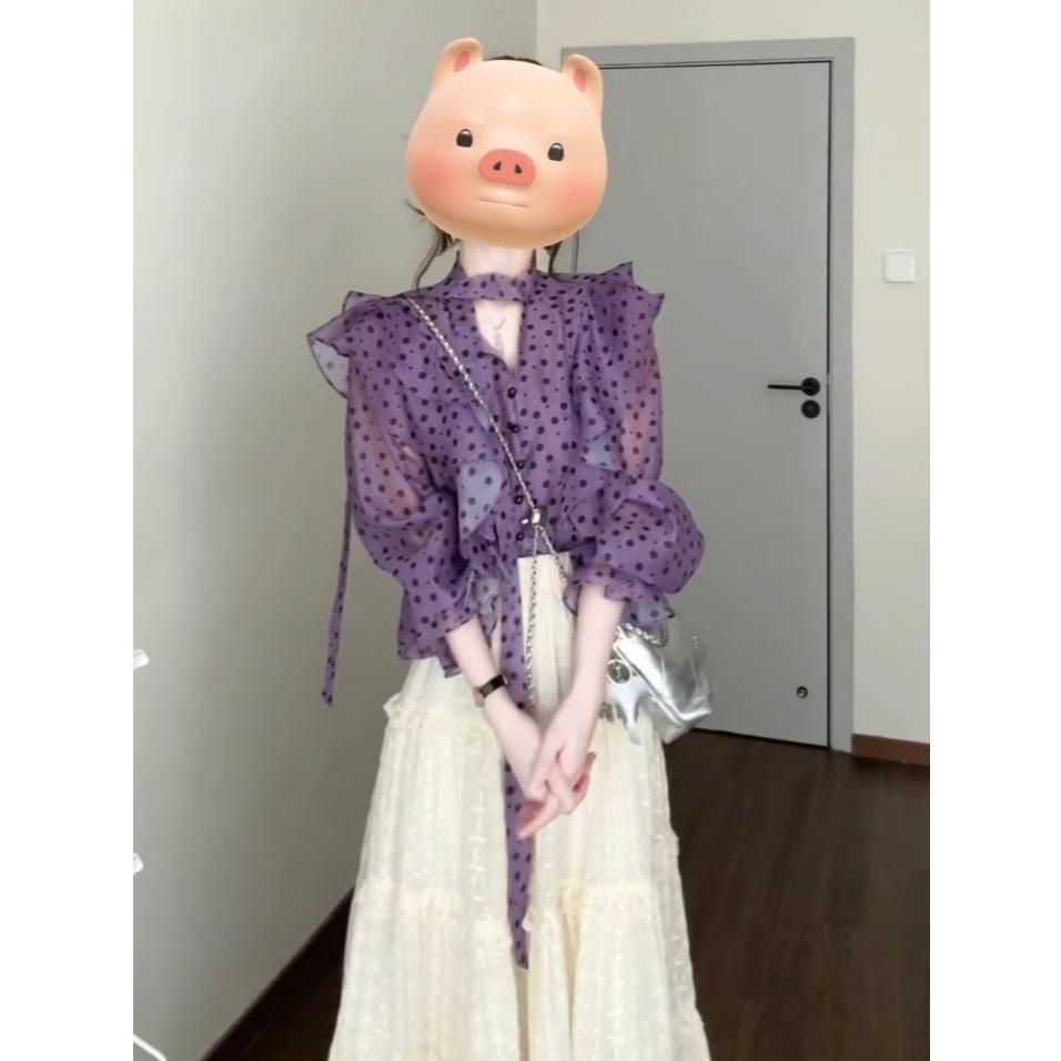 우아한 달콤한 V 넥 러플 호른 슬리브 셔츠 여성 디자인 센스 니쉬 올 매치 스커트 슬림 세트스토어 가기
