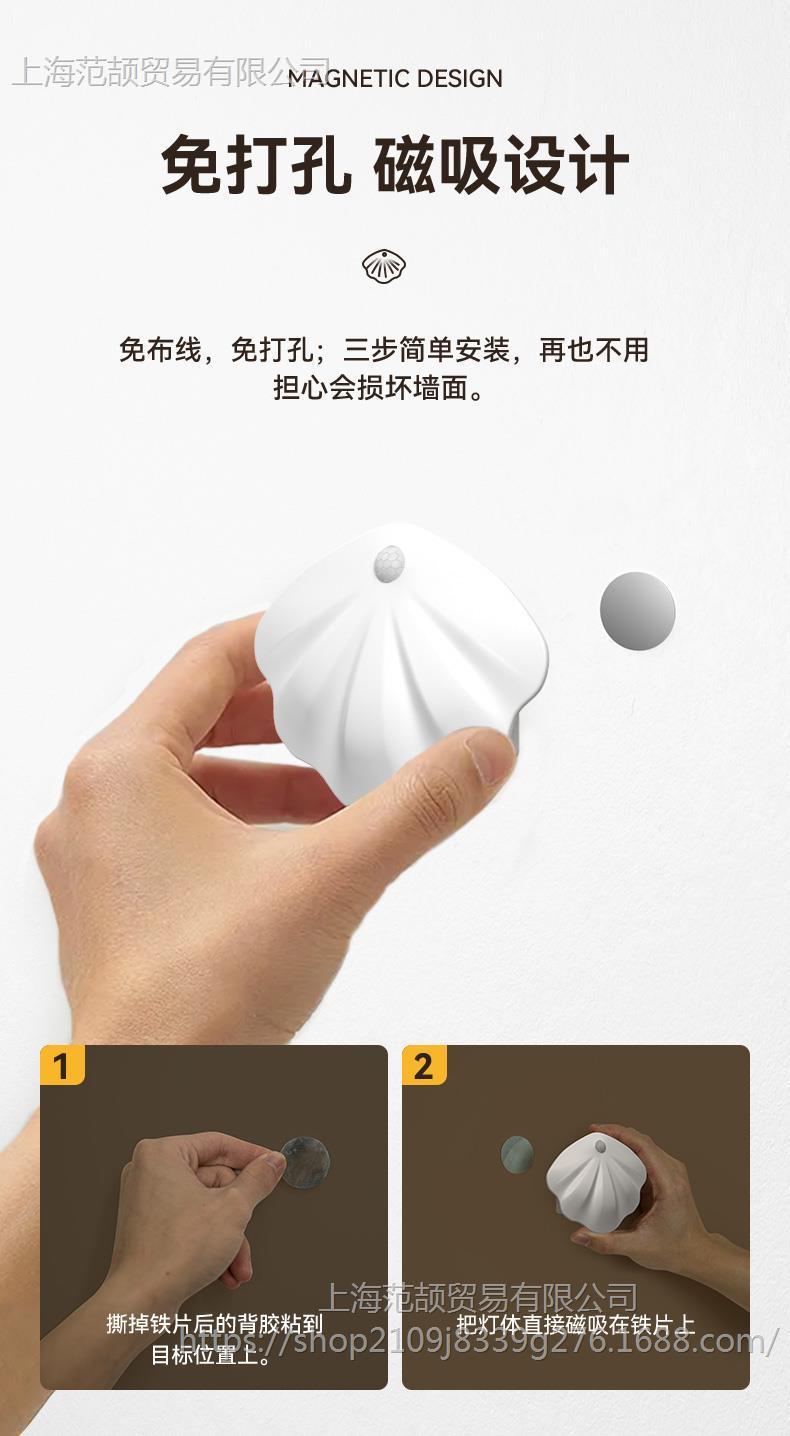 Jedwell 쉘 벽 램프 배선-무료 침실 분위기 램프 벽 충전식 인체 유도 램프 진입 문스토어 가기