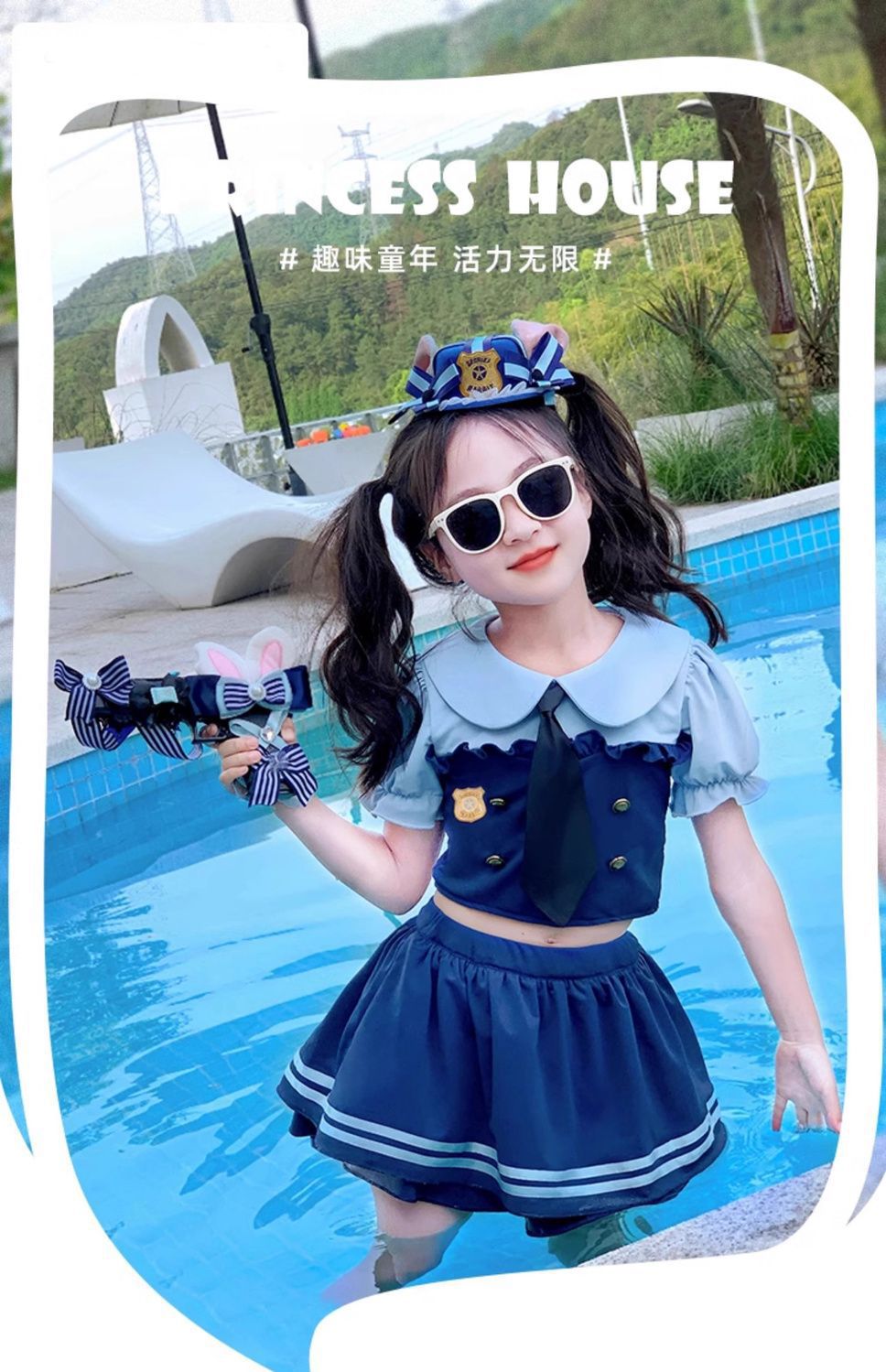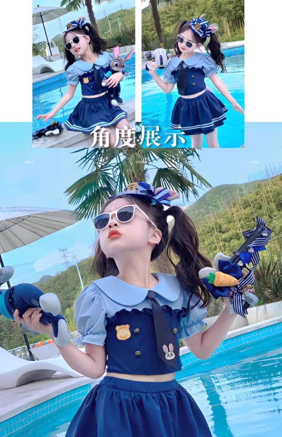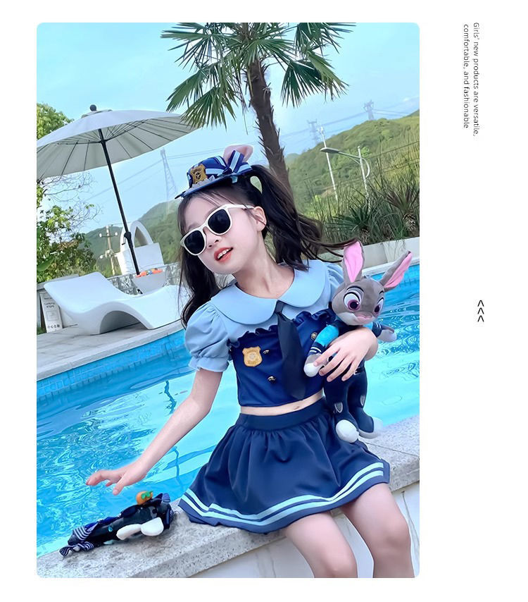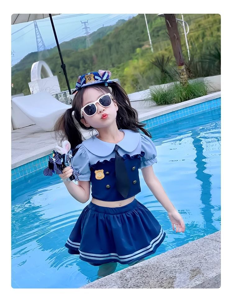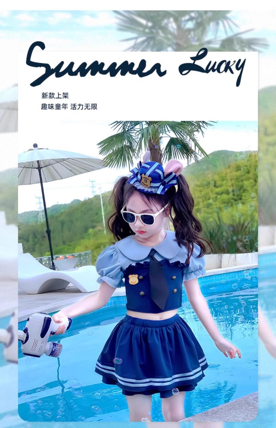 2026년 여름 여아 한국 스타일 귀여운 토끼 경찰관 의상, 여자 아기들을 위한 트렌디하고 귀여운 분리형 수영복스토어 가기