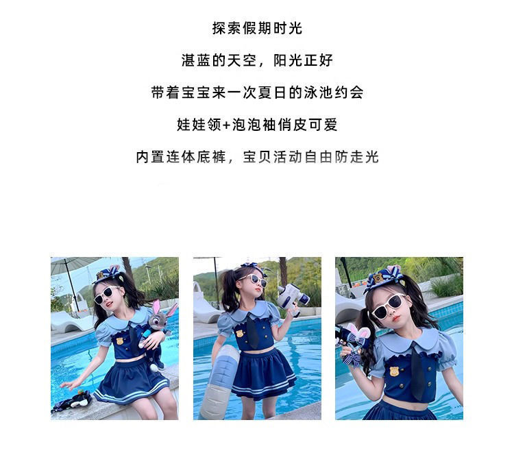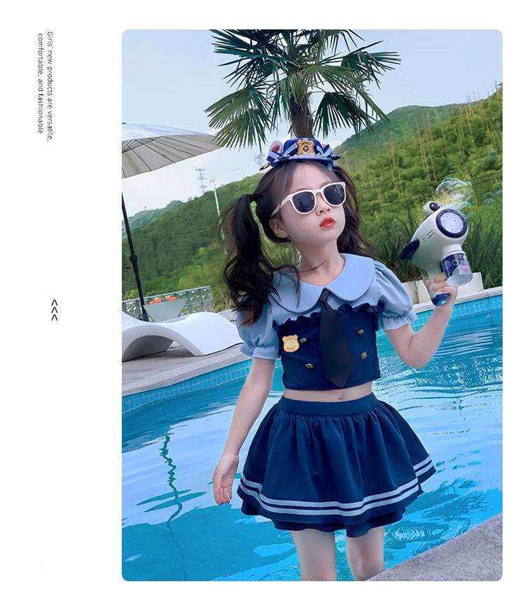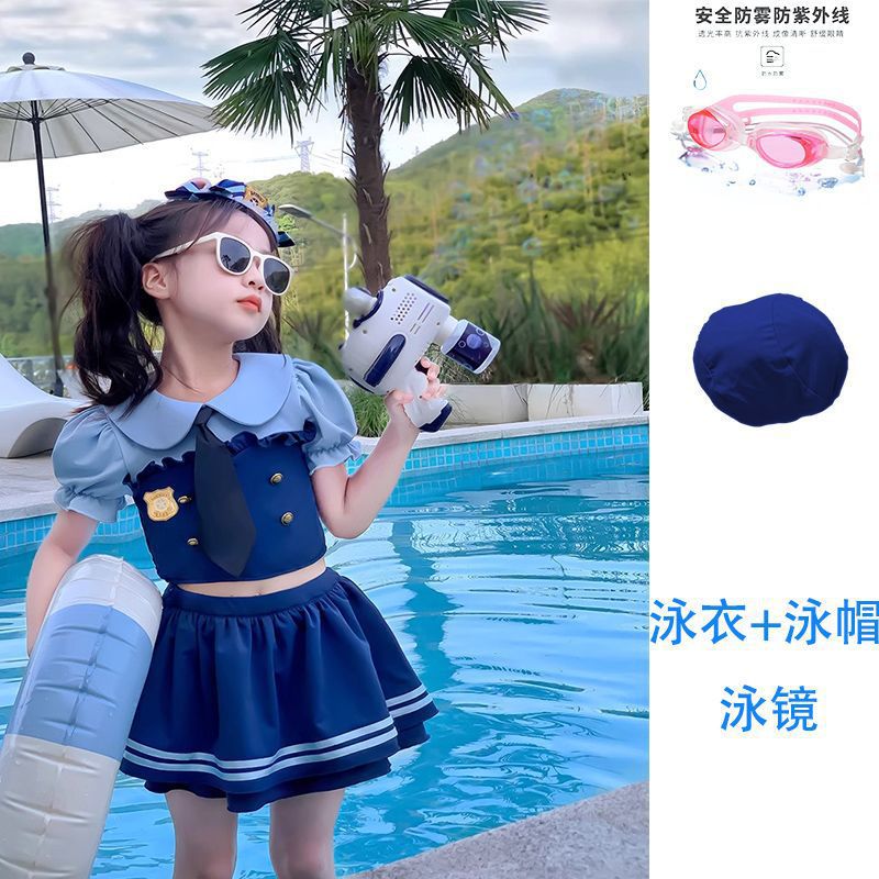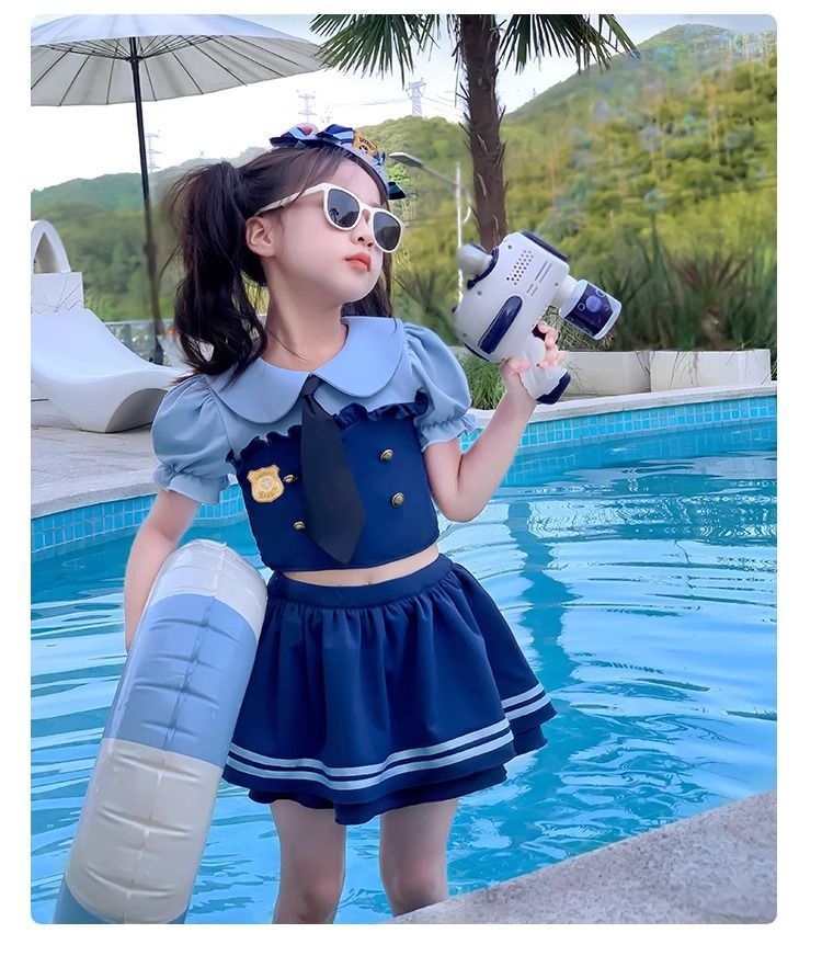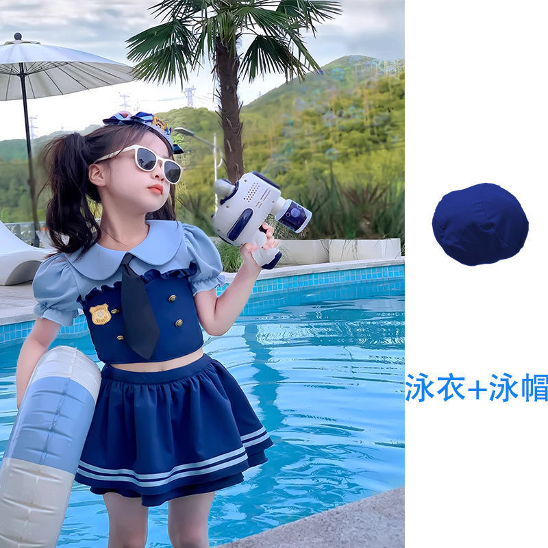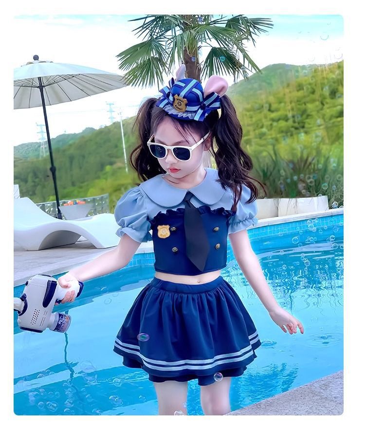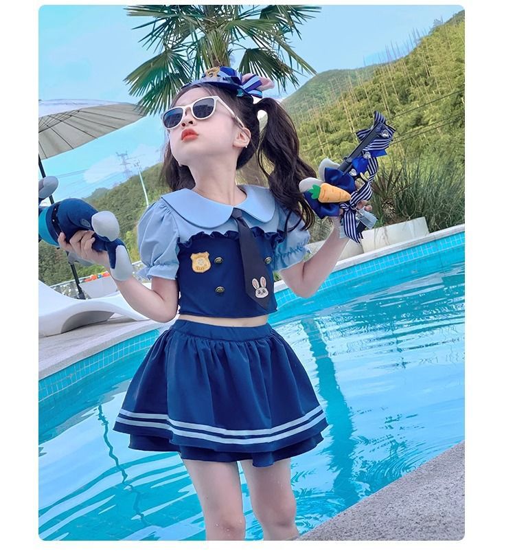 2026년 여름 여아 한국 스타일 귀여운 토끼 경찰관 의상, 여자 아기들을 위한 트렌디하고 귀여운 분리형 수영복스토어 가기