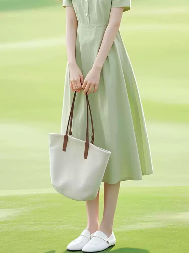 여름 새로운 약간의 뚱뚱한 소녀 서양식 연령 감소 커버 팔 낚시 데이트 휴일 스타일 미니멀리스트 그린 원피스스토어 가기