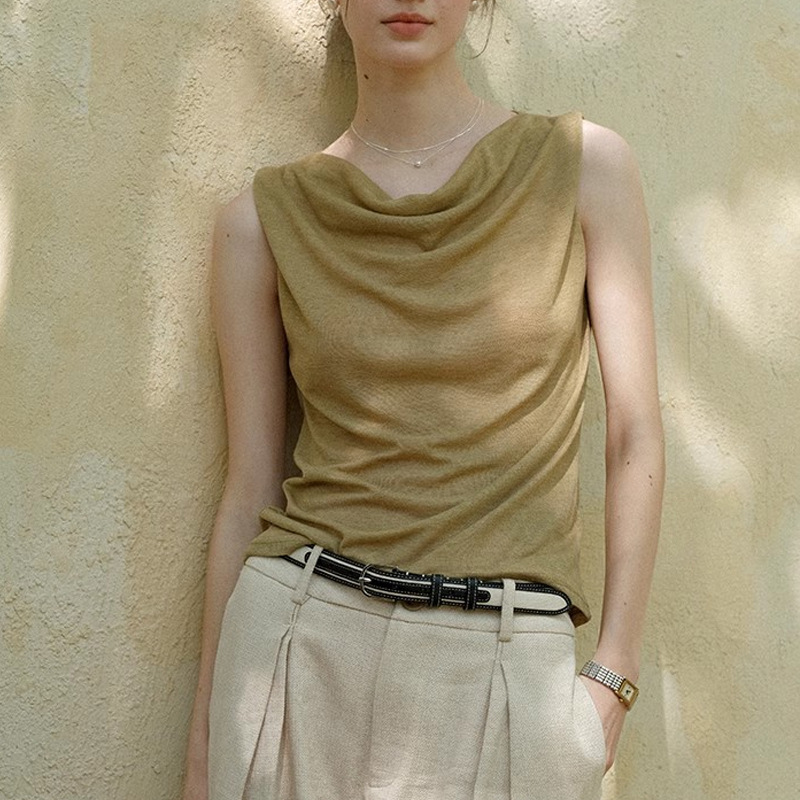 2025 여름 재단 부드러운 피부 친화적 인 민소매 칼라 더미 목걸이 조끼 작은 셔츠