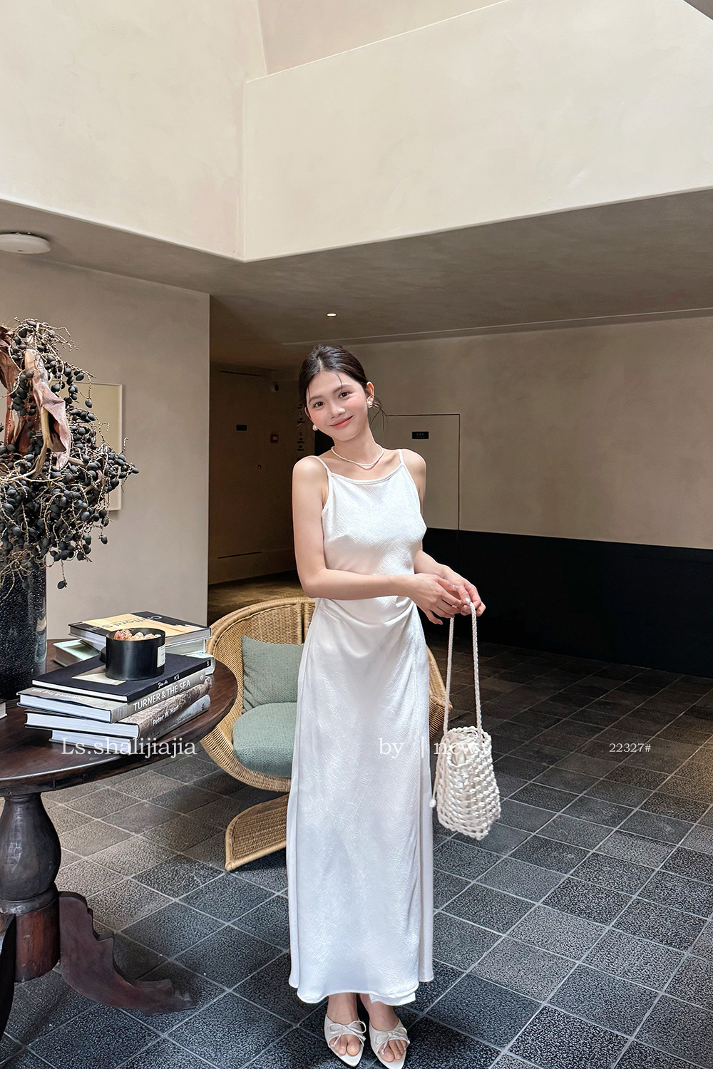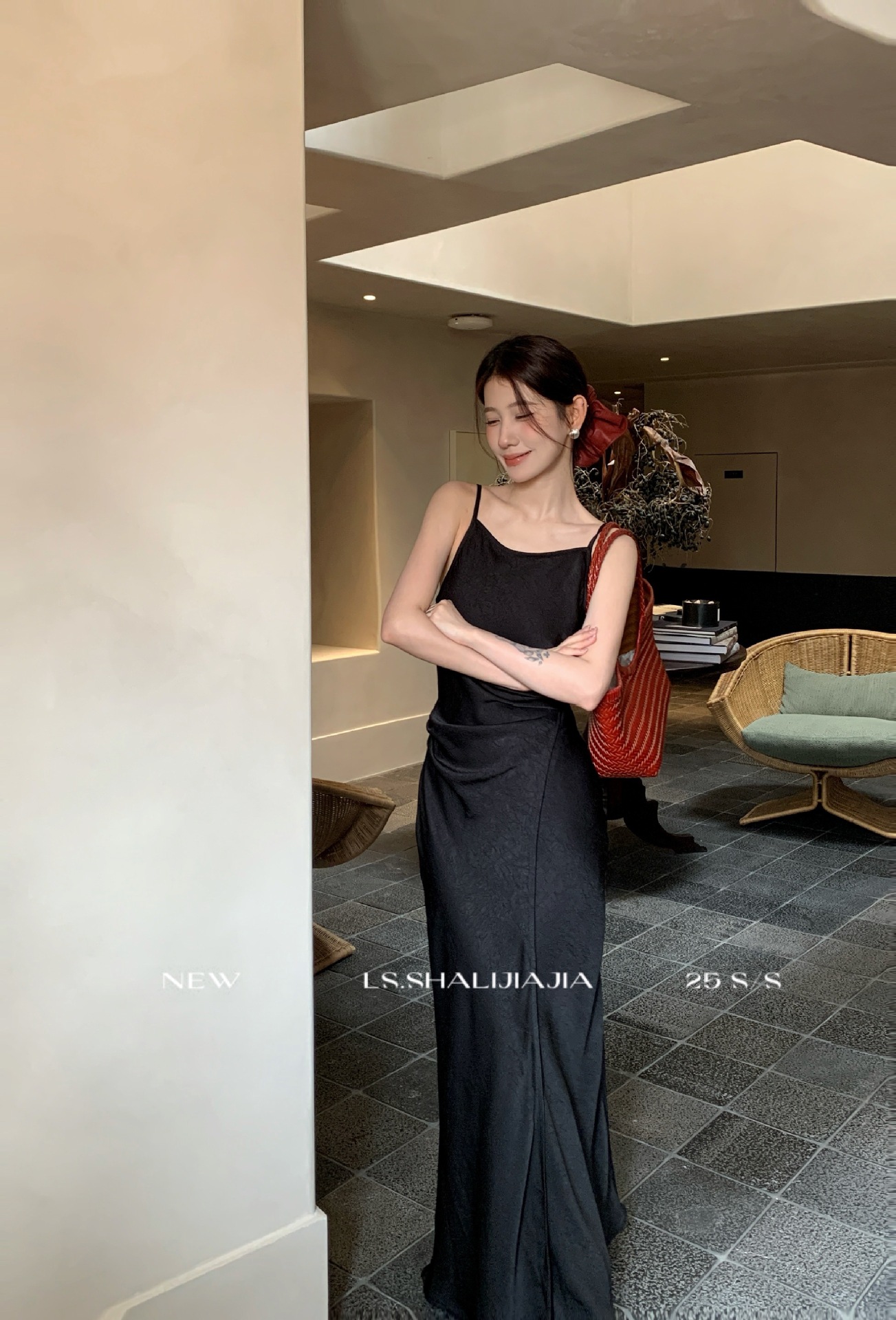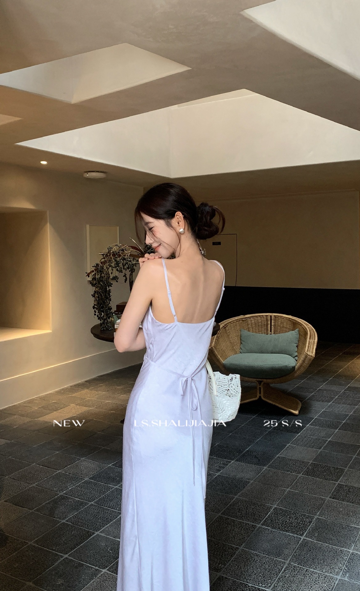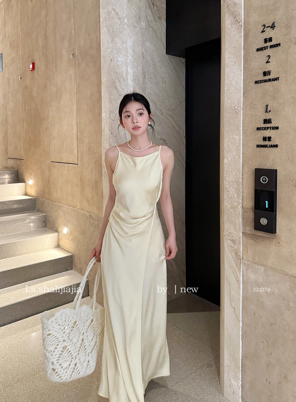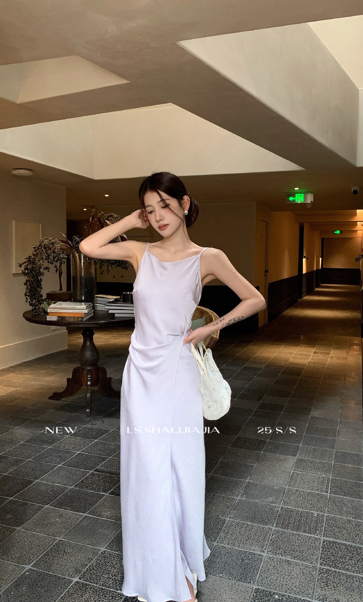 LS Shuzhi 프랑스 고급 새틴 서스펜더 드레스 여성 2025 여름 신작 패션 롱 스커트 22327