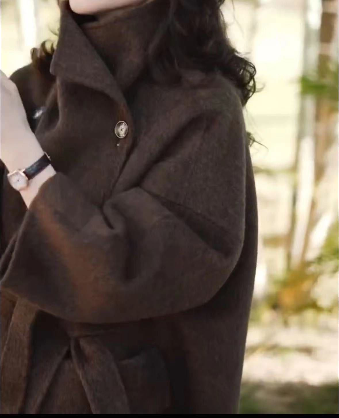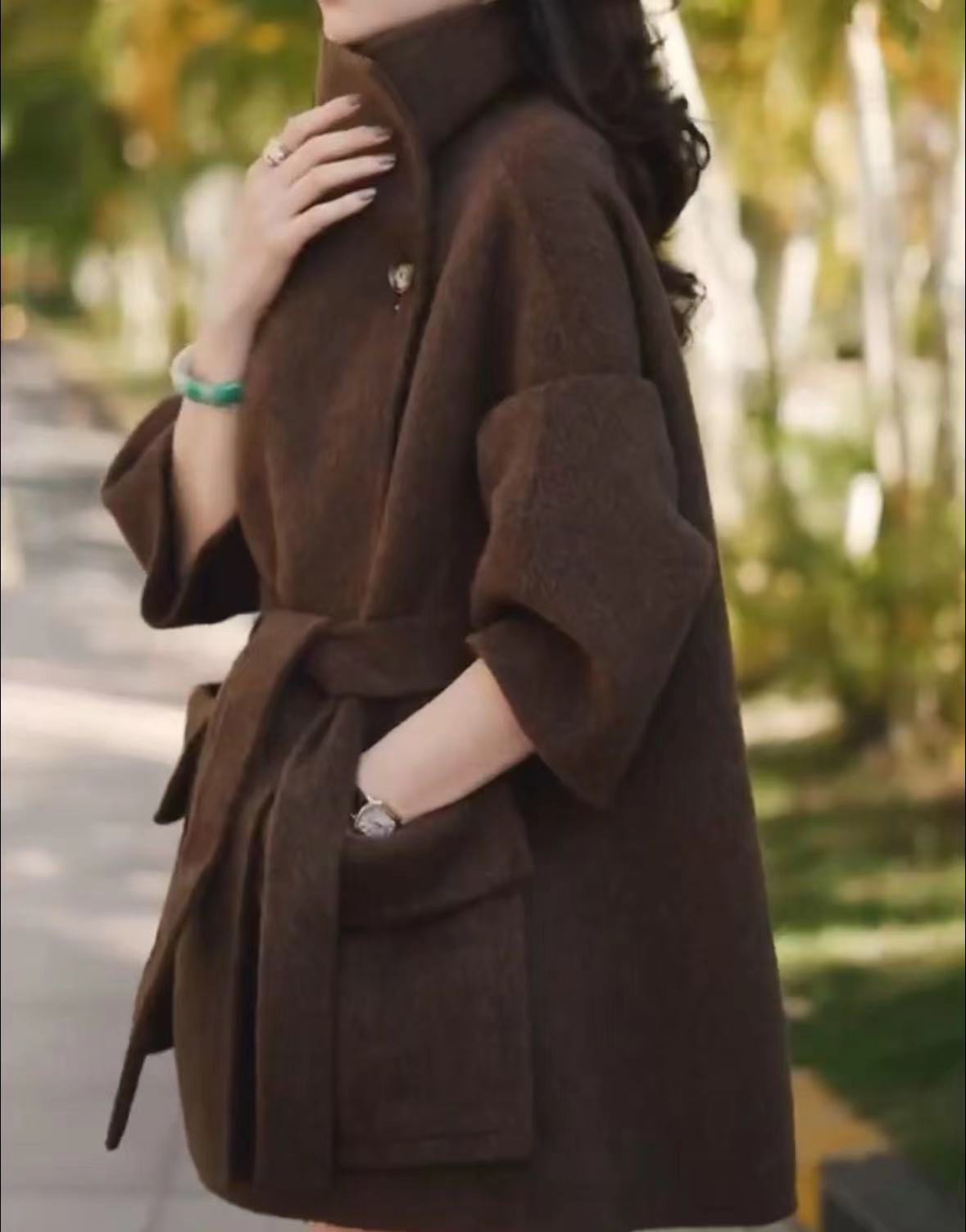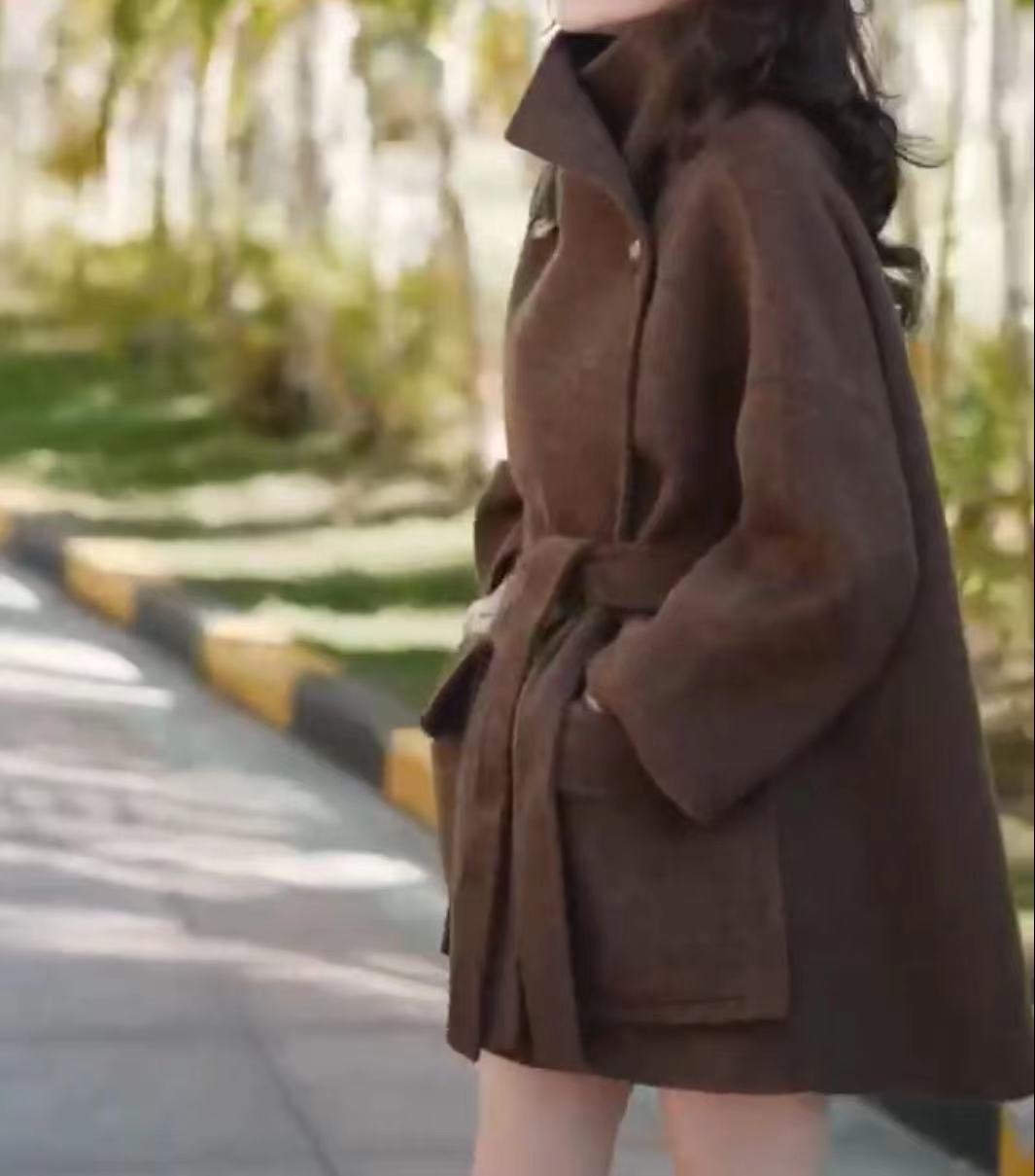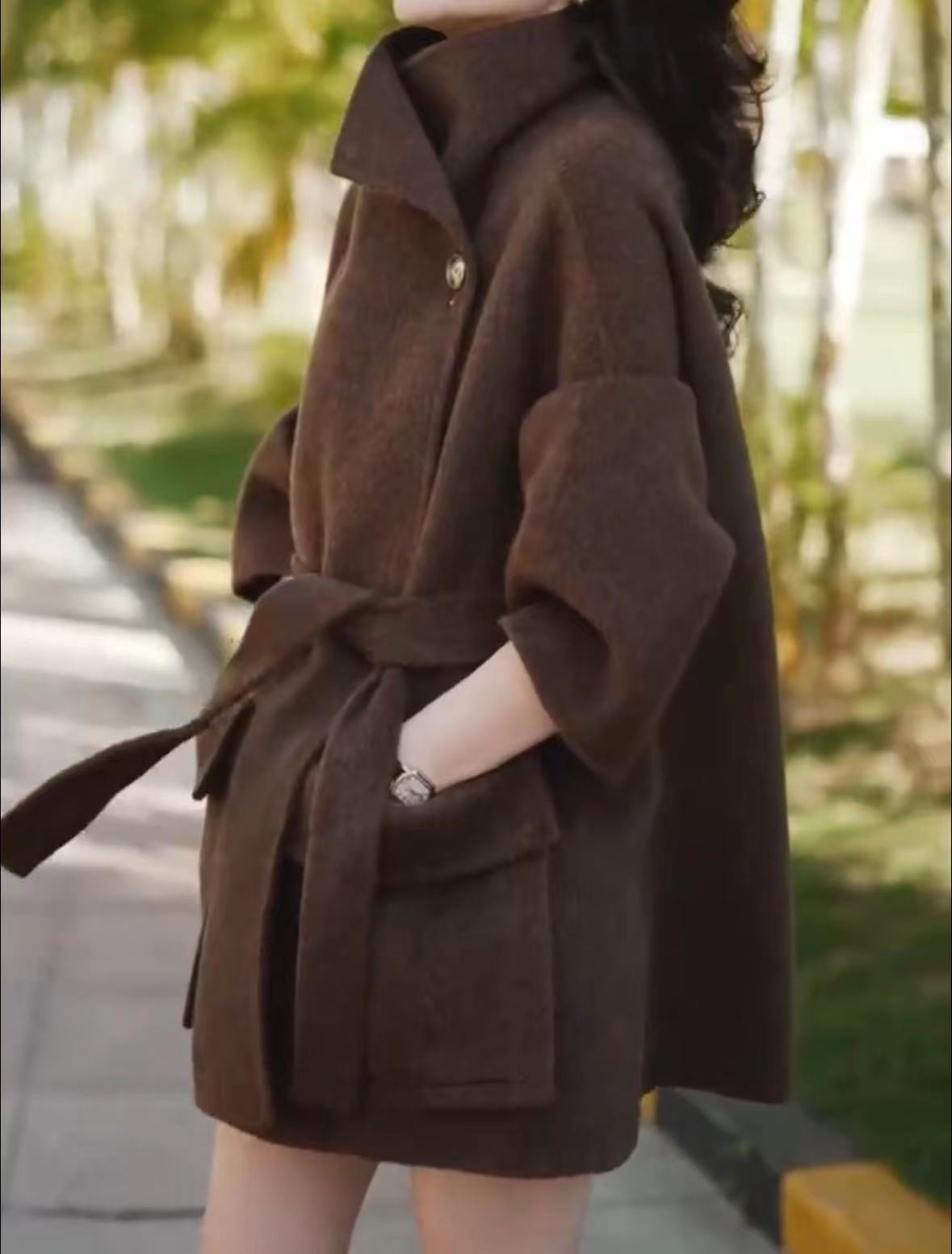 23265 제이유슈 중간 길이 모직 코트 가을 겨울 2023 레이스업 허리 조절 코트 문학적 복고풍 스타일스토어 가기