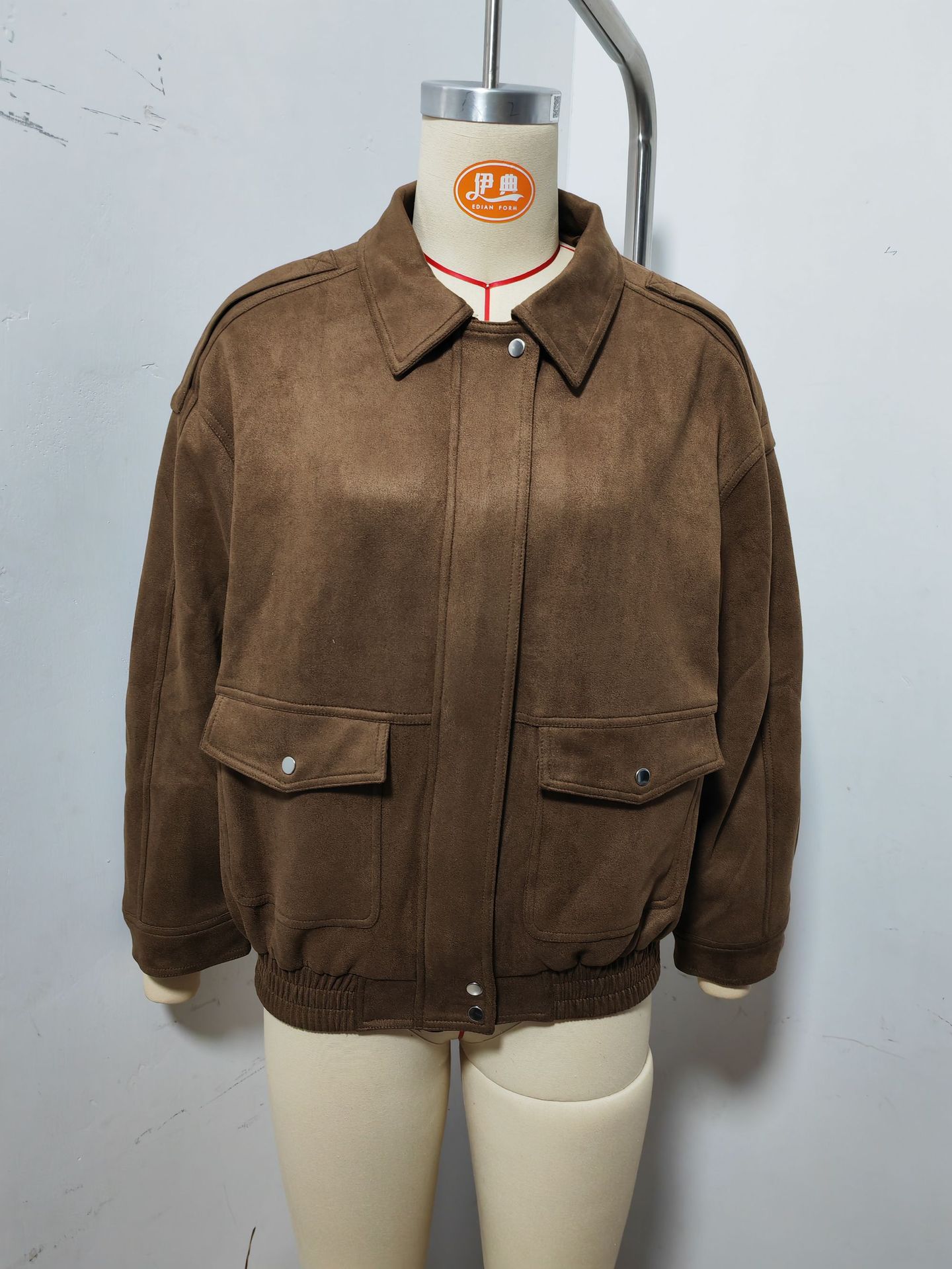 ZA 여성 의류 2025 신상 패션 캐주얼 스웨이드 질감 포켓 봄 가을 재킷 캐주얼 스타일스토어 가기