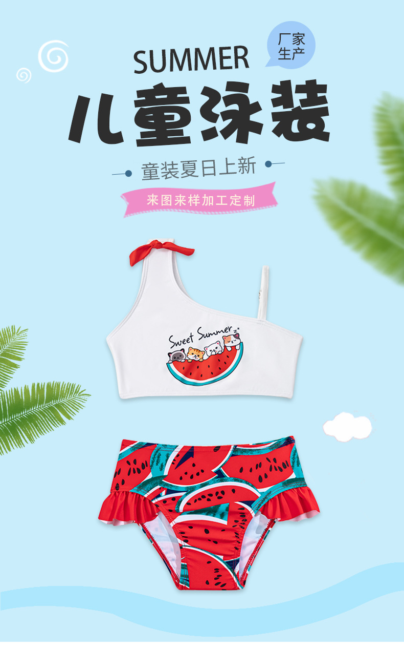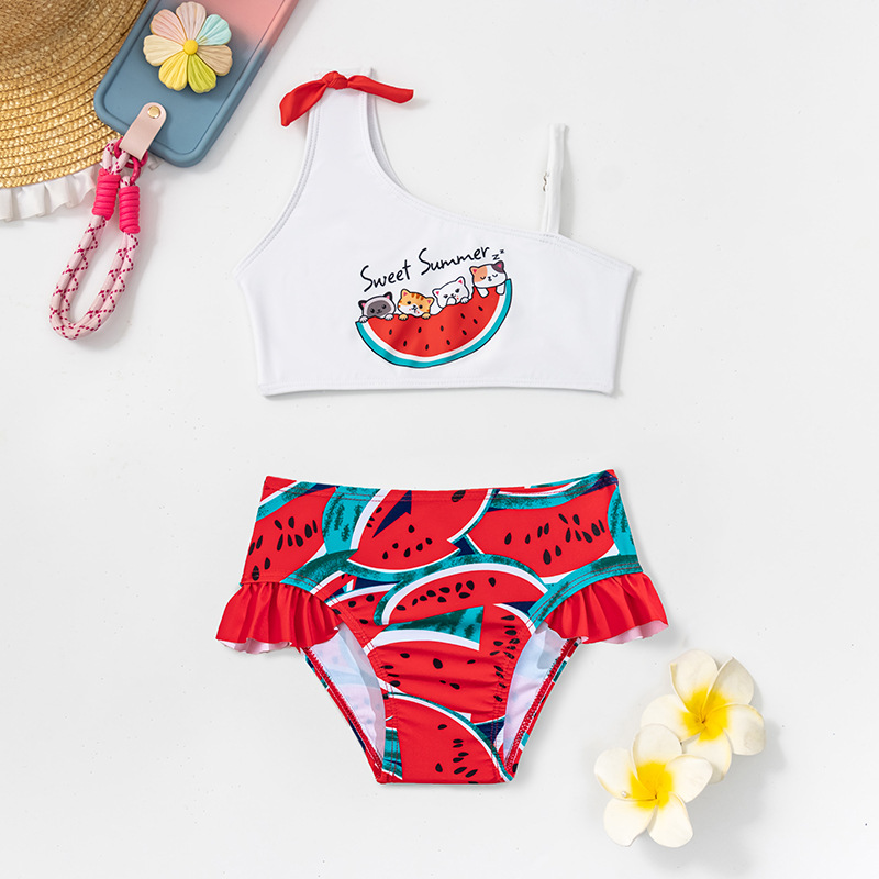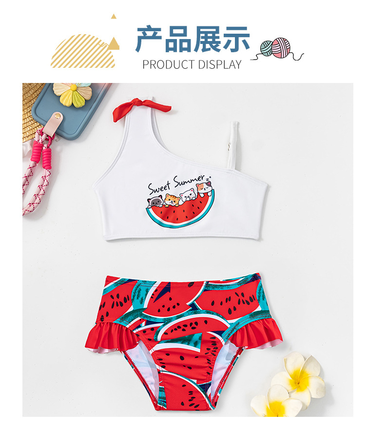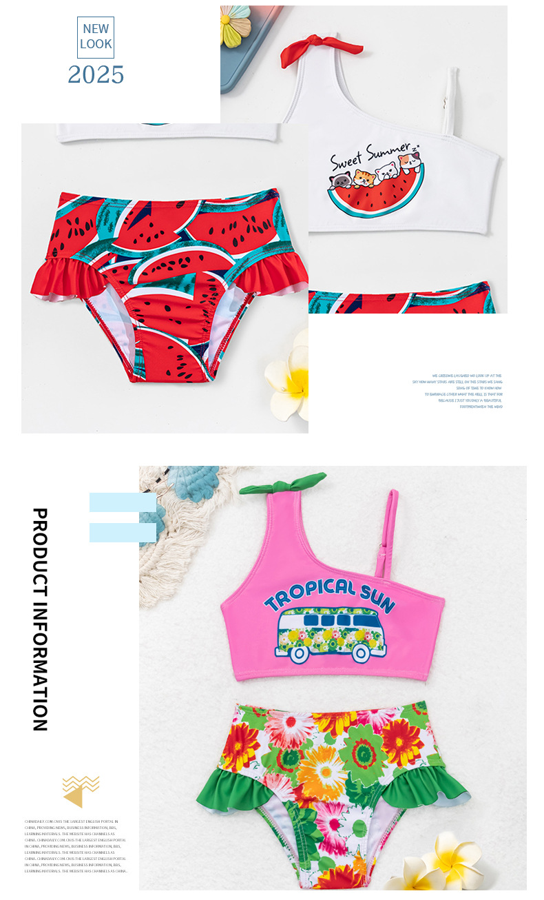 2025 년 국경 분할 수영복 투피스 새 여자 수영복 어린이 수박 슬링 어린이 수영복 여성