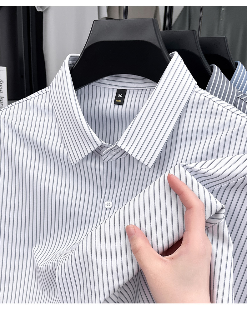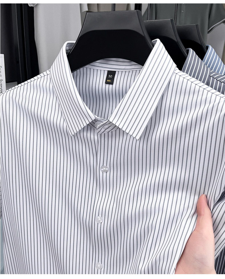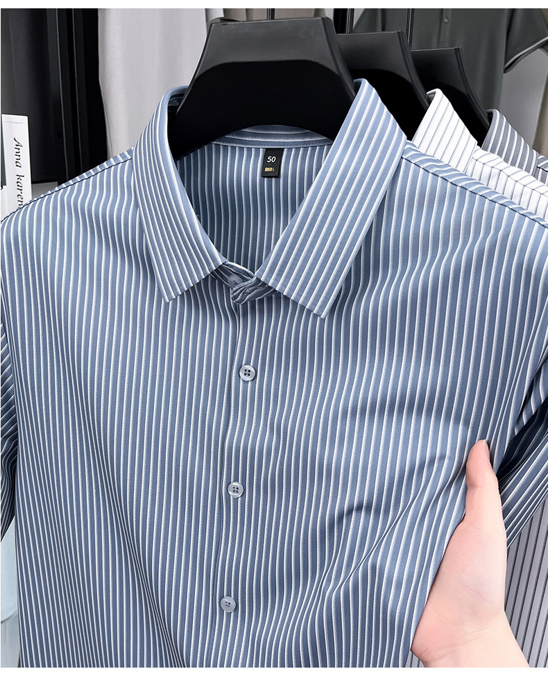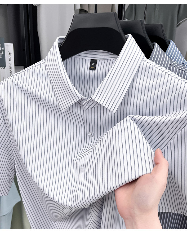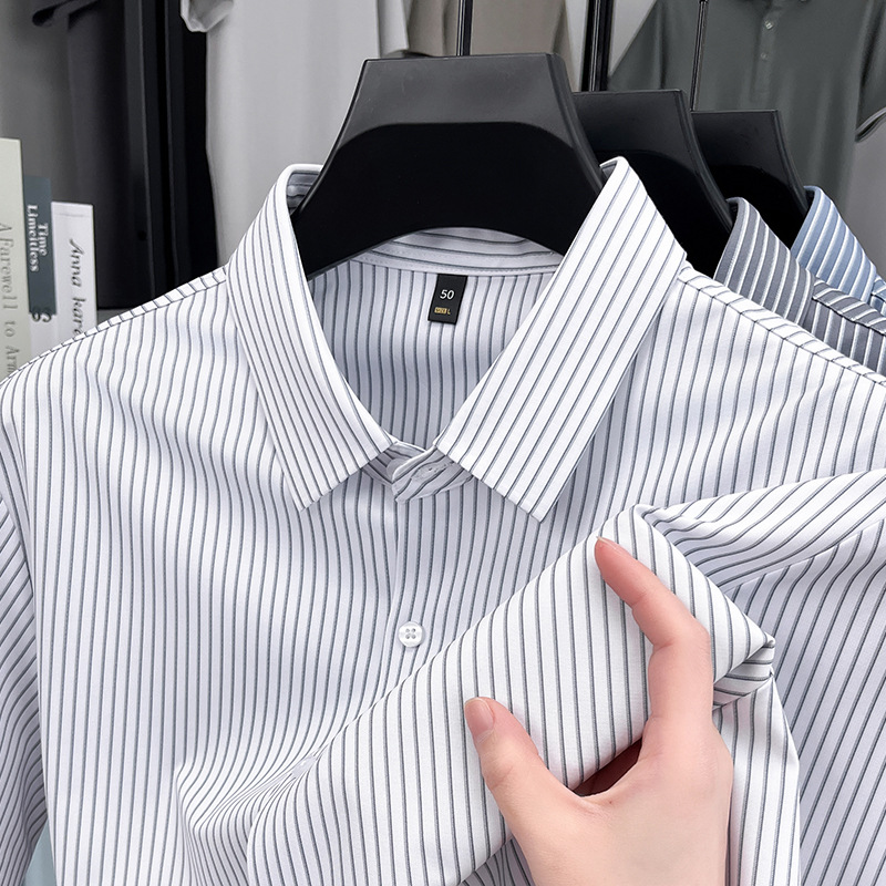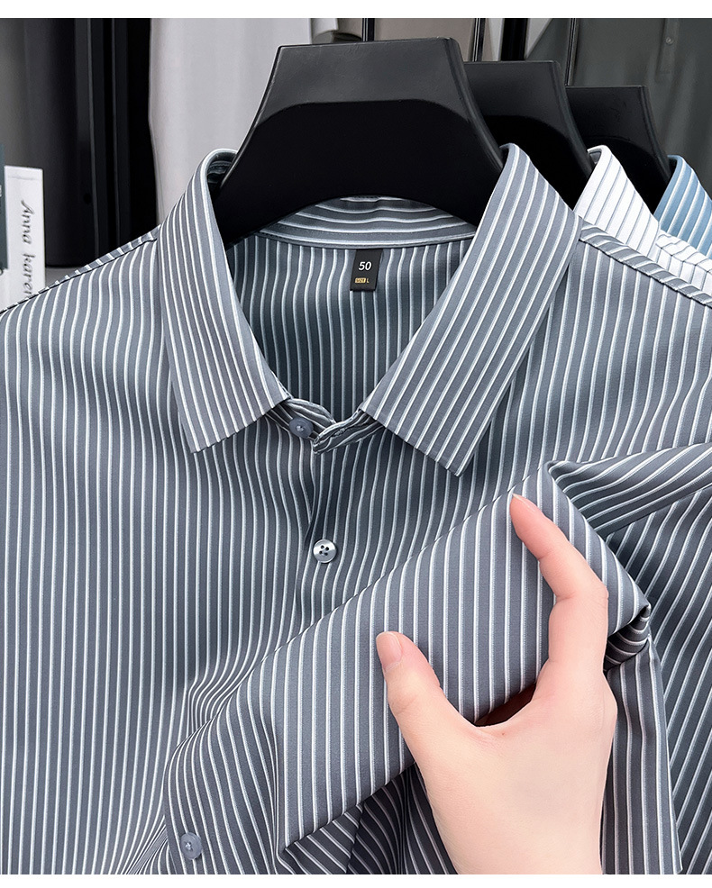 중년 라이트 컬러 스트라이프 반소매 여름 아빠의 추적없는 줄무늬 셔츠 2025 반소매 셔츠 남성용 셔츠 아이스 실크