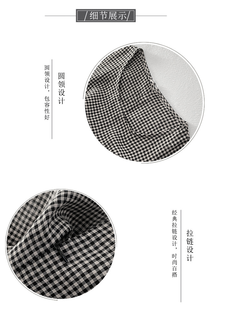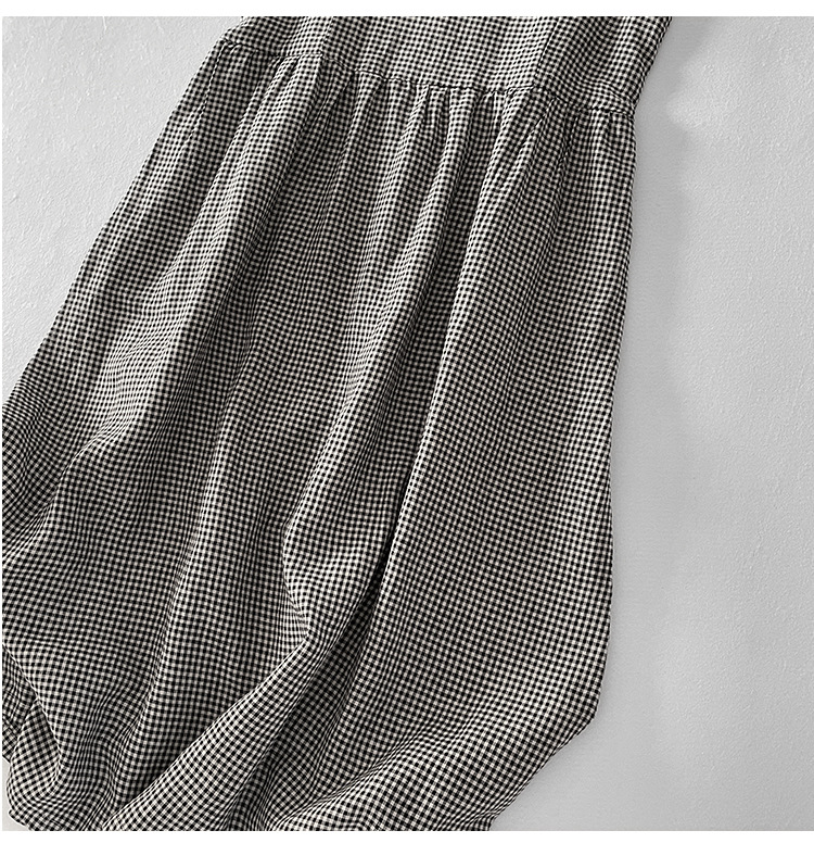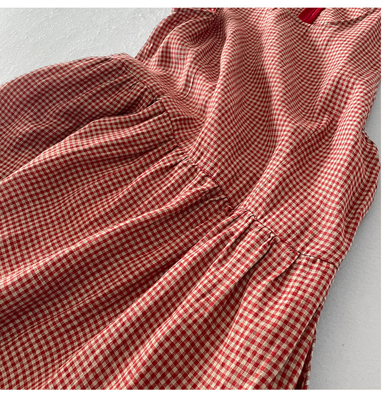 Real Shot 2025 여름 신작 코튼 린넨 대형 격자 무늬 민소매 탱크 탑 루즈 캐주얼 드레스