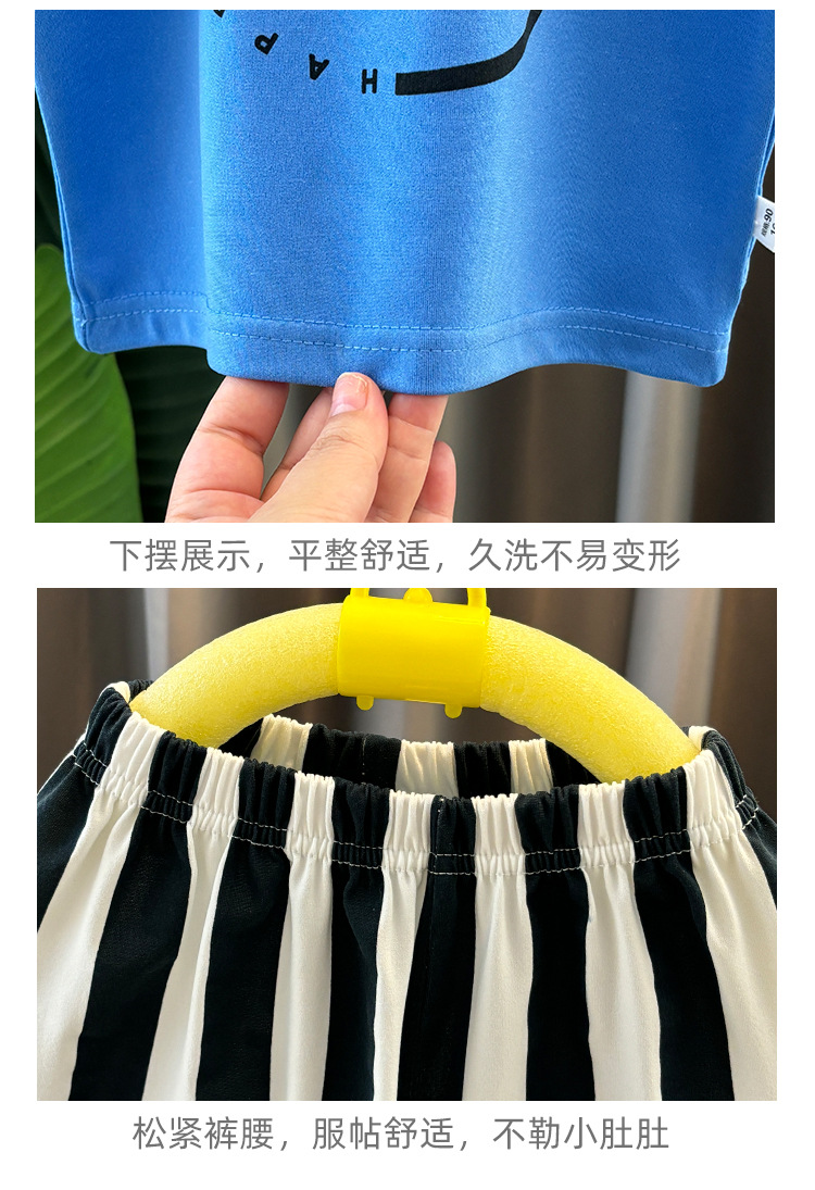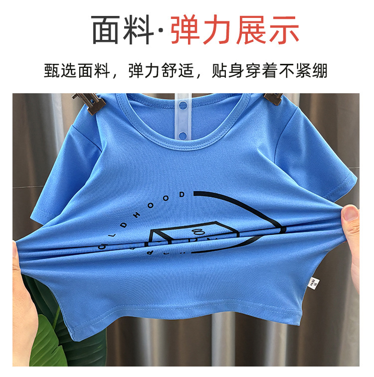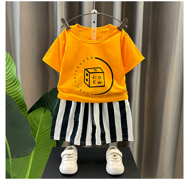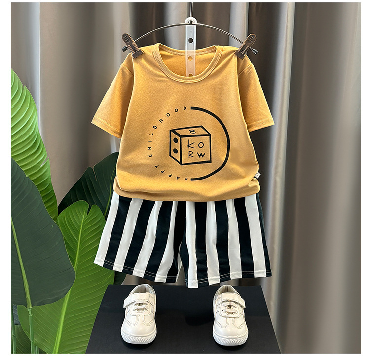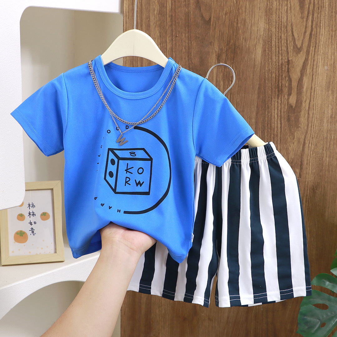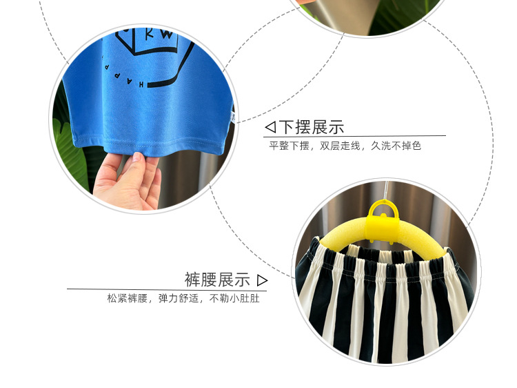 2025 새로운 여름 어린이 반팔 세트 캐주얼 소년 소녀 라운드 넥 만화 티셔츠 소년 반바지 투피스 세트스토어 가기