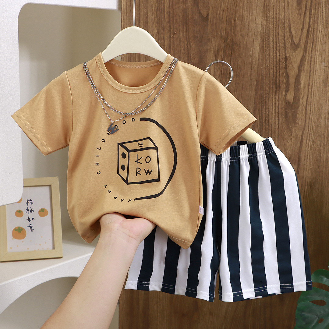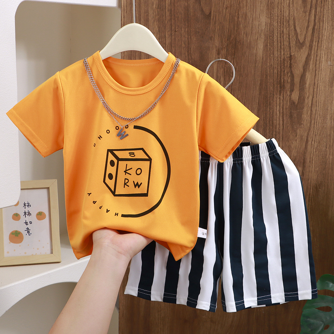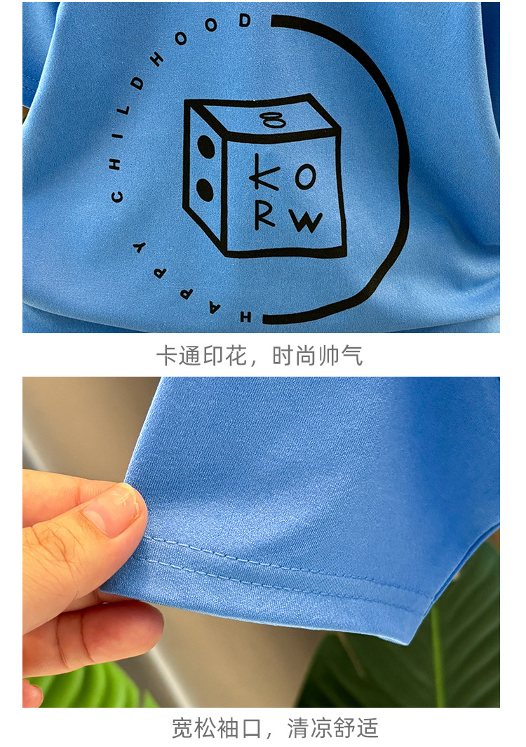 2025 새로운 여름 어린이 반팔 세트 캐주얼 소년 소녀 라운드 넥 만화 티셔츠 소년 반바지 투피스 세트