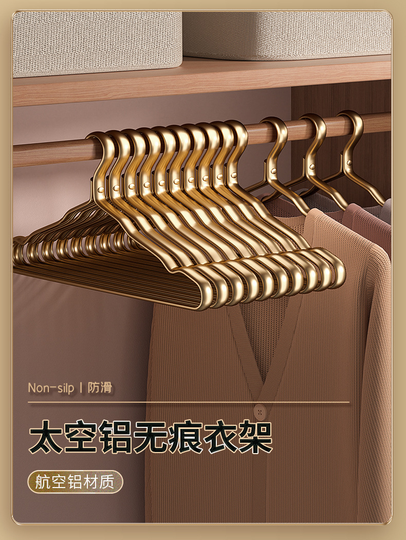 • 스페이스 알루미늄 옷걸이 [1.5cm 2세대 두꺼워진 라이트 럭셔리 골드]