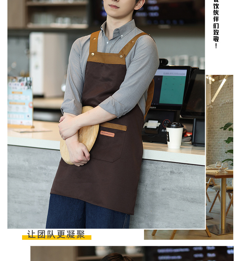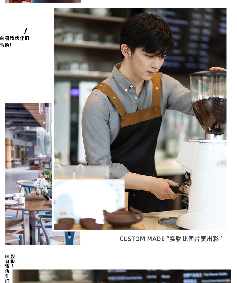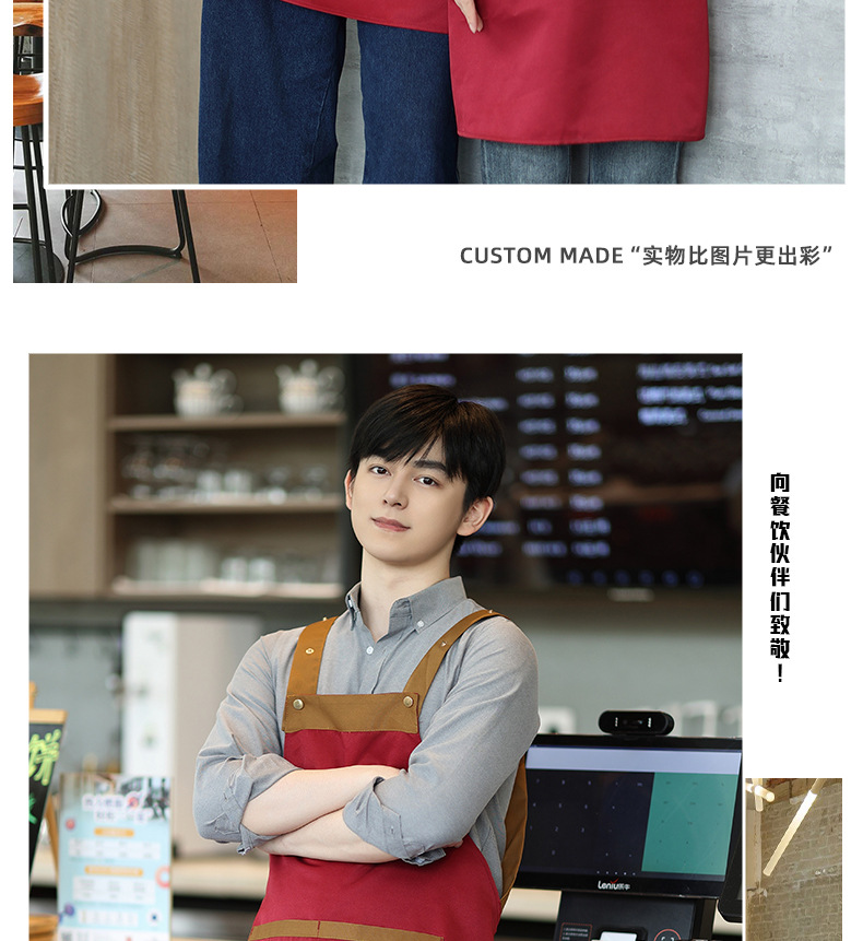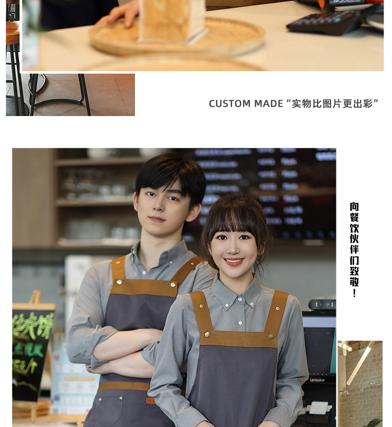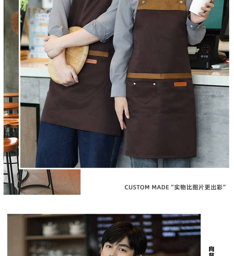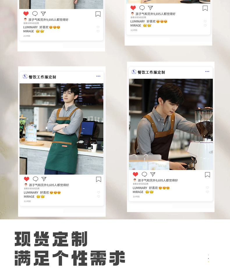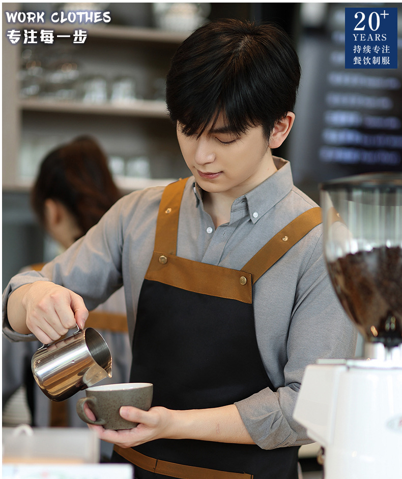 새로운 넓은 어깨 끈 앞치마 통기성 방수 오일 맞춤형 우유 차 케이터링 특수 인쇄 로고 공장 도매