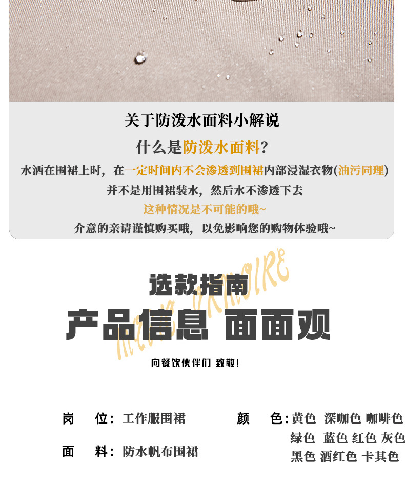 새로운 넓은 어깨 끈 앞치마 통기성 방수 오일 맞춤형 우유 차 케이터링 특수 인쇄 로고 공장 도매스토어 가기