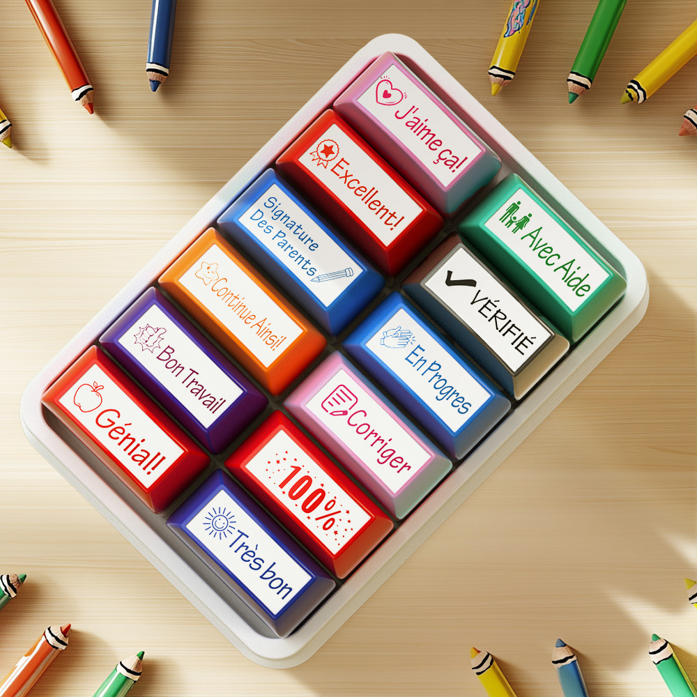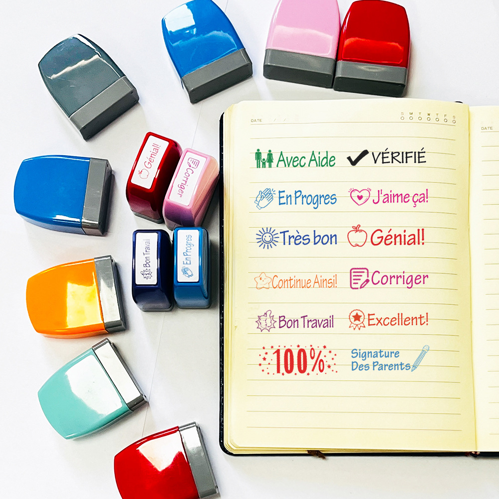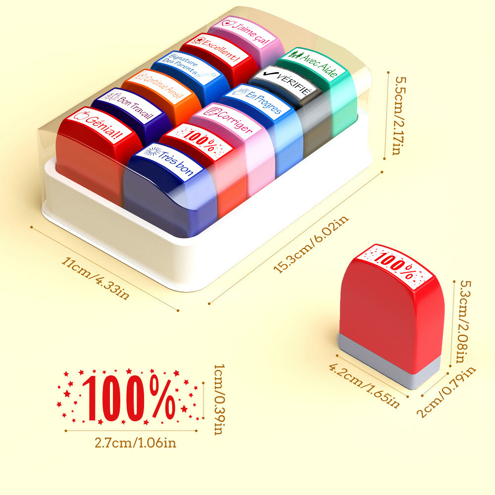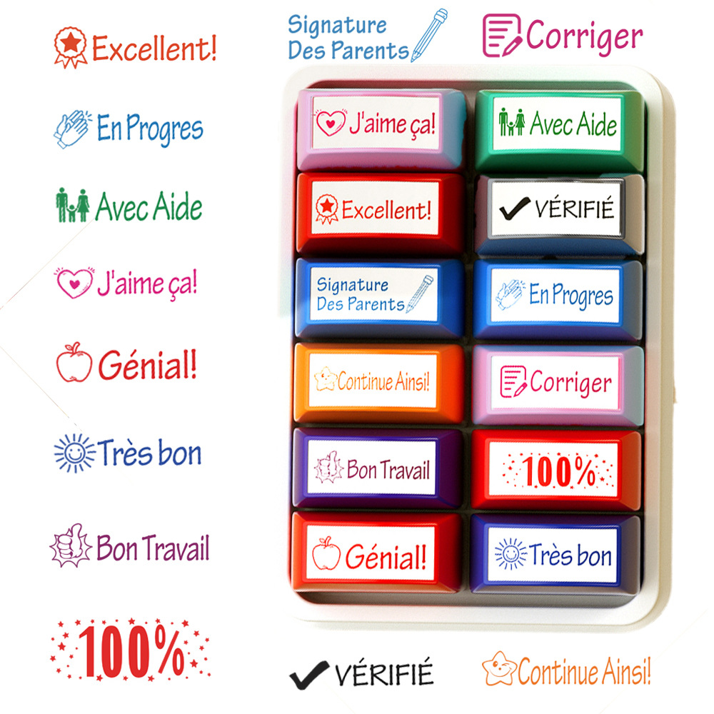 프랑스어 교사의 의견 스탬프 12개, 컬러 조합 격려 스탬프, 국경 간 직접 공급