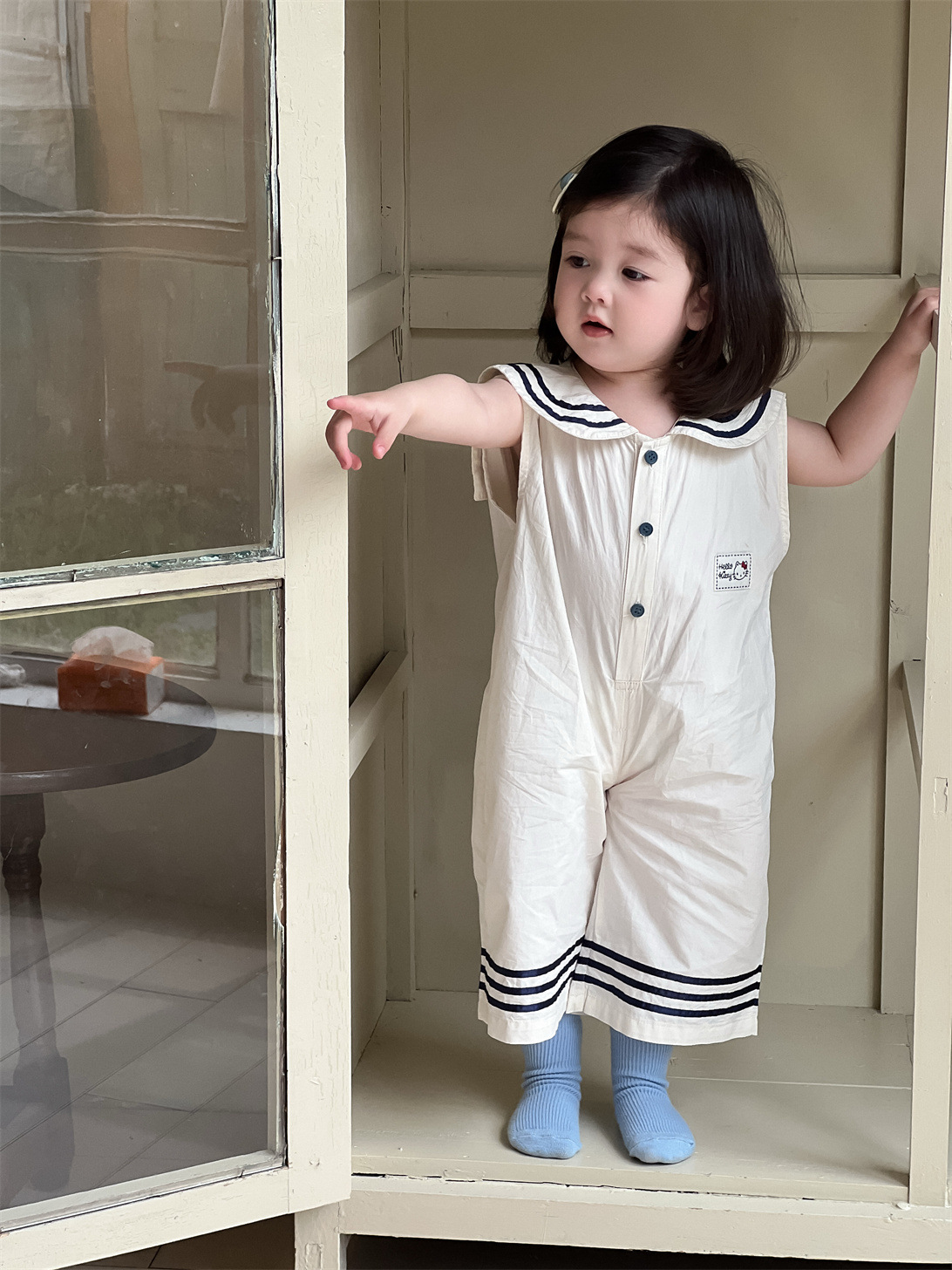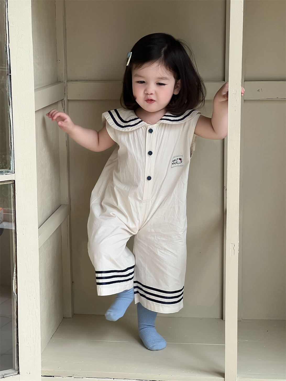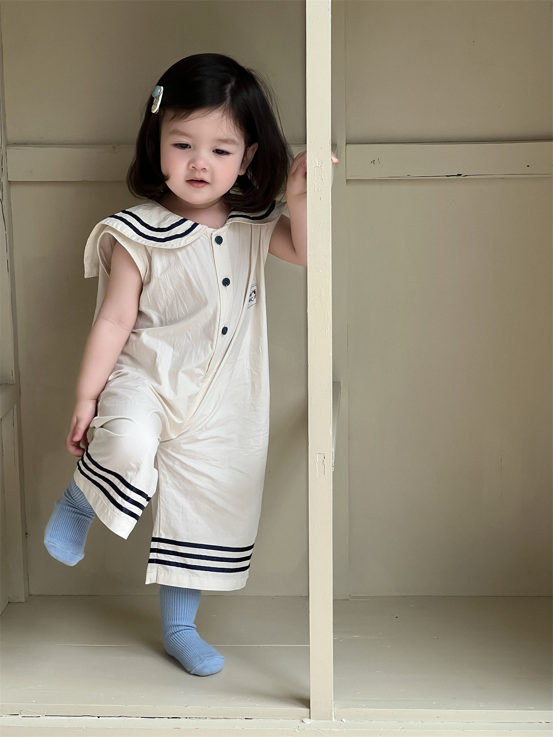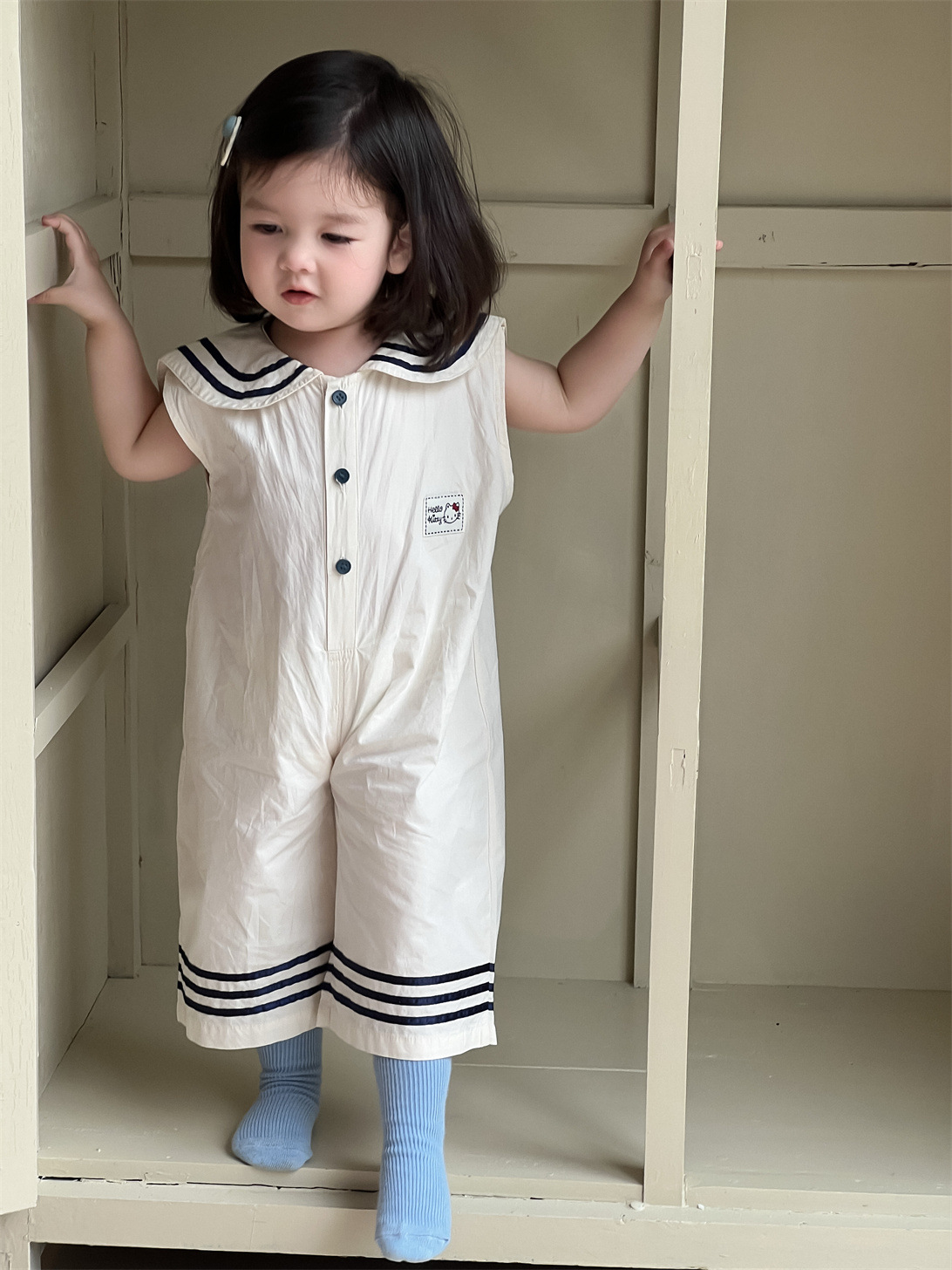 여자 여름 옷 얇은 2025 새로운 어린이 여름 옷 한국 어린이 옷 아기 네이비 스타일 학카마스토어 가기