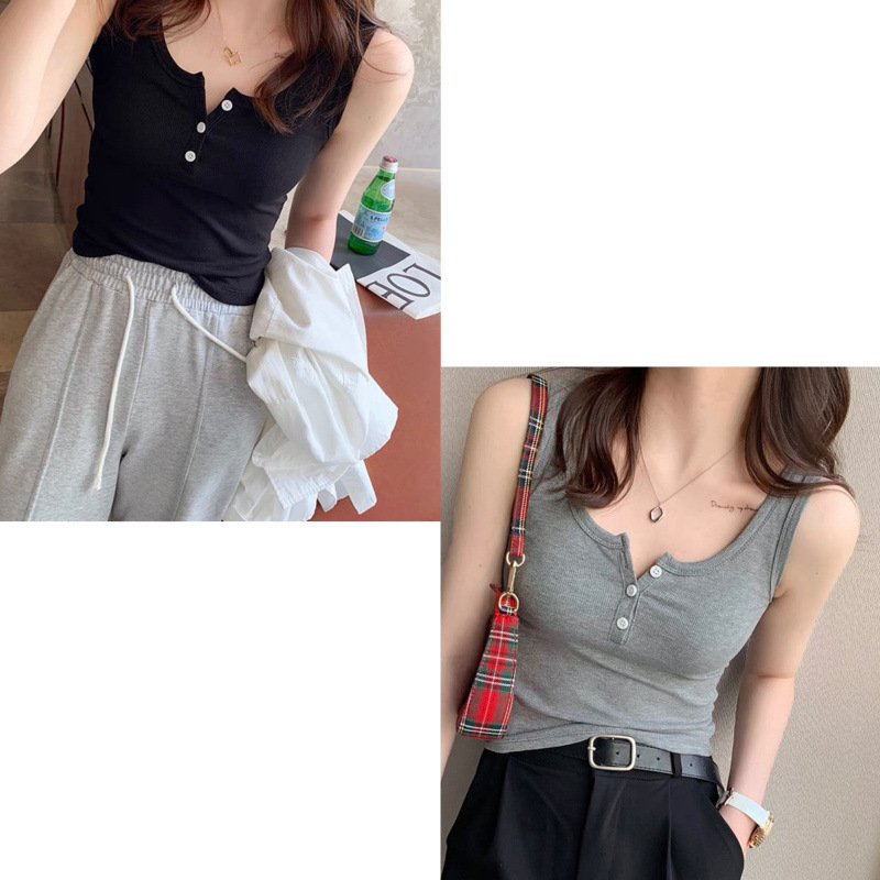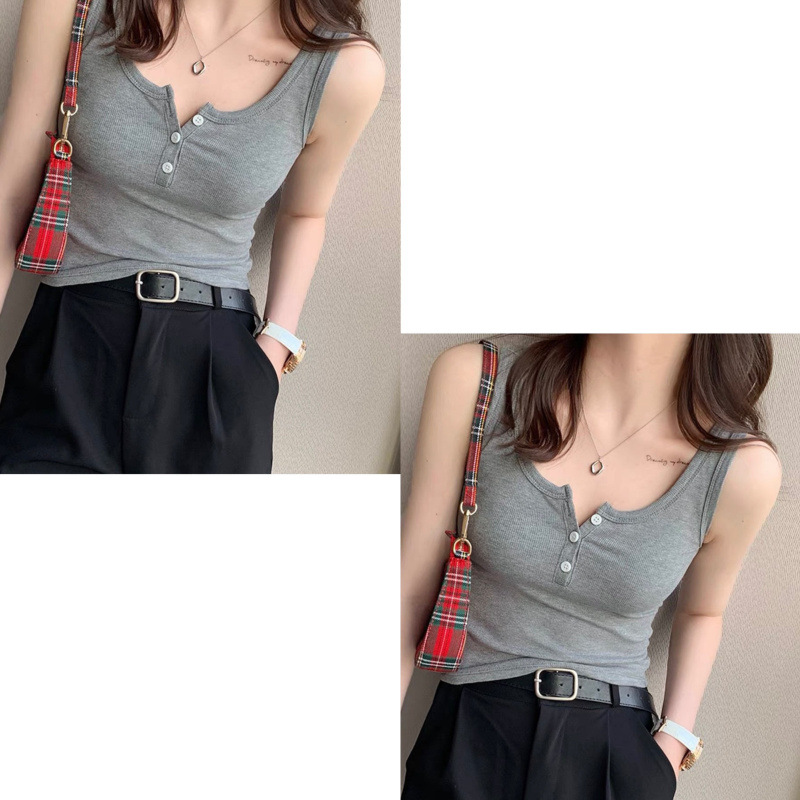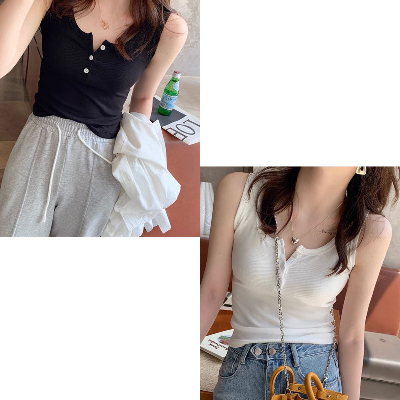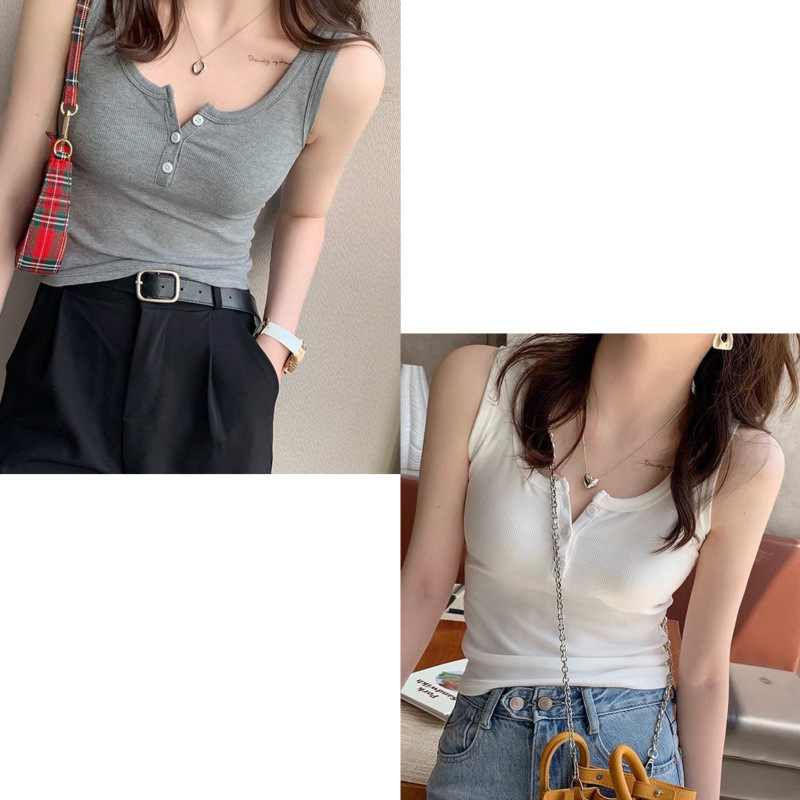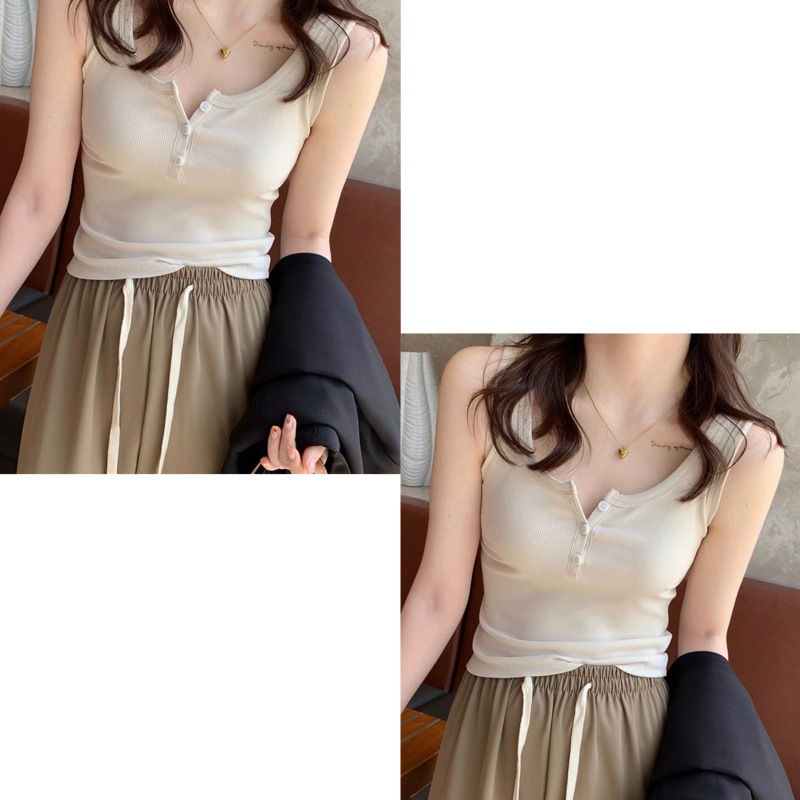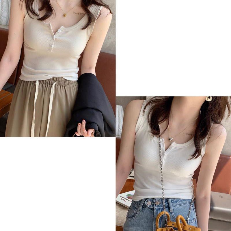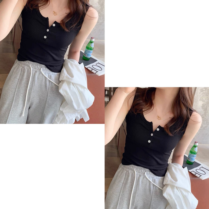 모달 코튼 버튼 조끼 여자 여름 이너 스트랩 아우터웨어 스퀘어 칼라 플러스 사이즈 슬림 핏베이스 셔츠 올 매치 탑스토어 가기