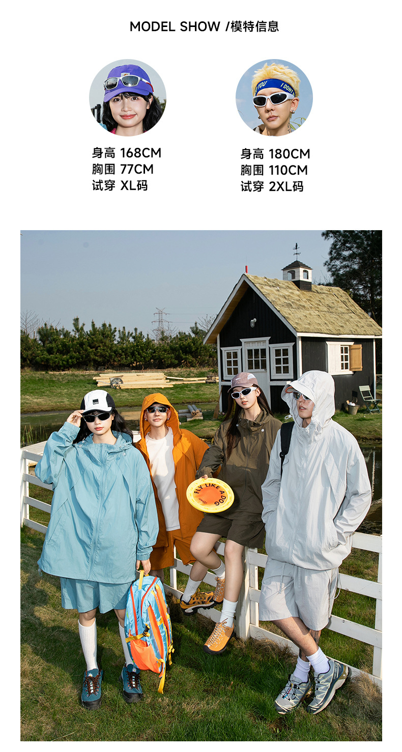 2025 여름 새로운 도파민 컬러 마운틴 야외 느슨한 태양 보호 세트 남성과 여성의 태양 보호 의류