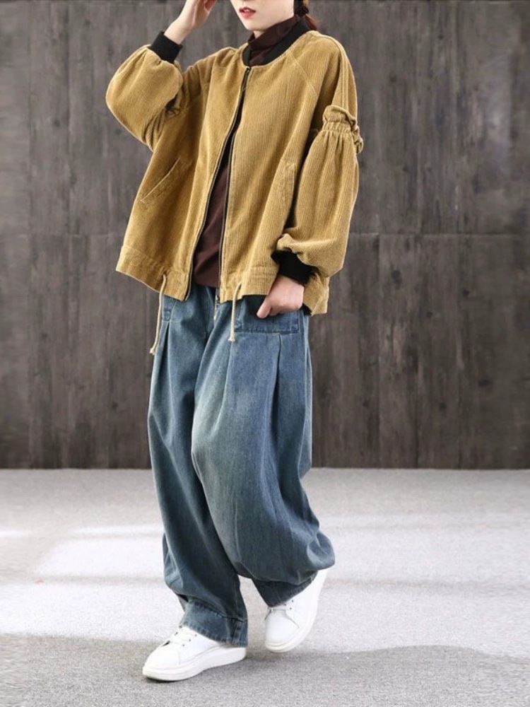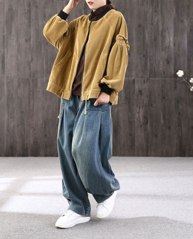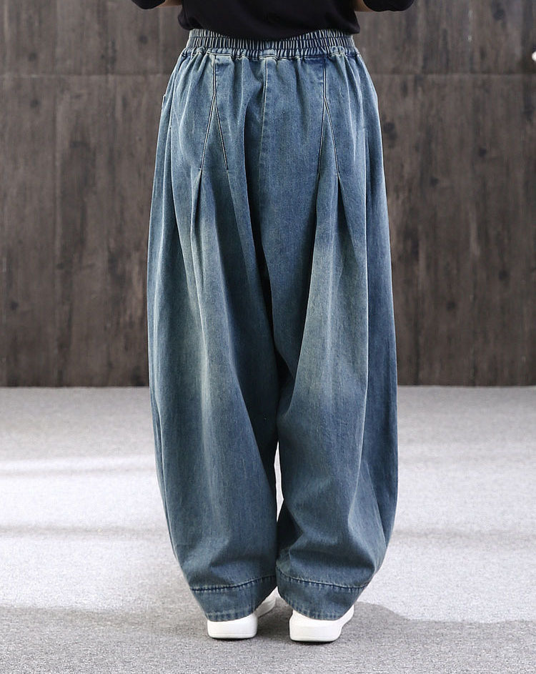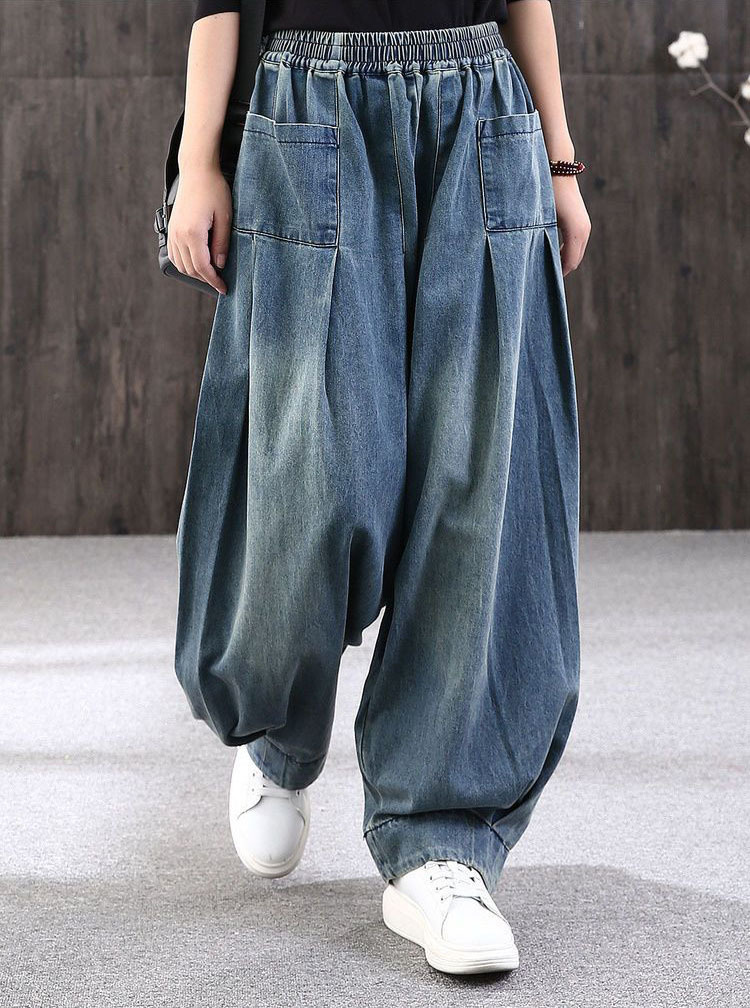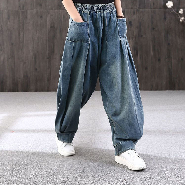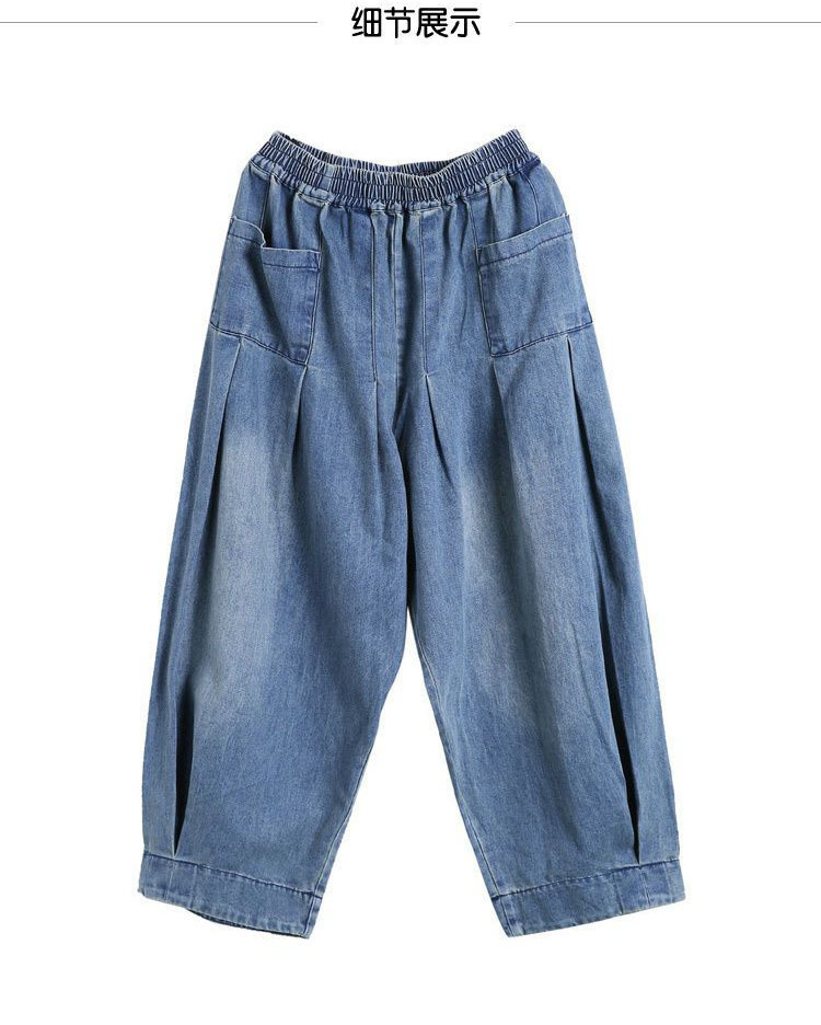 봄 새로운 도착 통통한 소녀를위한 느슨한 플러스 사이즈 바지 데님 할란 팬츠 여성의 예술적 올매치 캐주얼 헐렁한 바지 우아한 블루머스토어 가기