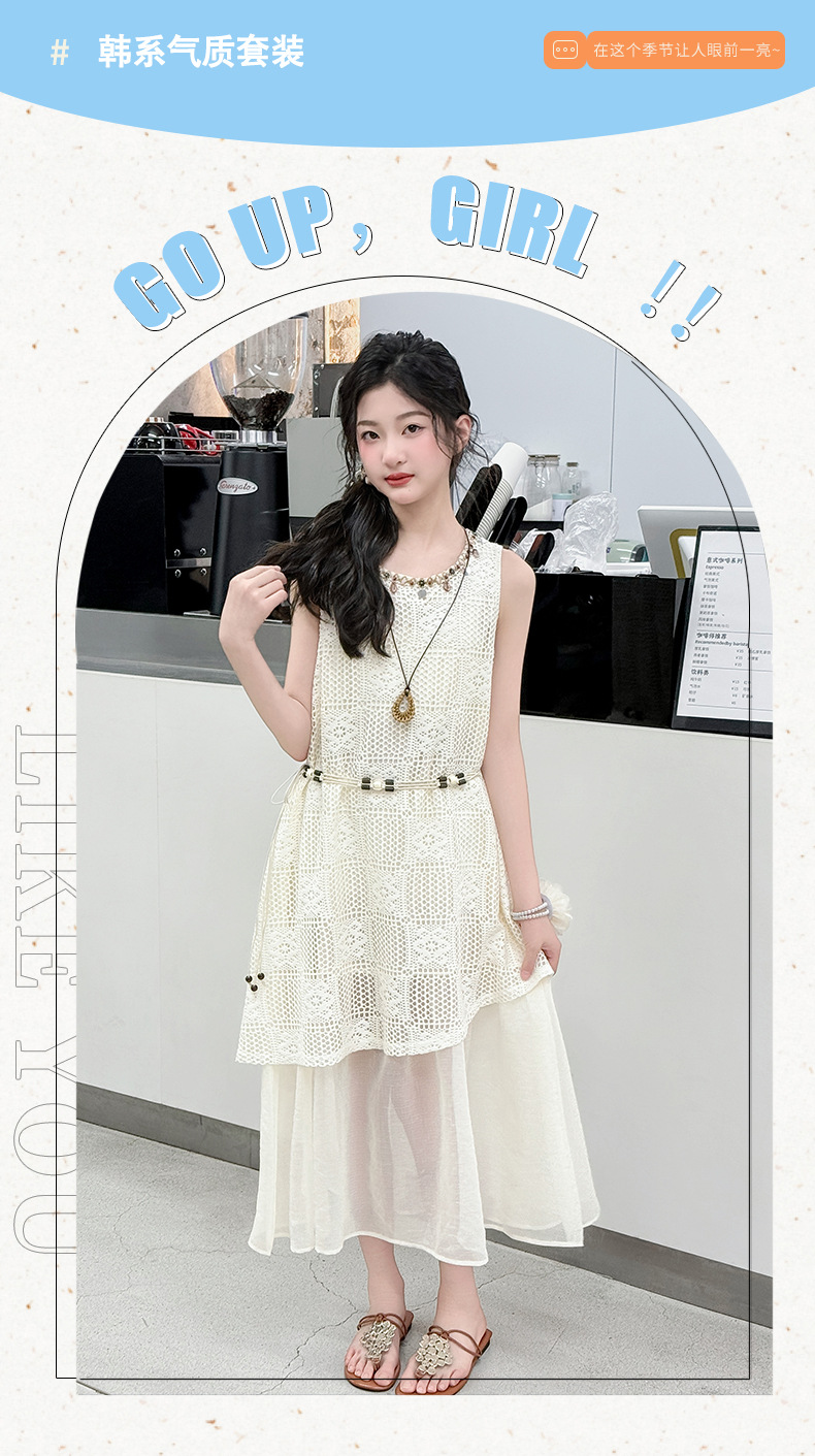 소녀 원피스 여름 하이 엔드 2025 새로운 스타일 서양식 민족 스타일 스커트 어린이 여름 원피스 큰 어린이 공주 스커트스토어 가기