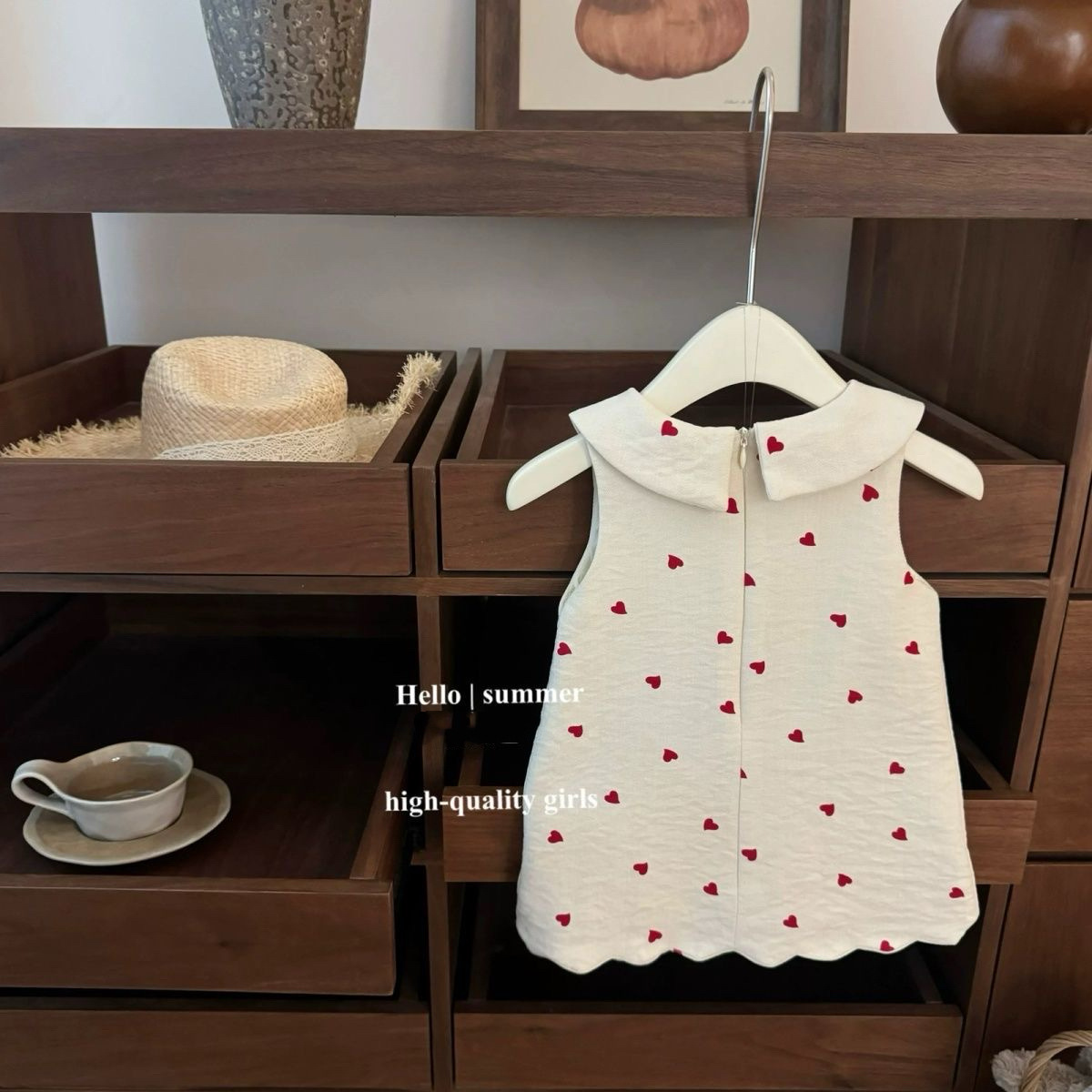 여자 여름 달콤한 사랑 원피스 2025 새로운 아기 소녀 한국 얇은 귀여운 인형 칼라 조끼 원피스스토어 가기
