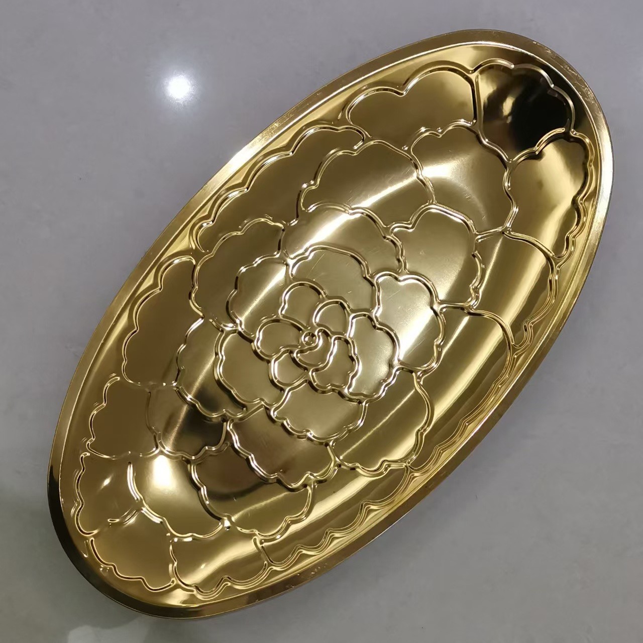 제조 업체 도매 스테인레스 스틸 타원형 접시 계란 모양의 접시 모란 계란 접시 중동 중앙 아시아 아프리카 복고풍 트레이 수출