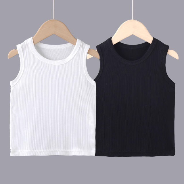 소년과 소녀 여름 단색 겉옷 민소매 골지 모달 조끼 중형 및 대형 아동용 바닥 탑